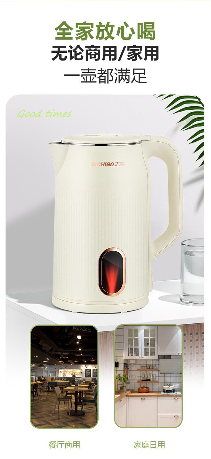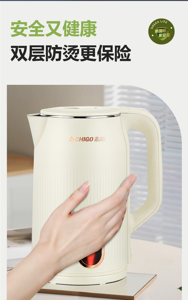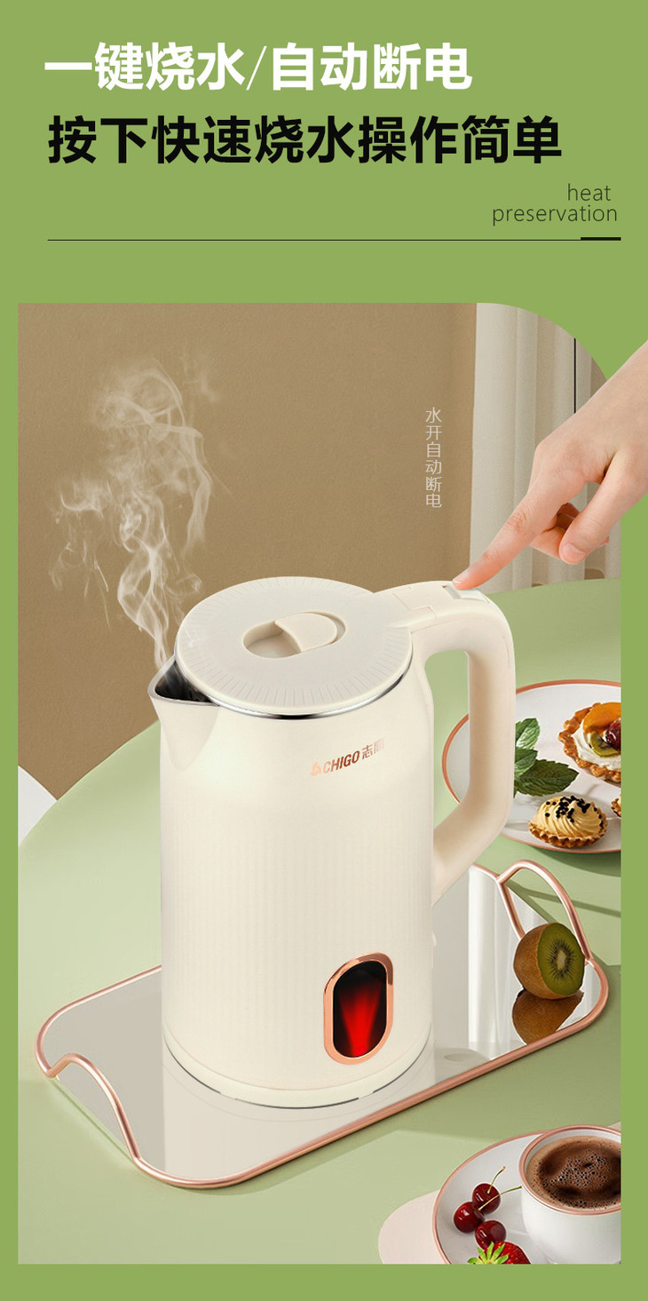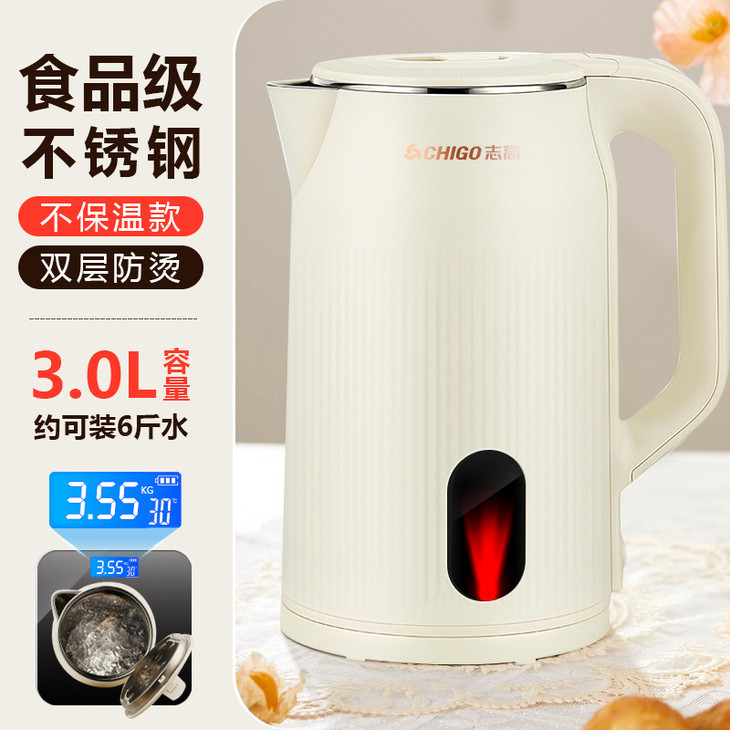 「3升大容量!304加厚内胆」志高304不锈钢电热水壶 加厚保温烧水壶家用大容量电水壶家用厨房电器
