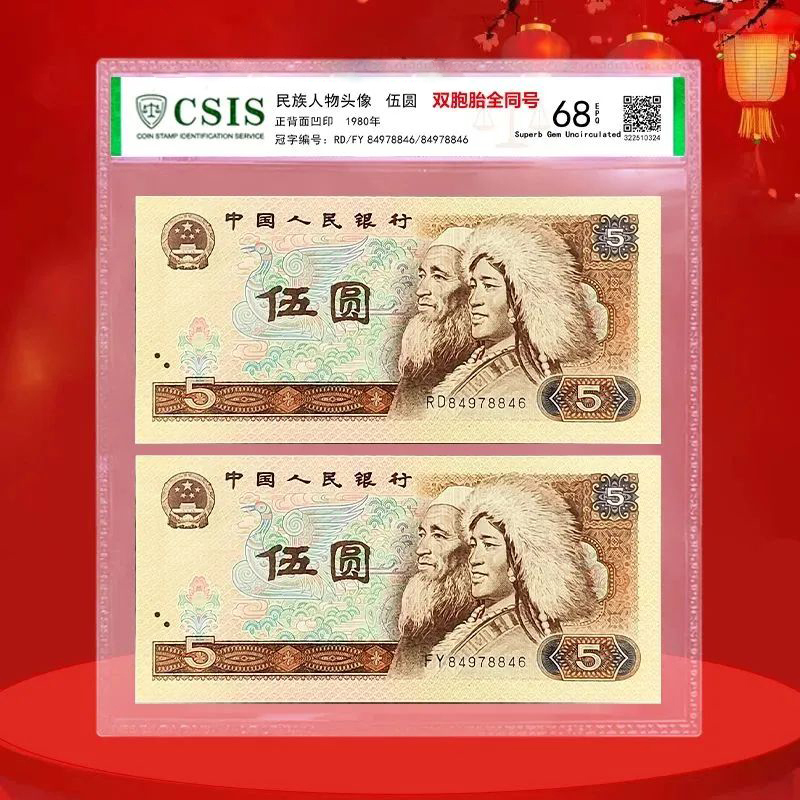 我国第四套人民币,是我国八九十年代重要的流通辅币,流通时间长,消耗大,因此存世量有限,而双胞胎号就更为珍稀!