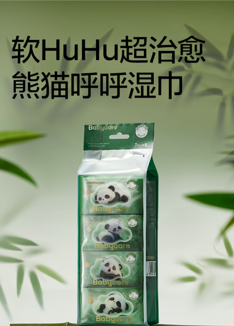 babycare迷你湿巾 熊猫婴儿便携湿巾8包*2提