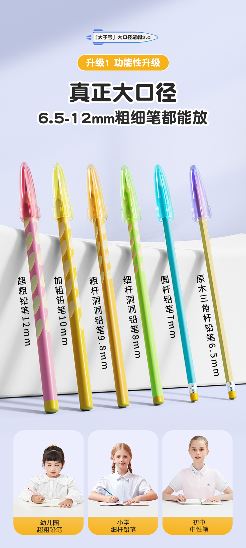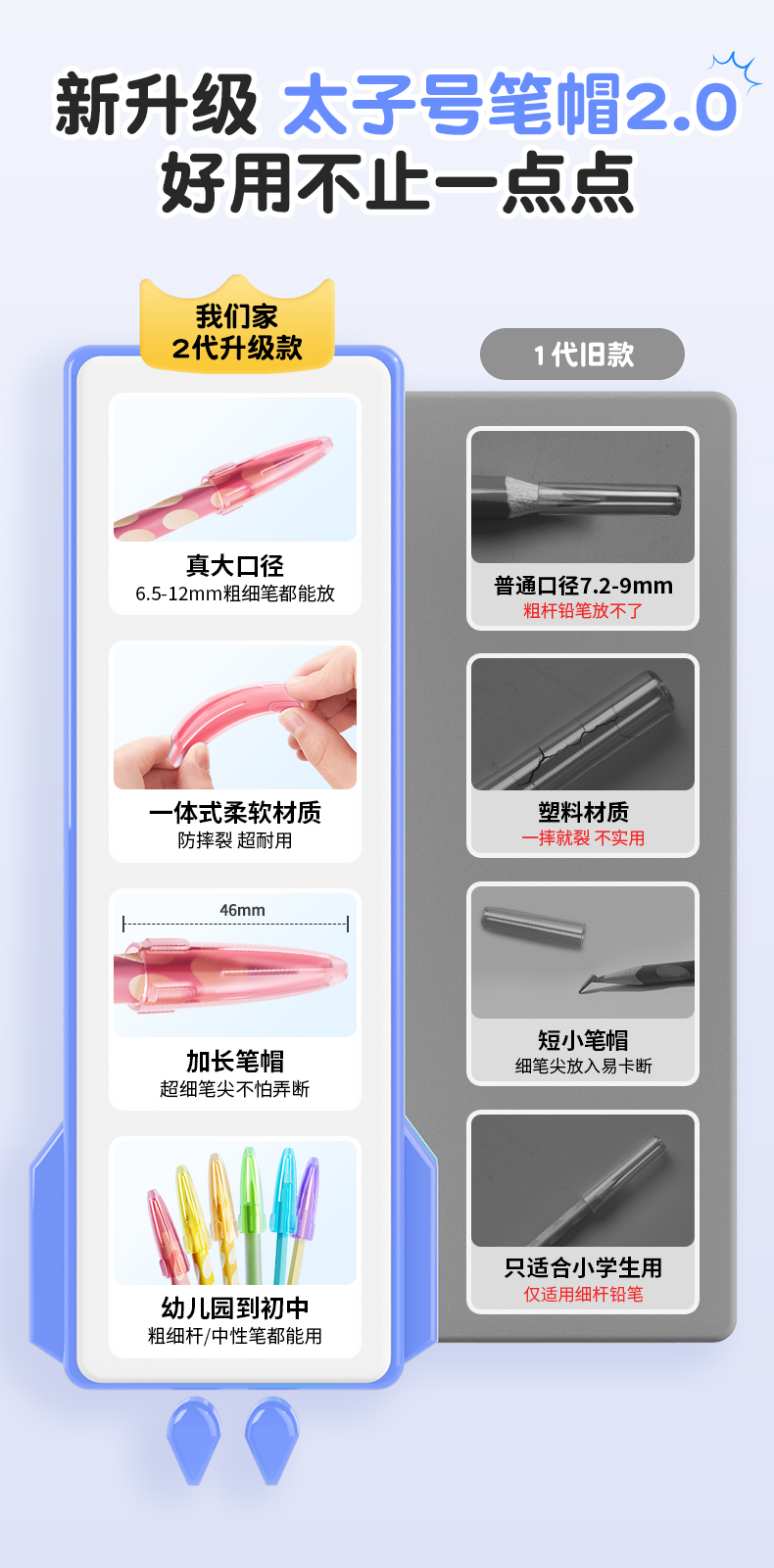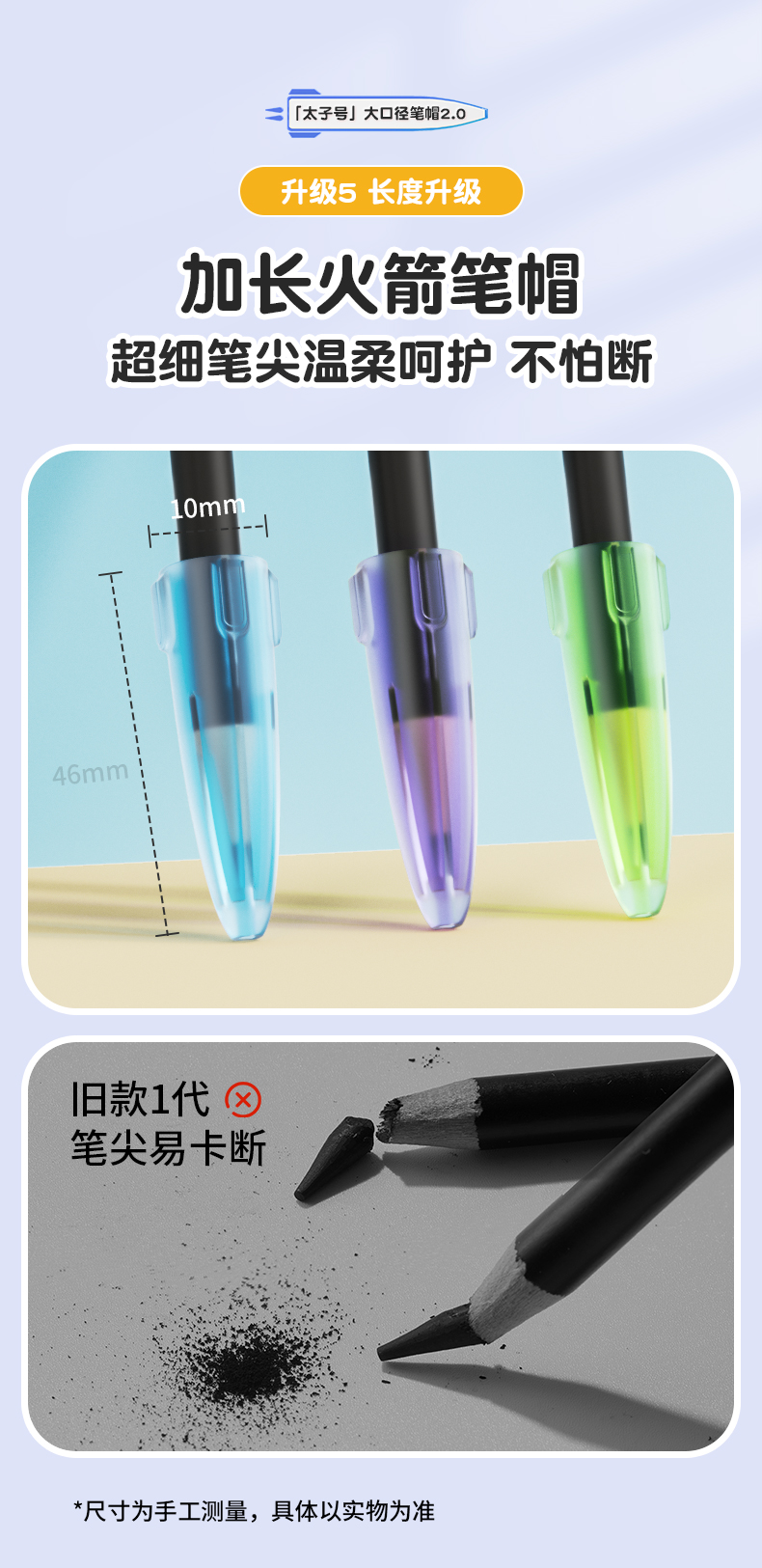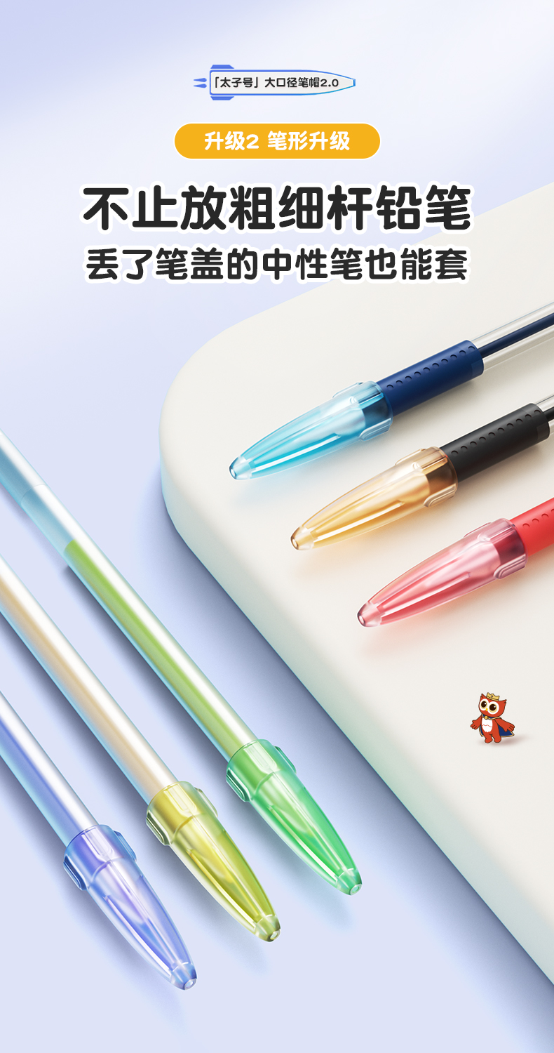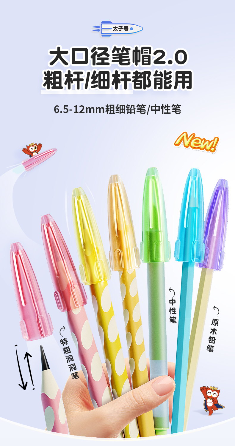 猫太子铅笔帽铅笔套小学生笔套铅笔头保护套软硅胶中性笔笔盖笔帽铅笔延长器儿童保护大三角粗杆细杆铅笔专用