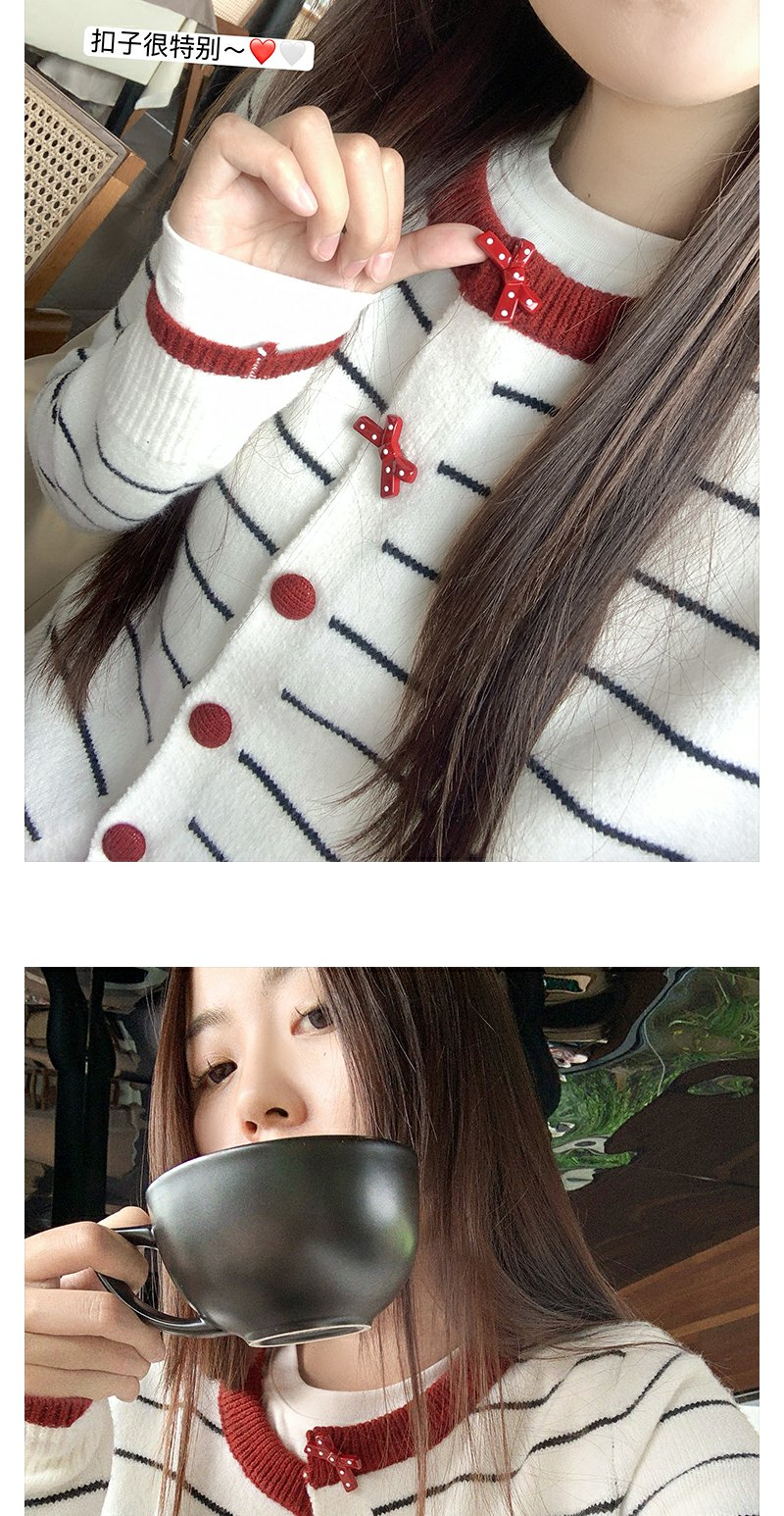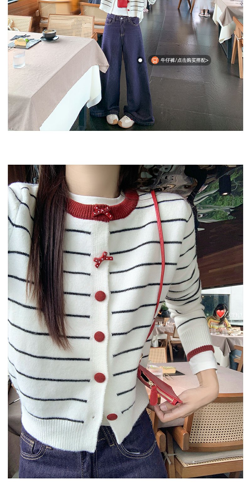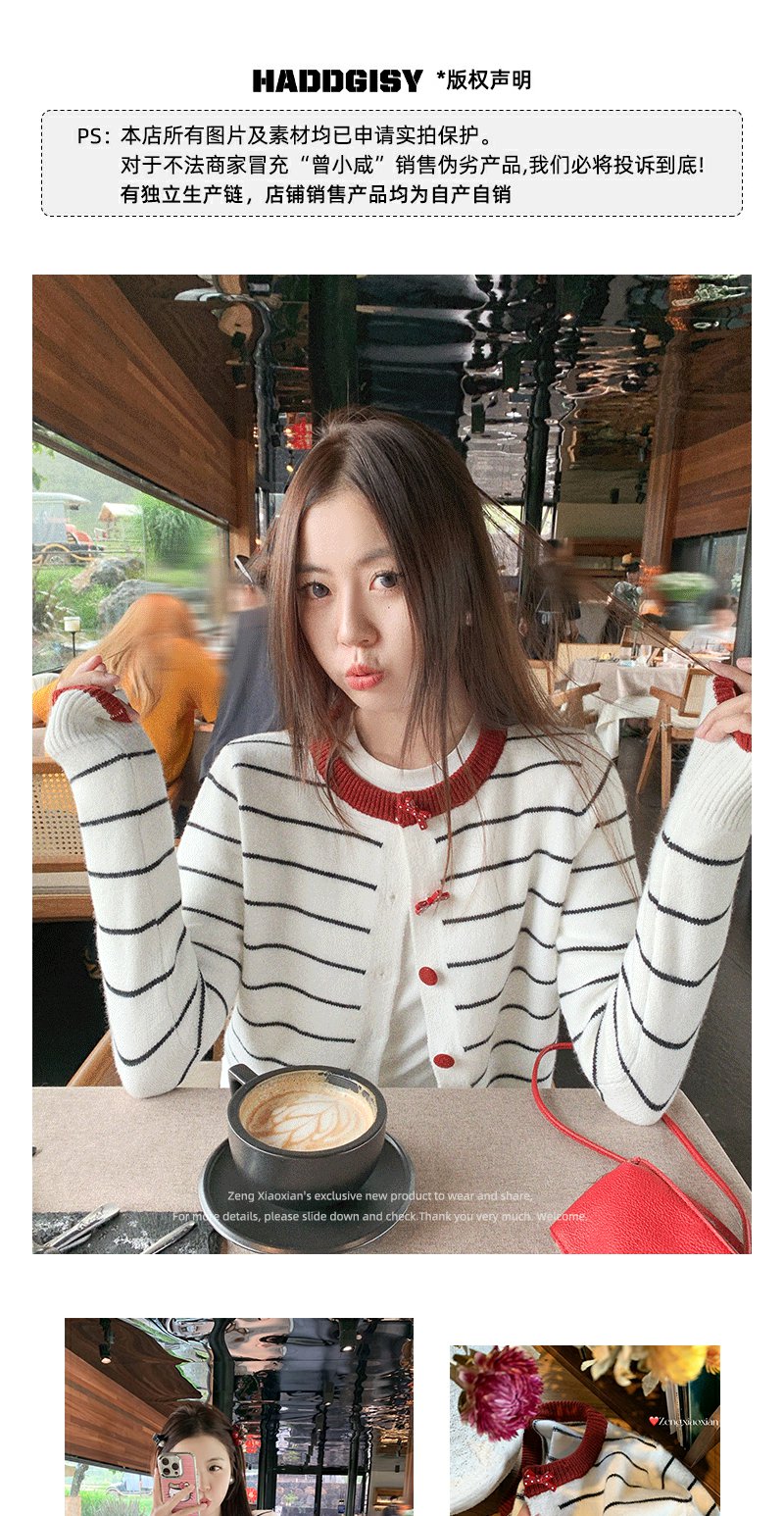 <曾小咸推荐>早秋慵懒风撞色条纹百搭毛衣开衫!