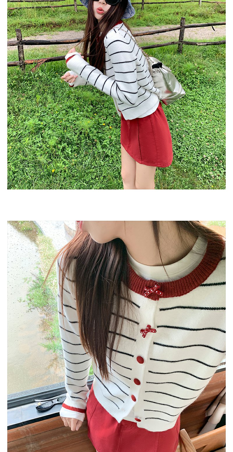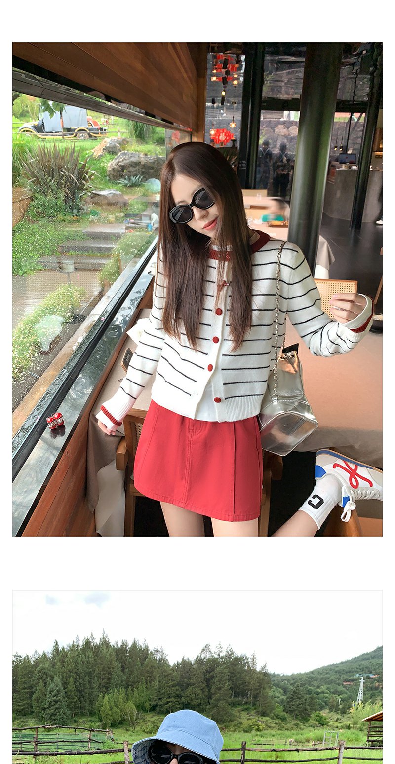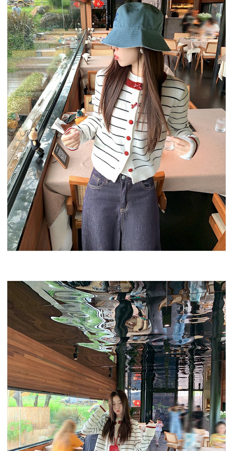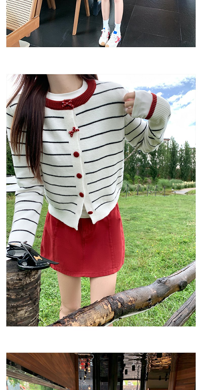 <曾小咸推荐>早秋慵懒风撞色条纹百搭毛衣开衫!