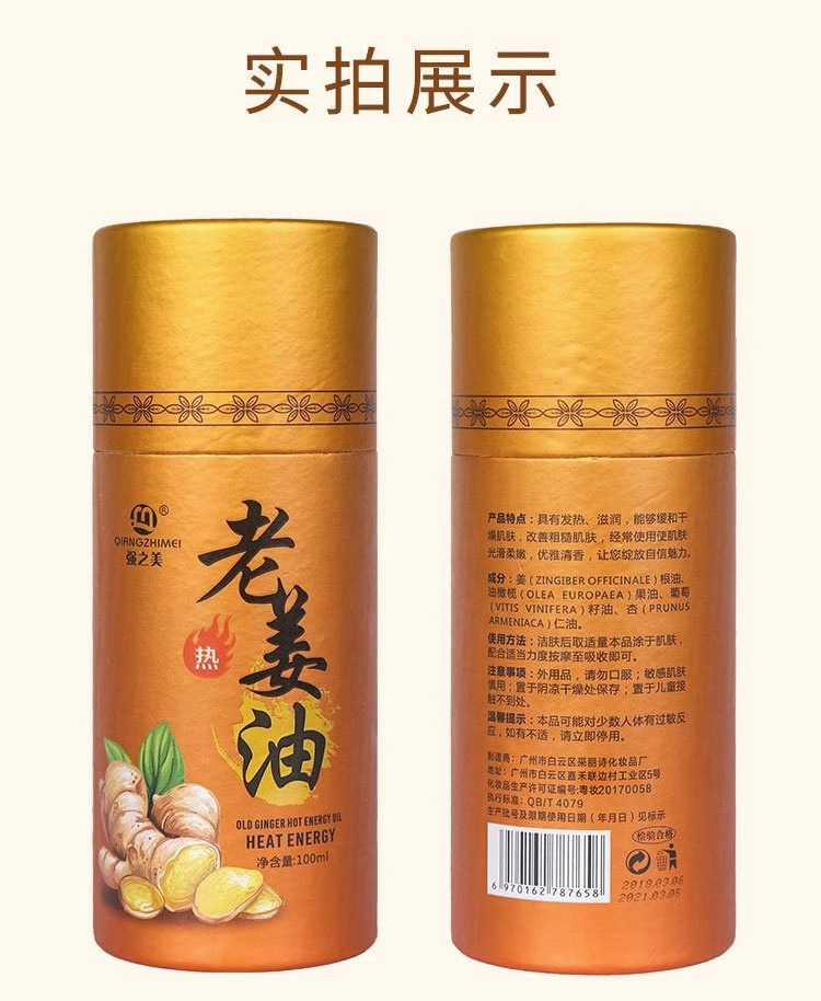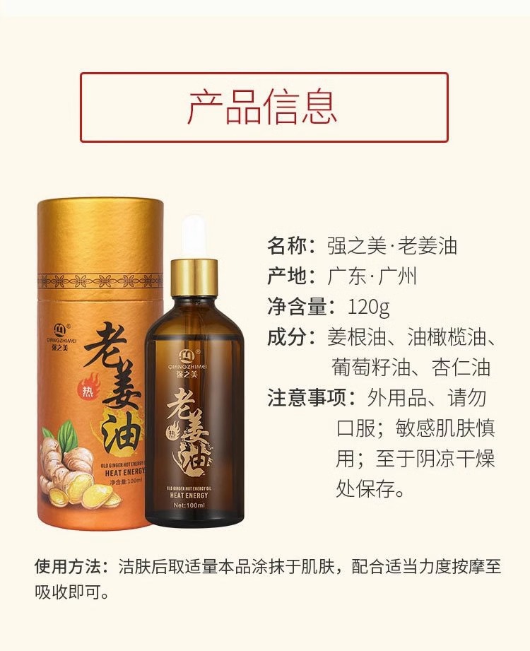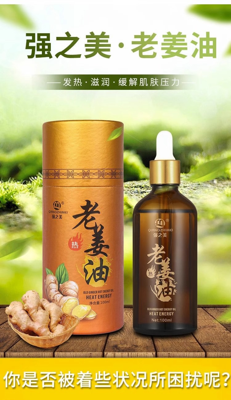 艾草老姜按摩精油身体通经络肩颈发热刮痧护肤开背正品美容院推油