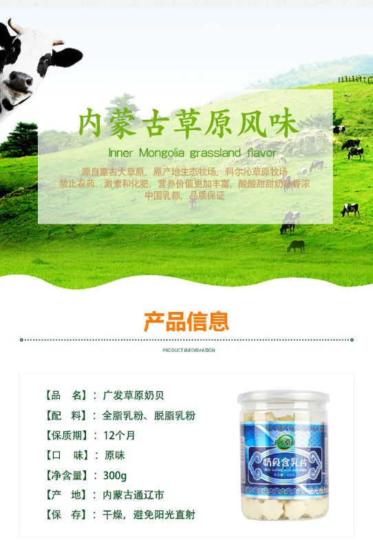 内蒙古广发草原原味奶片300g灌装