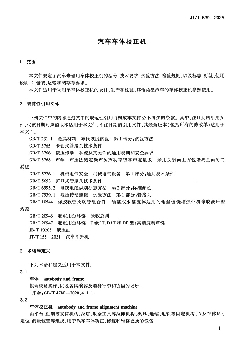书名:汽车车体校正机(JT/T 639—2025)