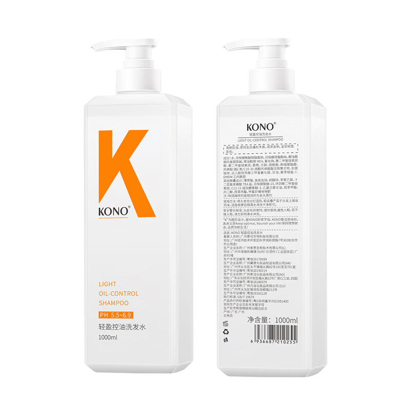 KONO轻盈控油洗发水1000ml控油蓬松留香轻盈温和大容量洗发露男女通用 100017927247