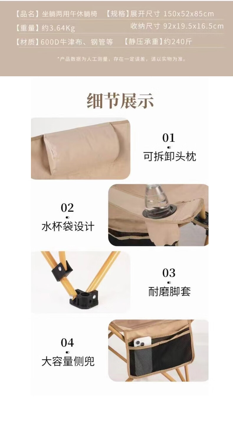 【小家电】趣游帮带头枕可调节坐躺两用午休躺椅Q320 HF