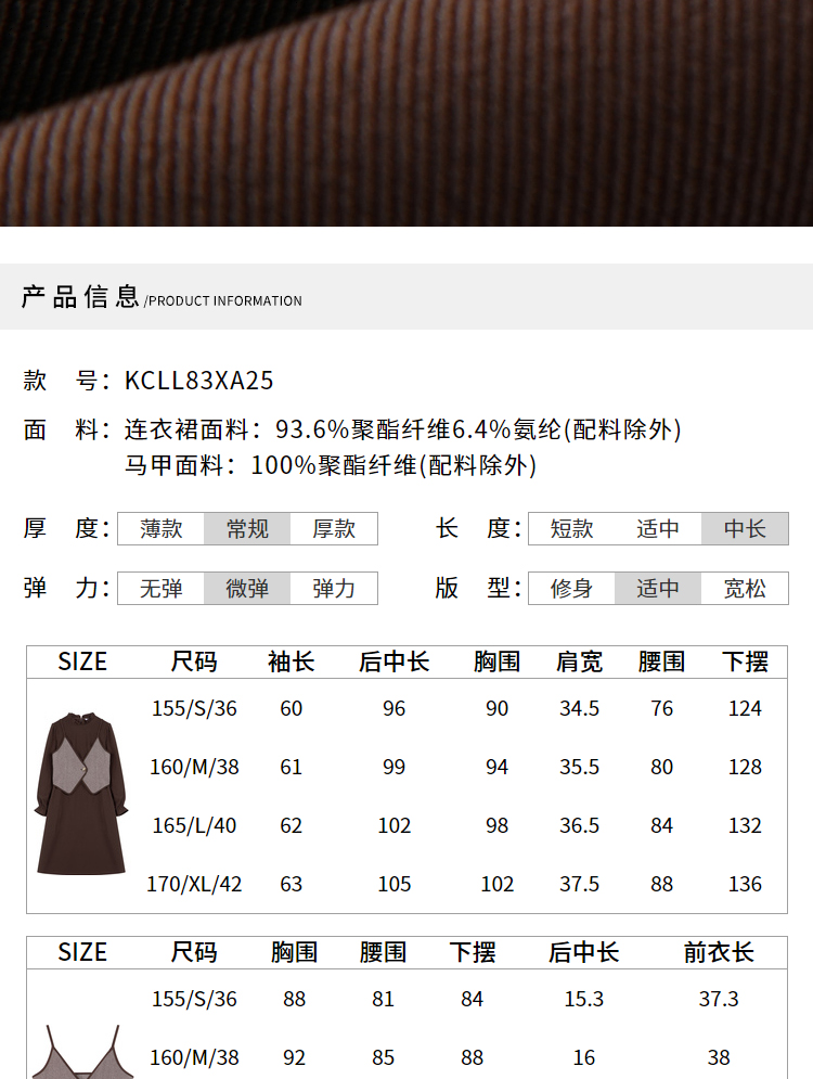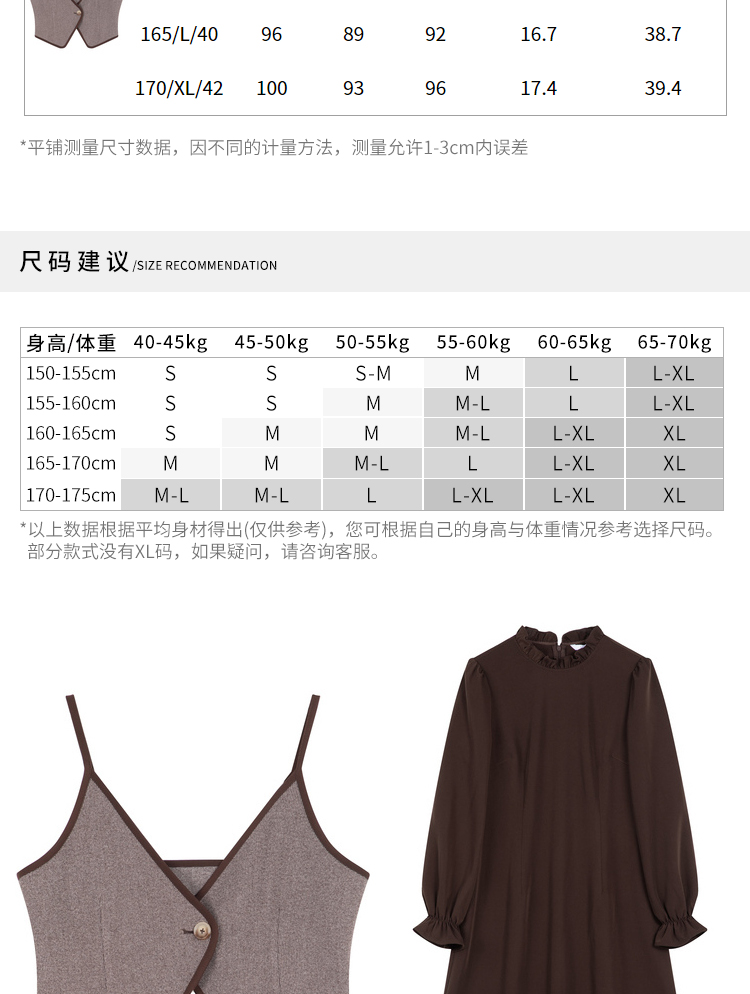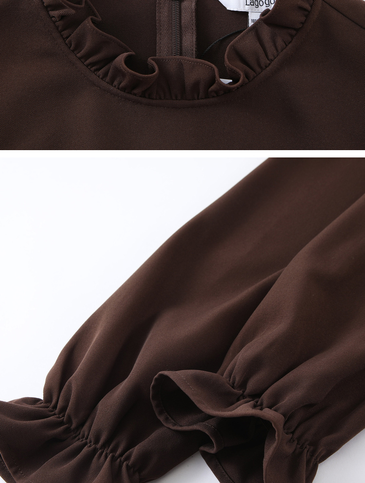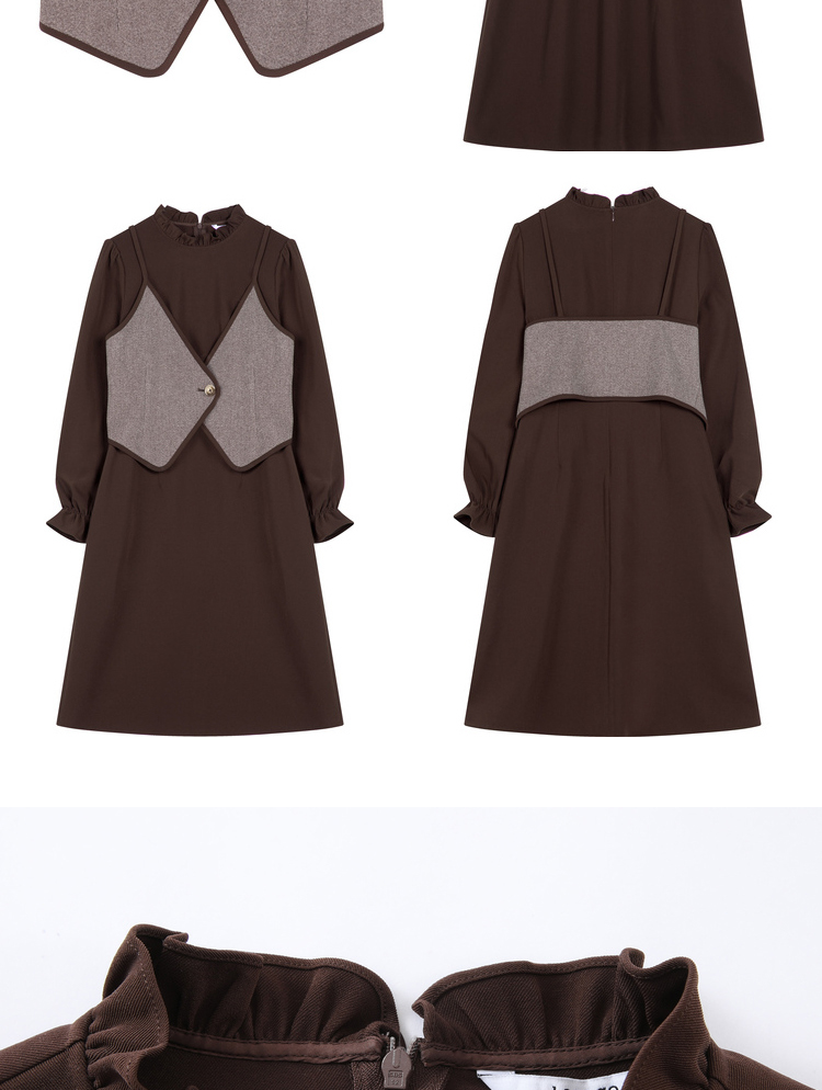 Lagogo拉谷谷2021冬季新款咖啡色泡泡袖连衣裙两件套女a字中长裙KCLL83XA25