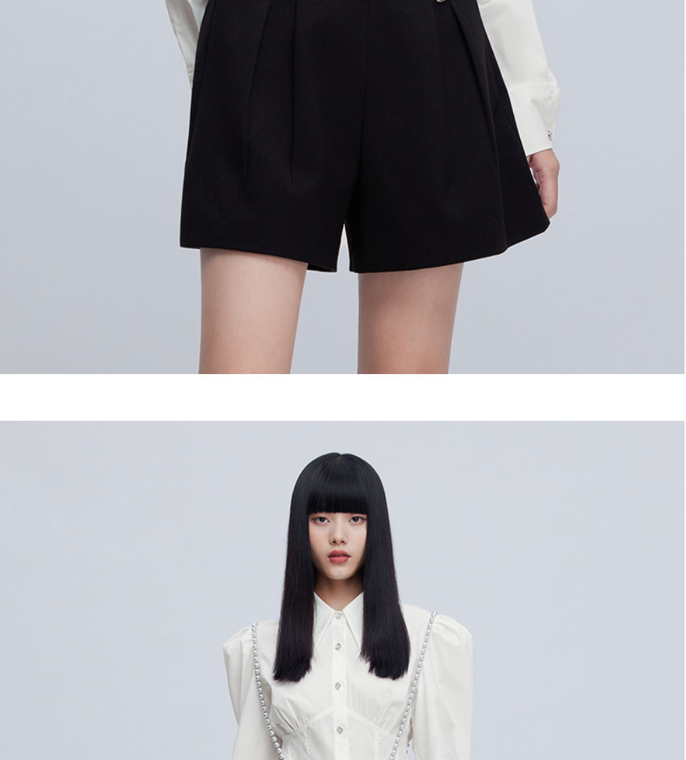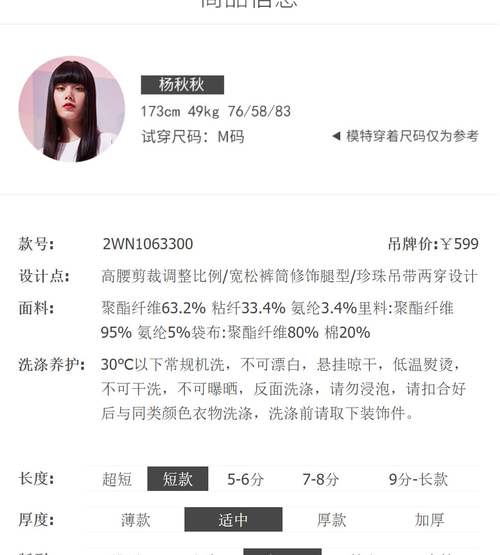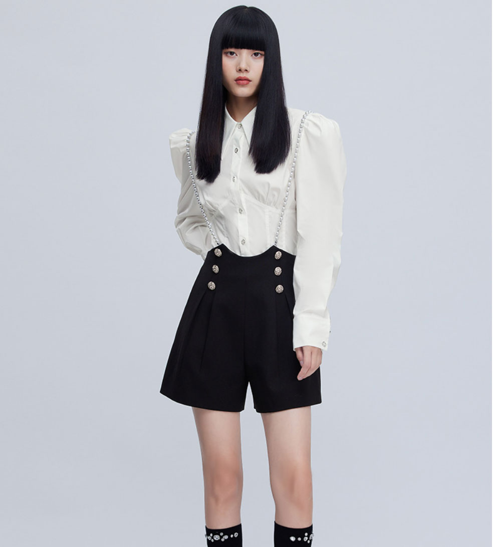 FIVE PLUS2022新款女春装小众气质背带阔腿裤女高腰直筒休闲裤短2WN1063300