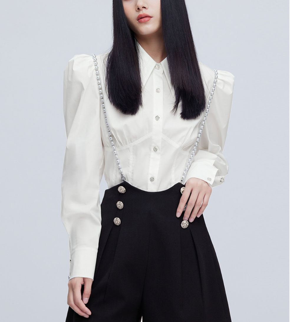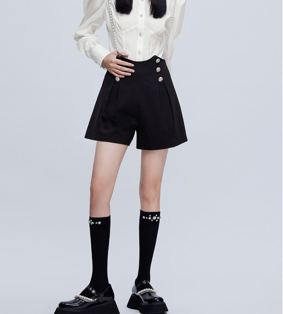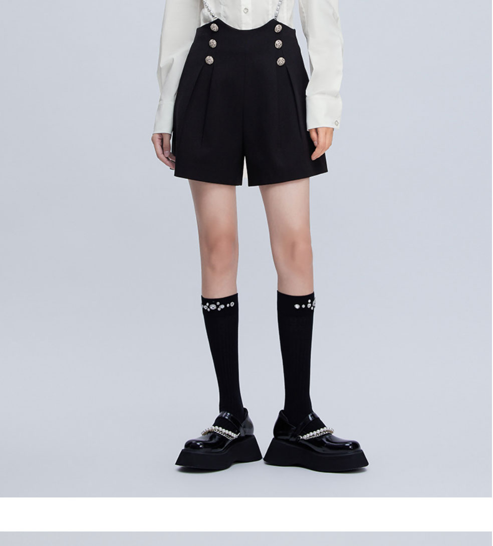 FIVE PLUS2022新款女春装小众气质背带阔腿裤女高腰直筒休闲裤短2WN1063300