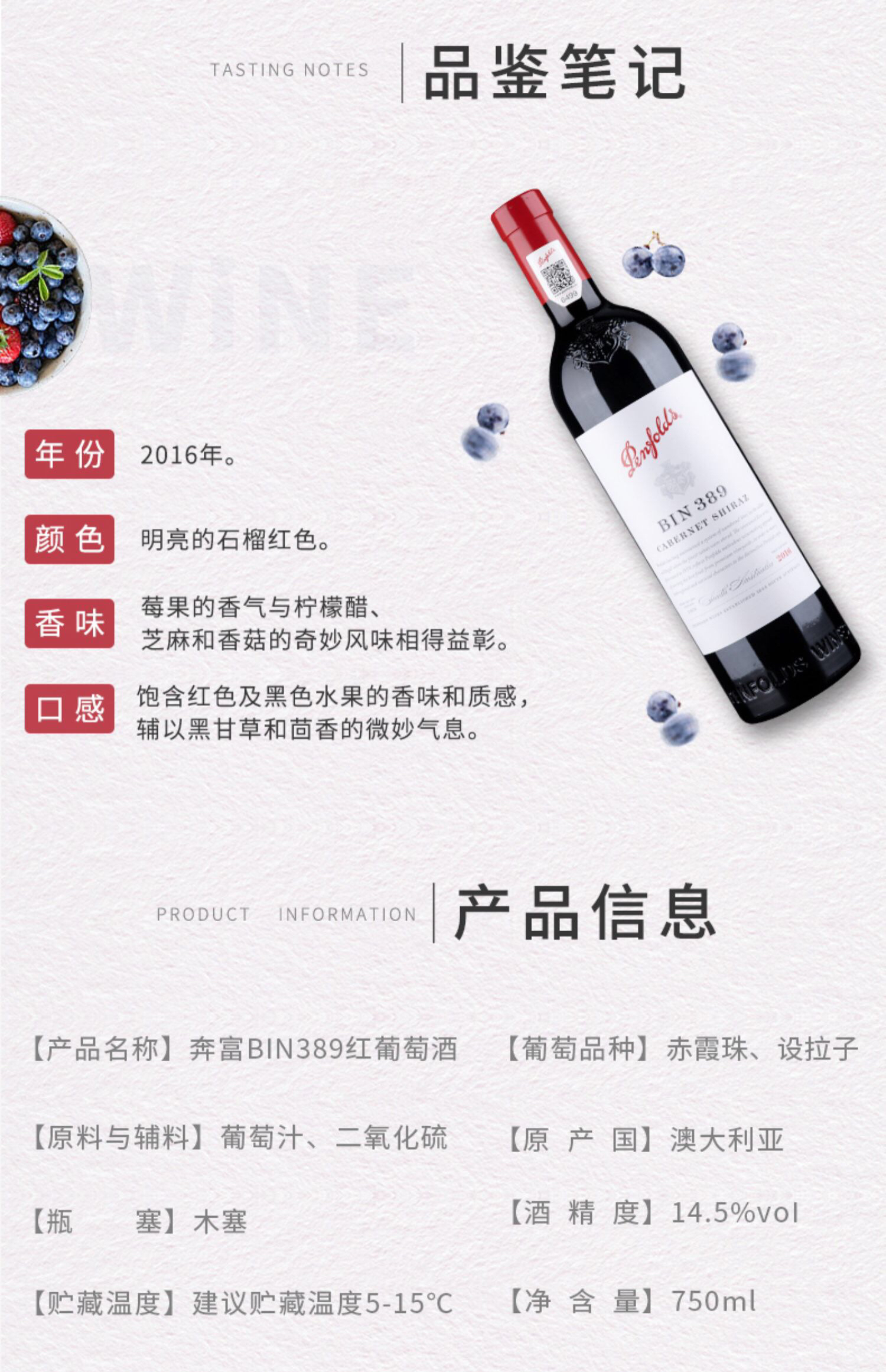 2018年·奔富 BIN389 干红葡萄酒