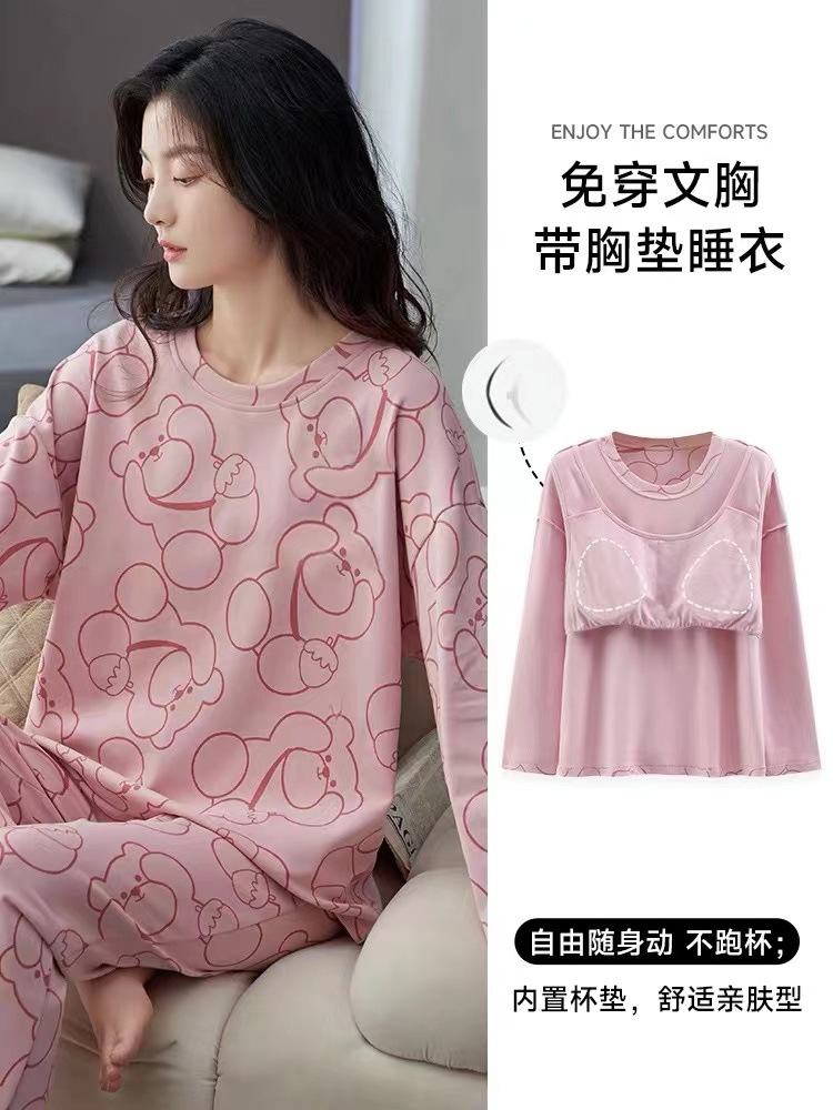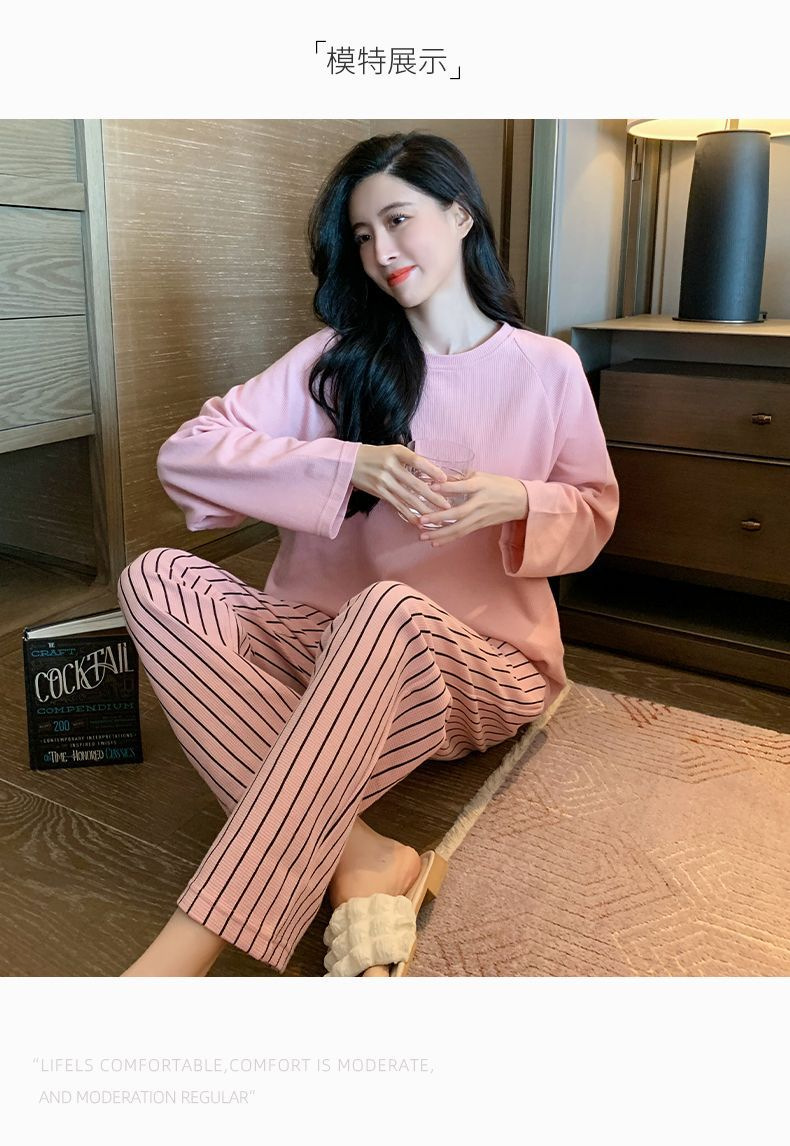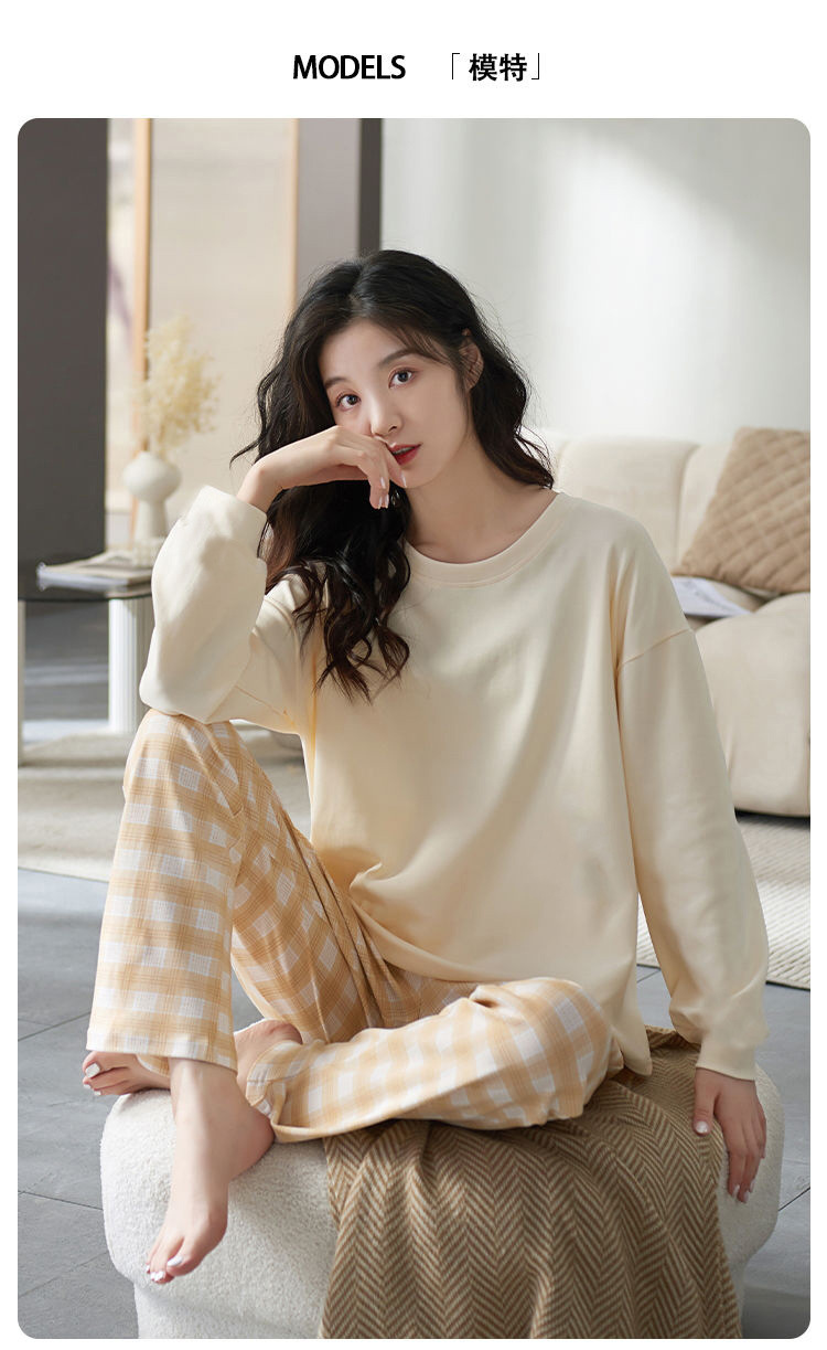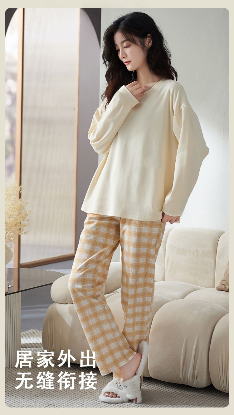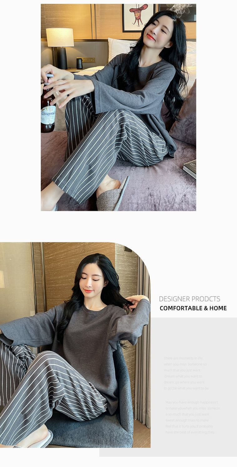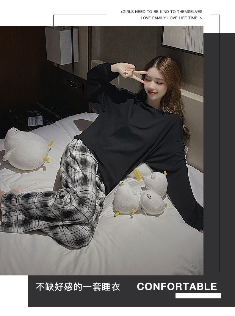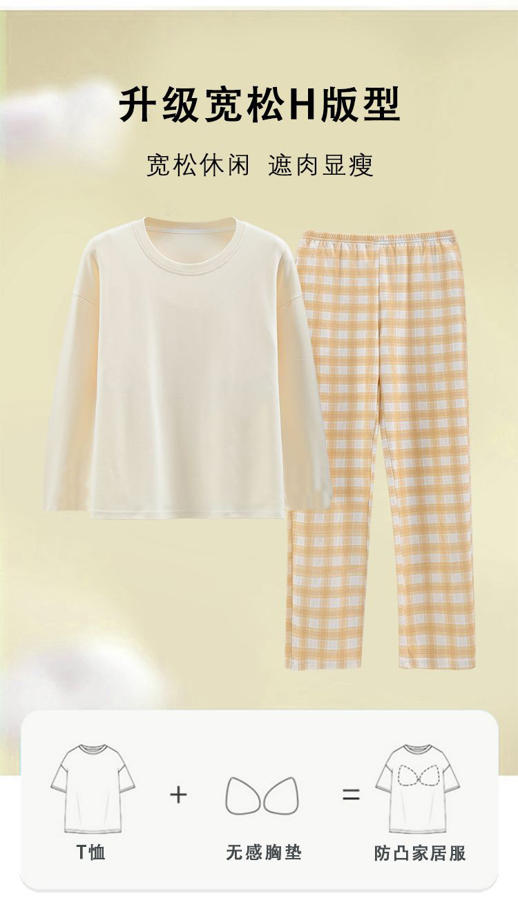 【自带胸垫,温暖宽松】G级大码,时尚不拘束;春秋季长袖长裤,陪你度过每个季节;简约外穿家居服套装,展现网红风。