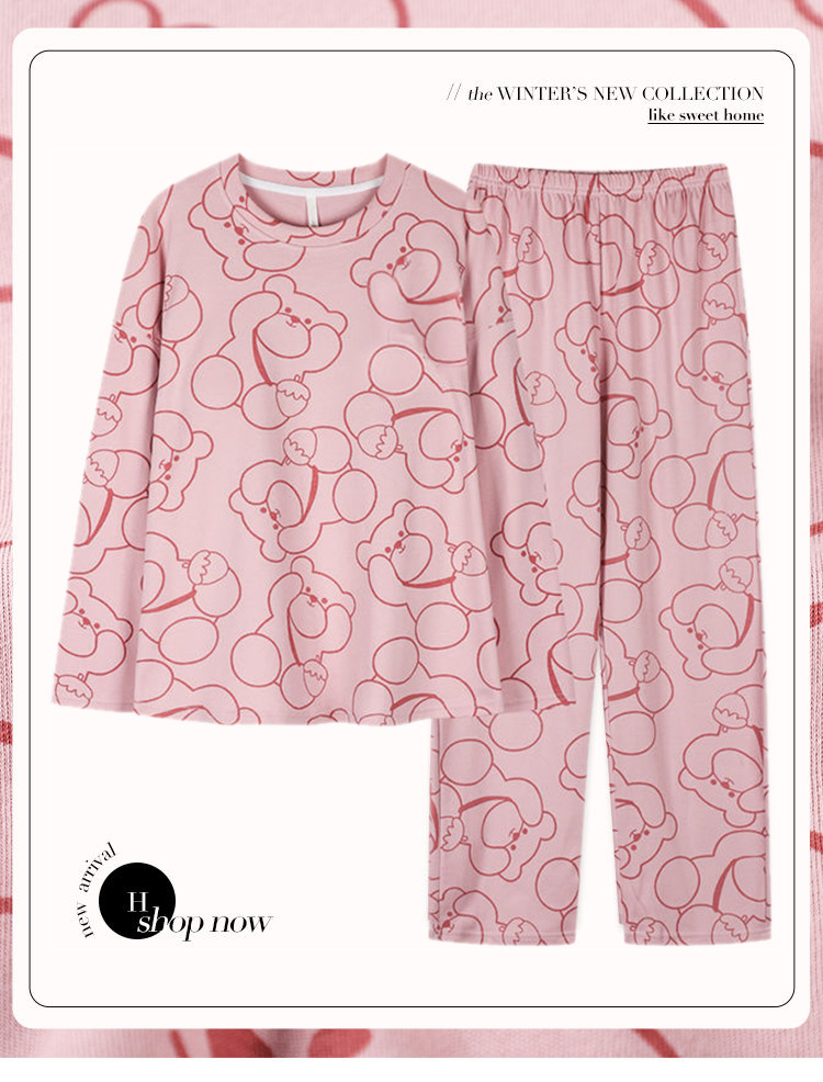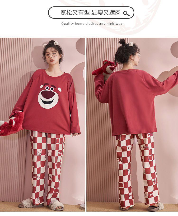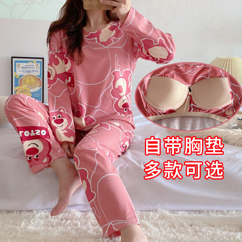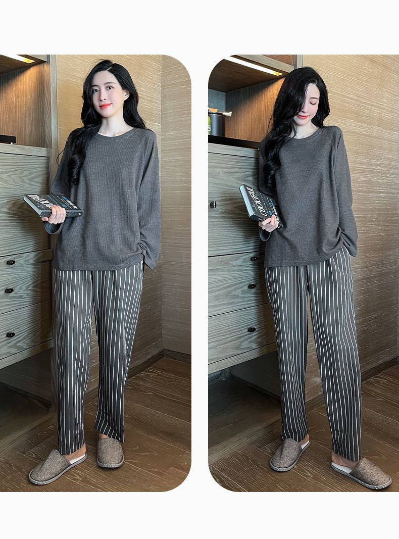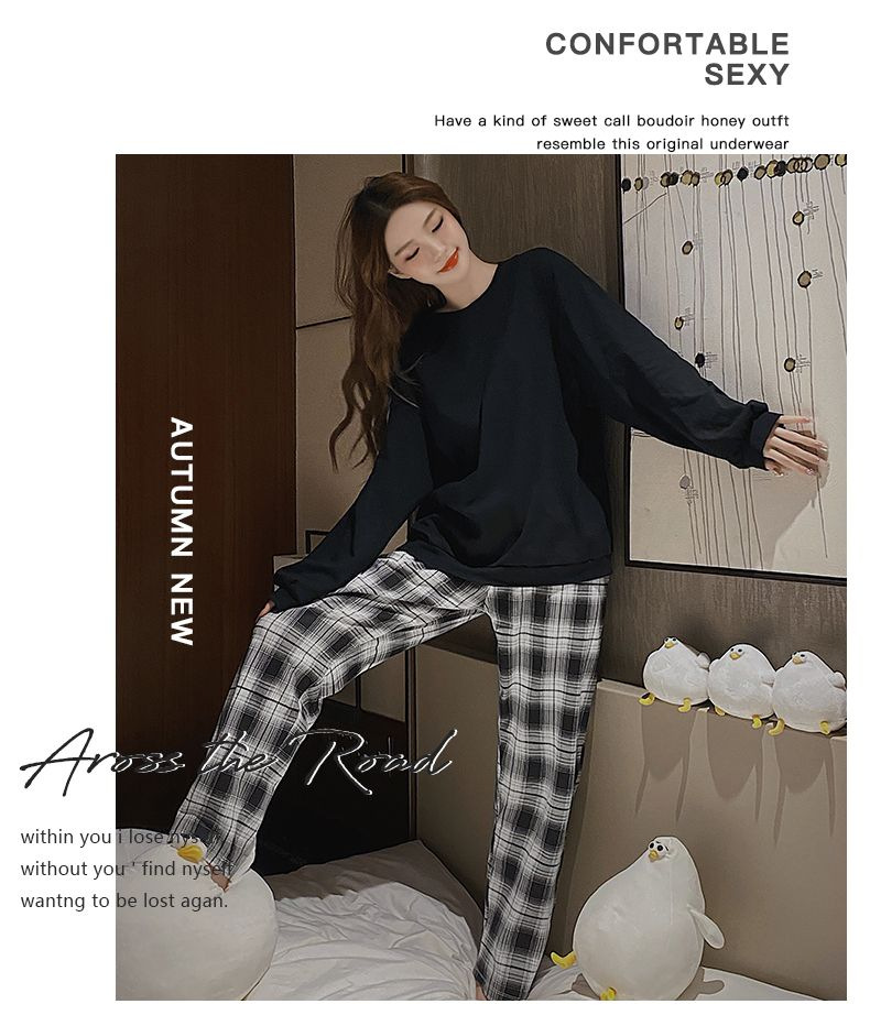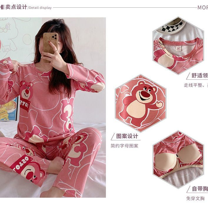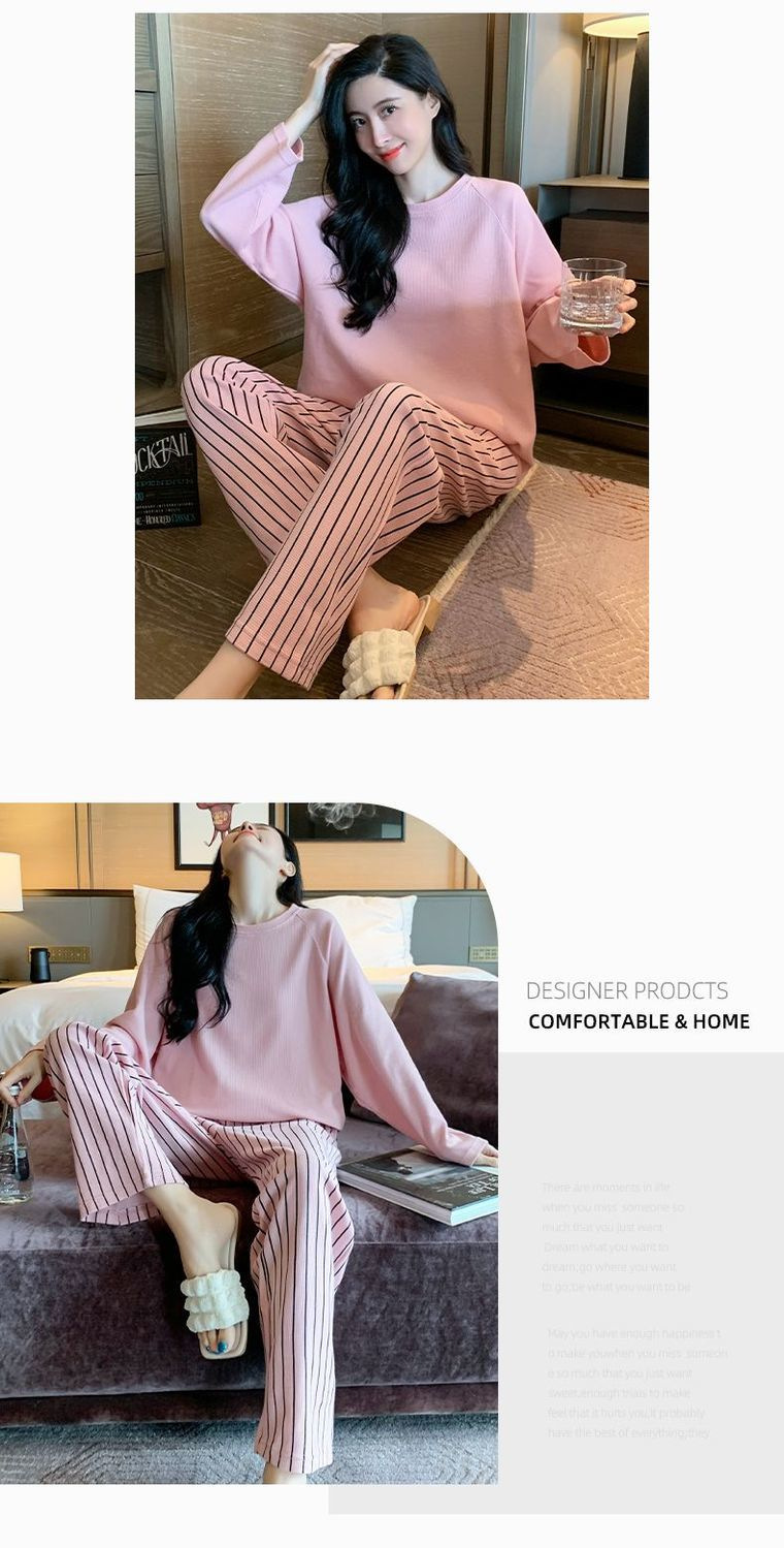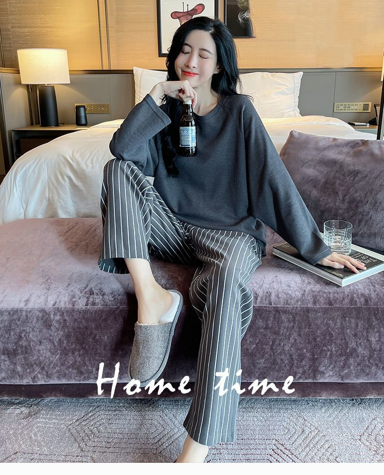 【自带胸垫,温暖宽松】G级大码,时尚不拘束;春秋季长袖长裤,陪你度过每个季节;简约外穿家居服套装,展现网红风。