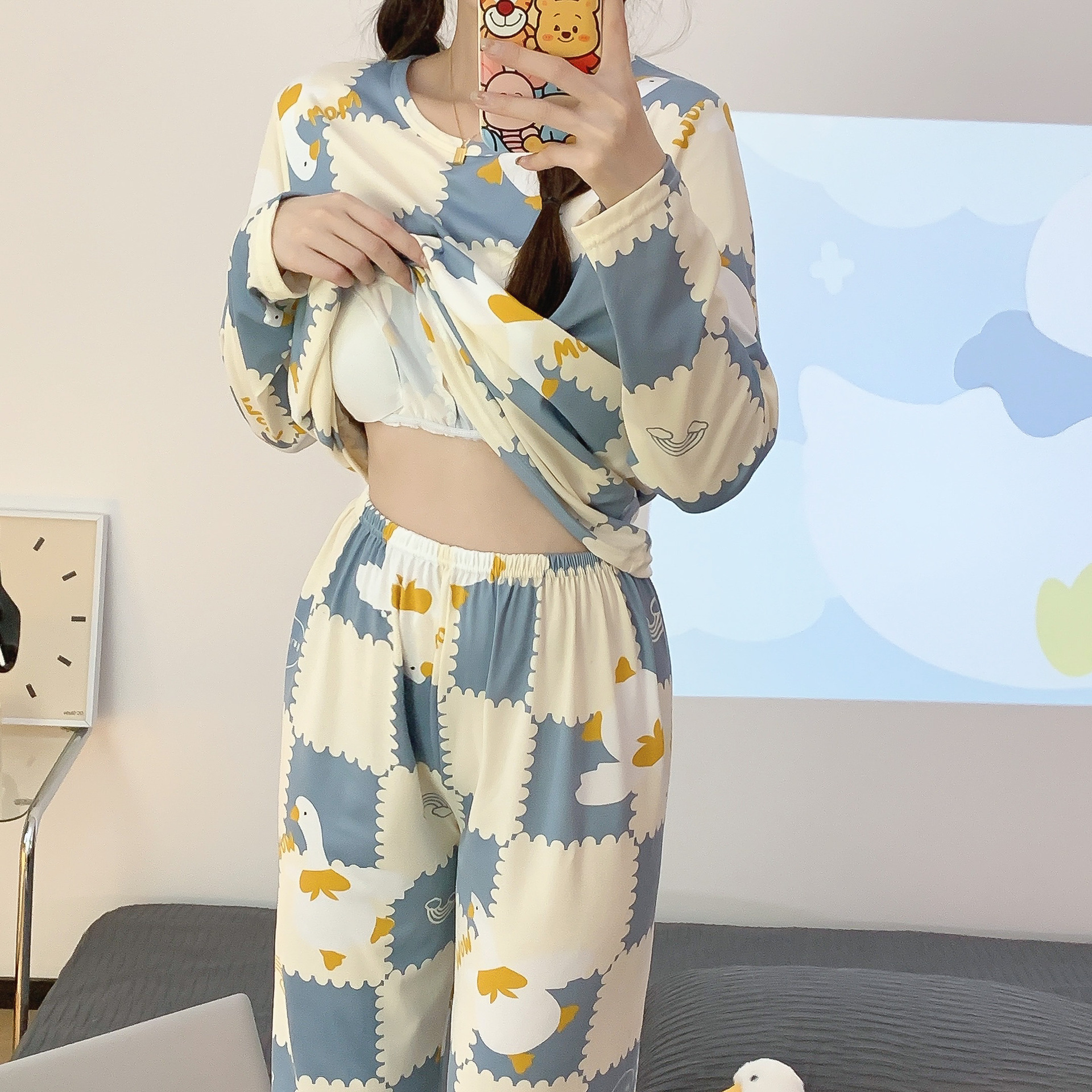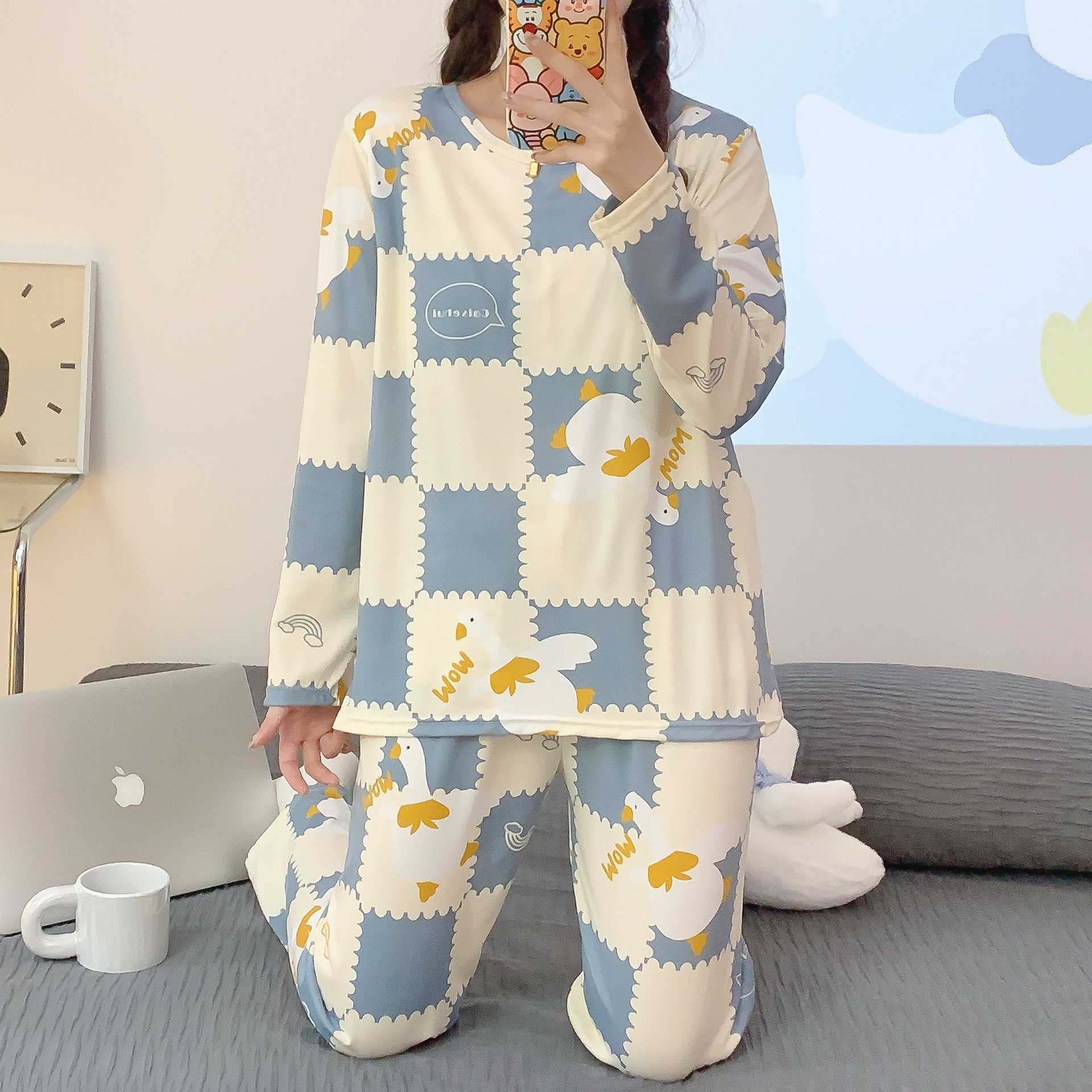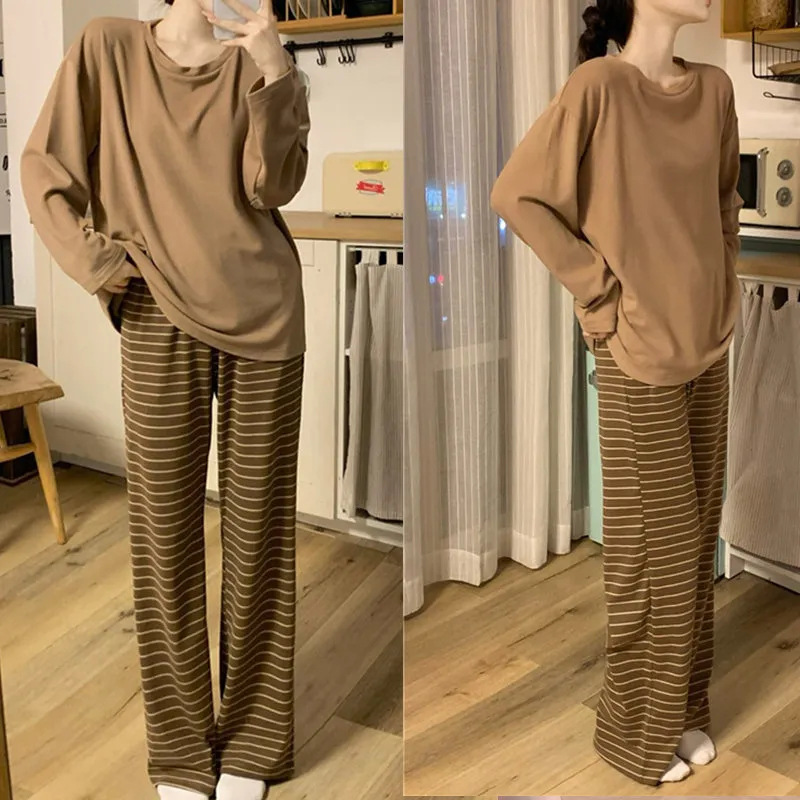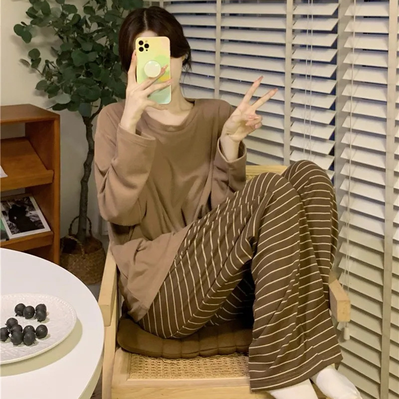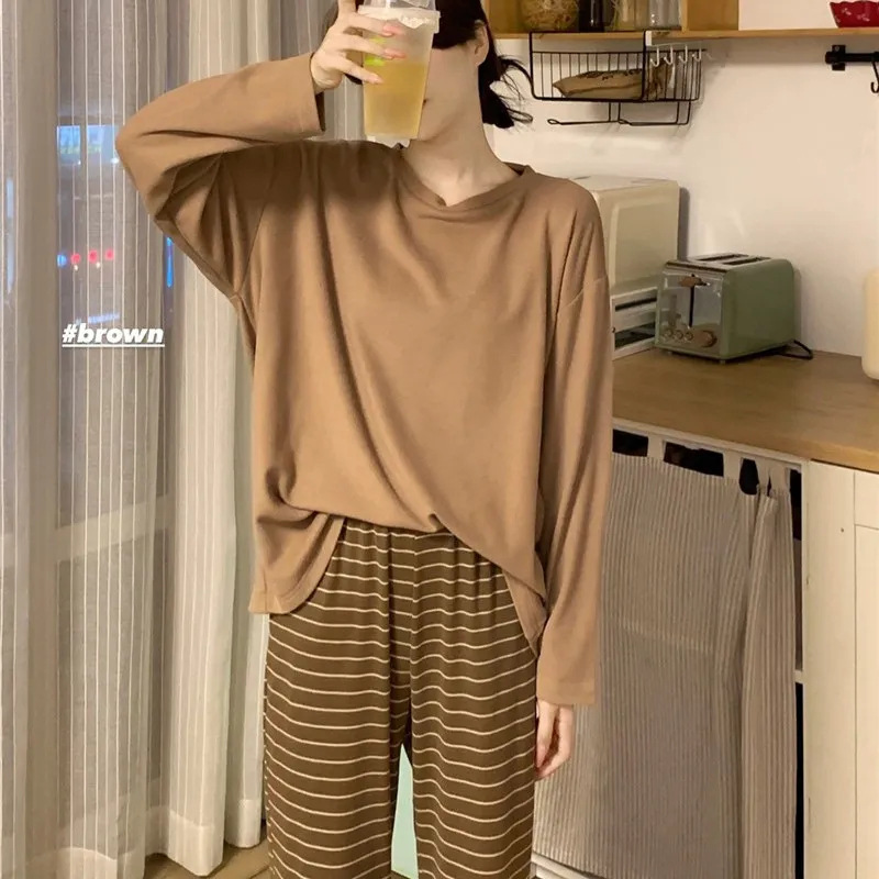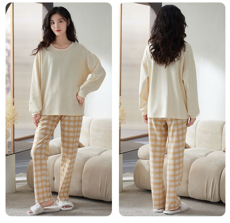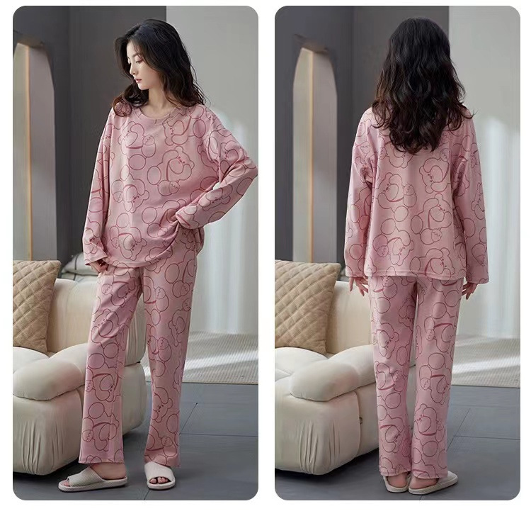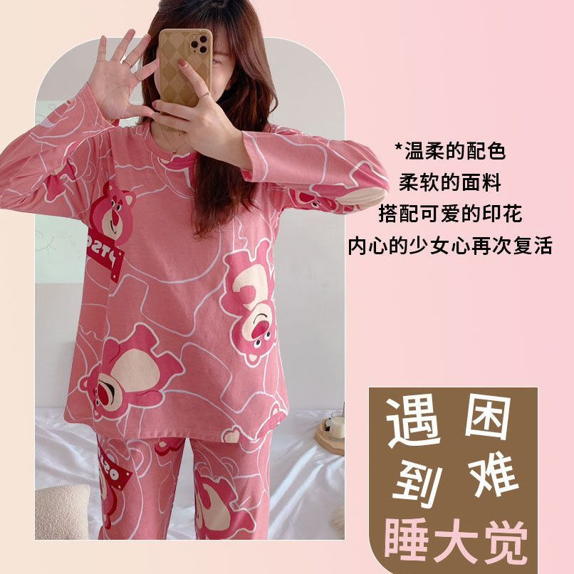 【自带胸垫,温暖宽松】G级大码,时尚不拘束;春秋季长袖长裤,陪你度过每个季节;简约外穿家居服套装,展现网红风。