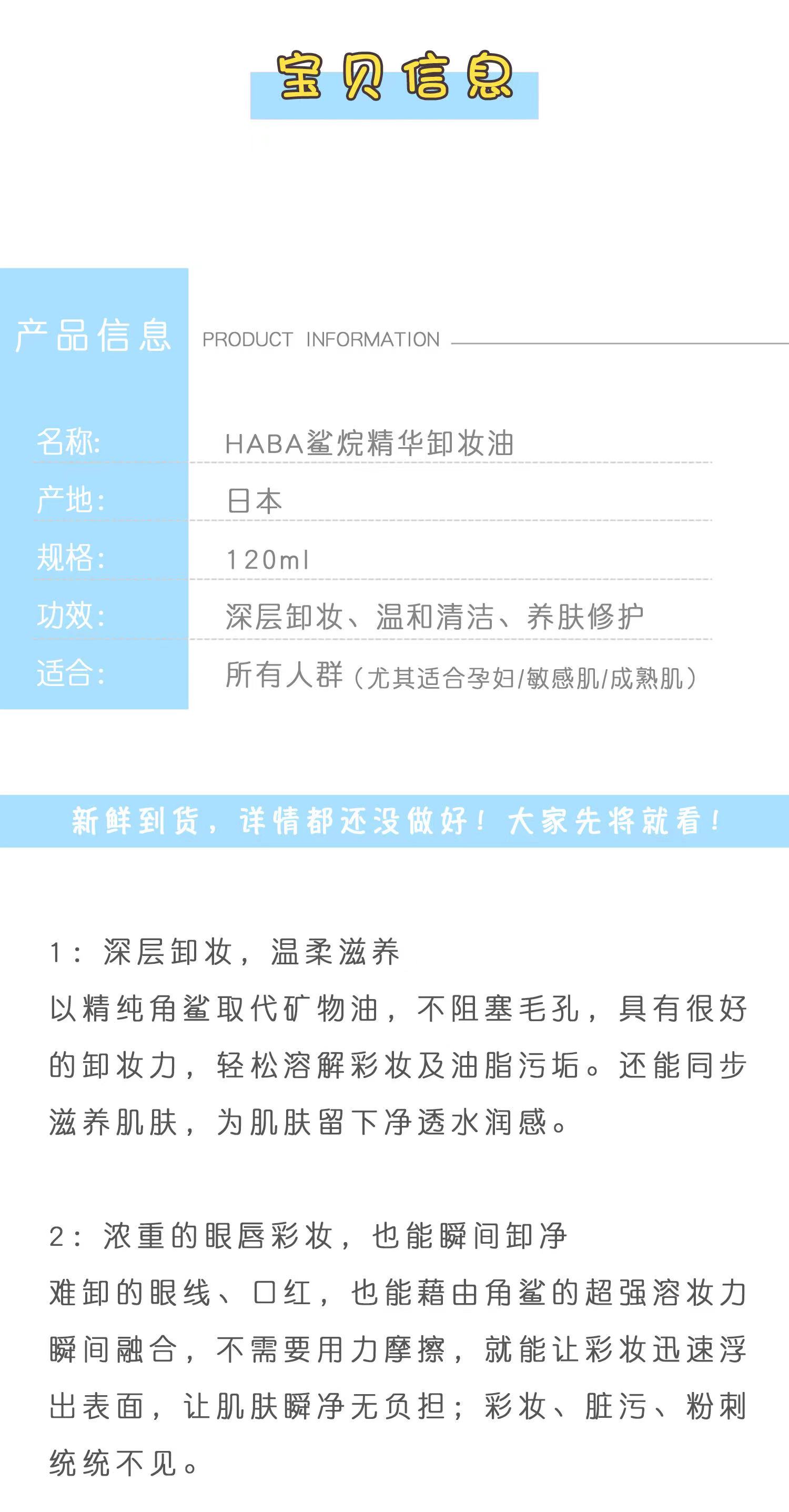 商品名称:【清仓好价】HABA鲨烷净颜卸妆油l20ml(23.6)