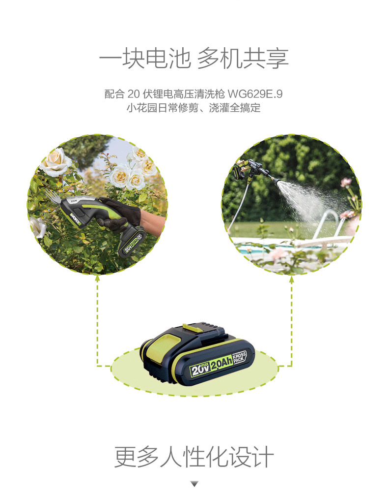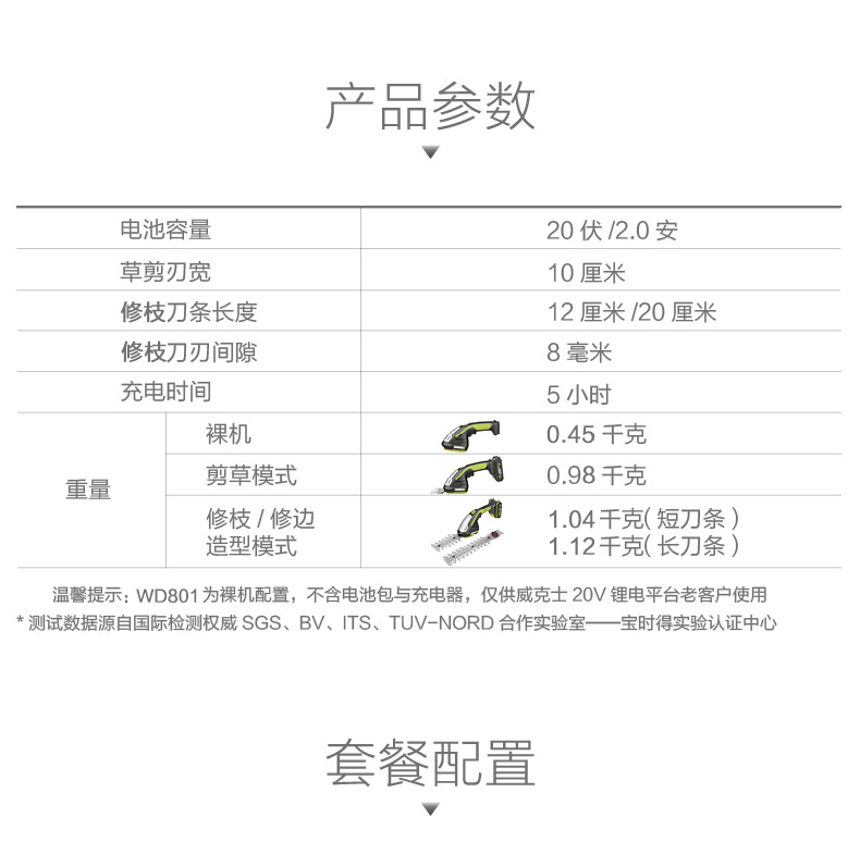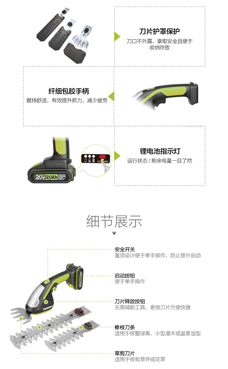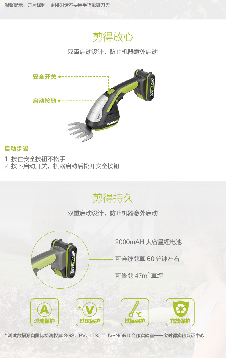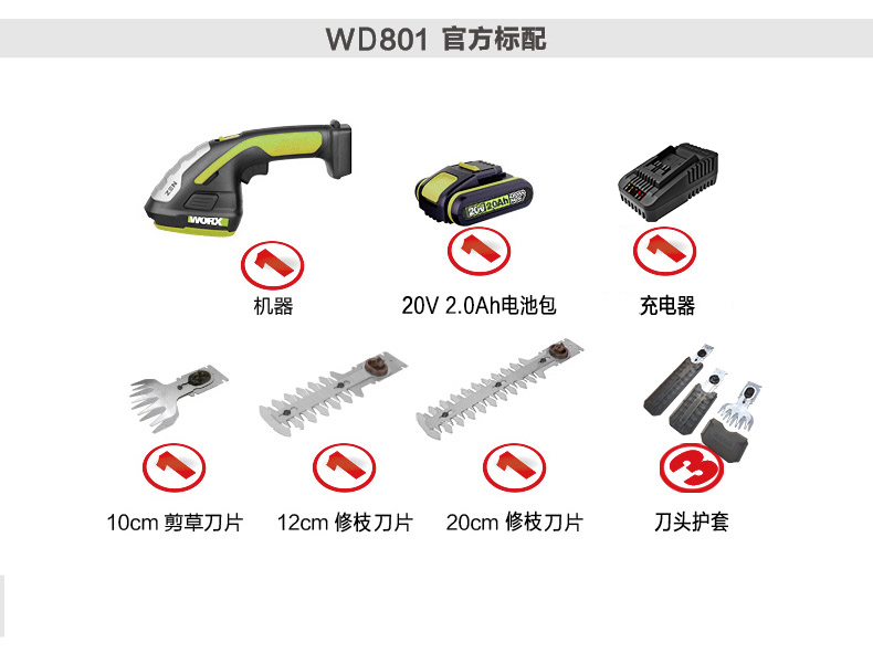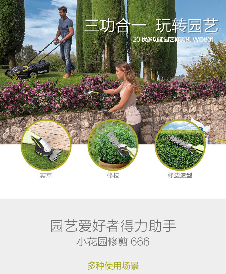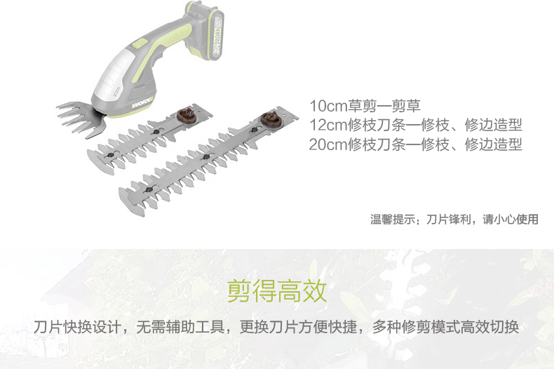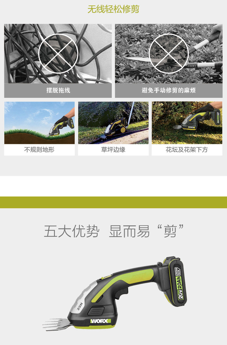 威克士迷你锂电修篱机WD801多功能除草剪草电动绿篱剪修枝割草机