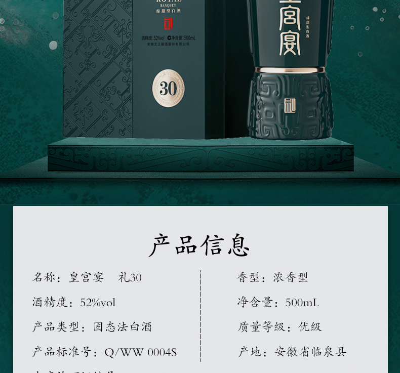 文王贡酒官方旗舰店 皇宫宴(礼30)52度500ml 安徽高端浓香型 白酒礼盒