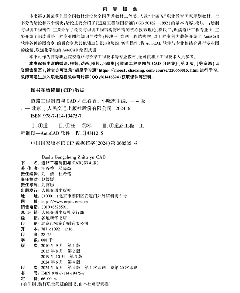 书名:道路工程制图与CAD(第4版)