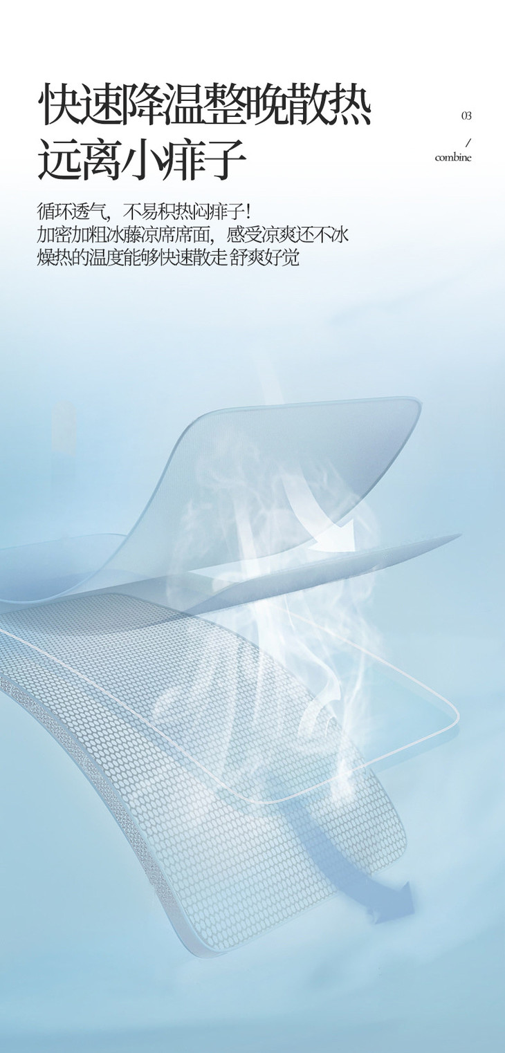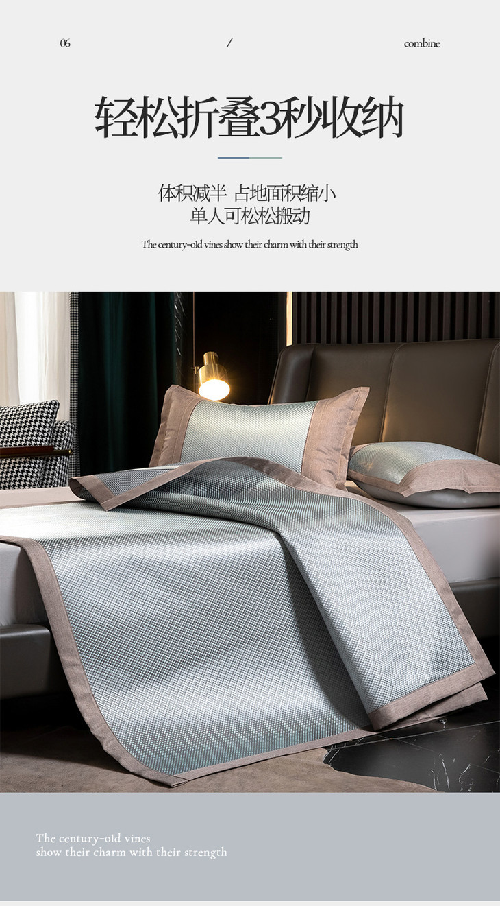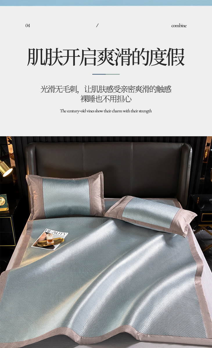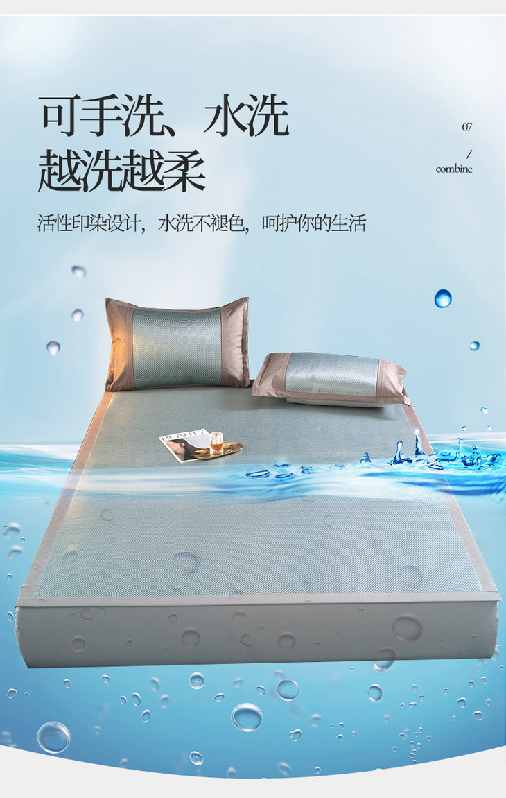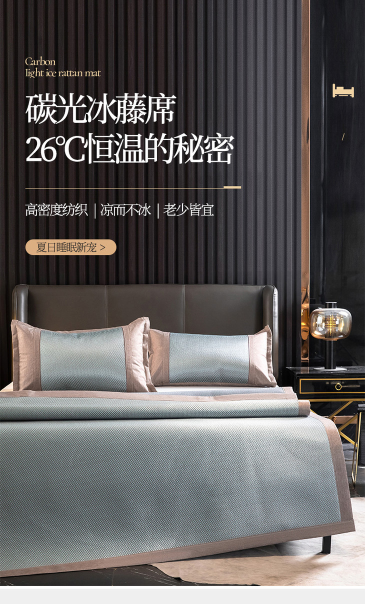 夏季冰丝席软凉席子 碳光藤席凉席三件套可折叠可机洗