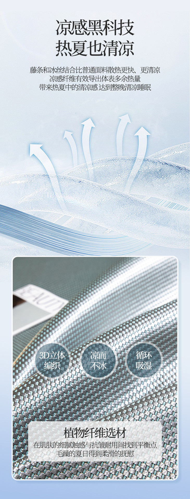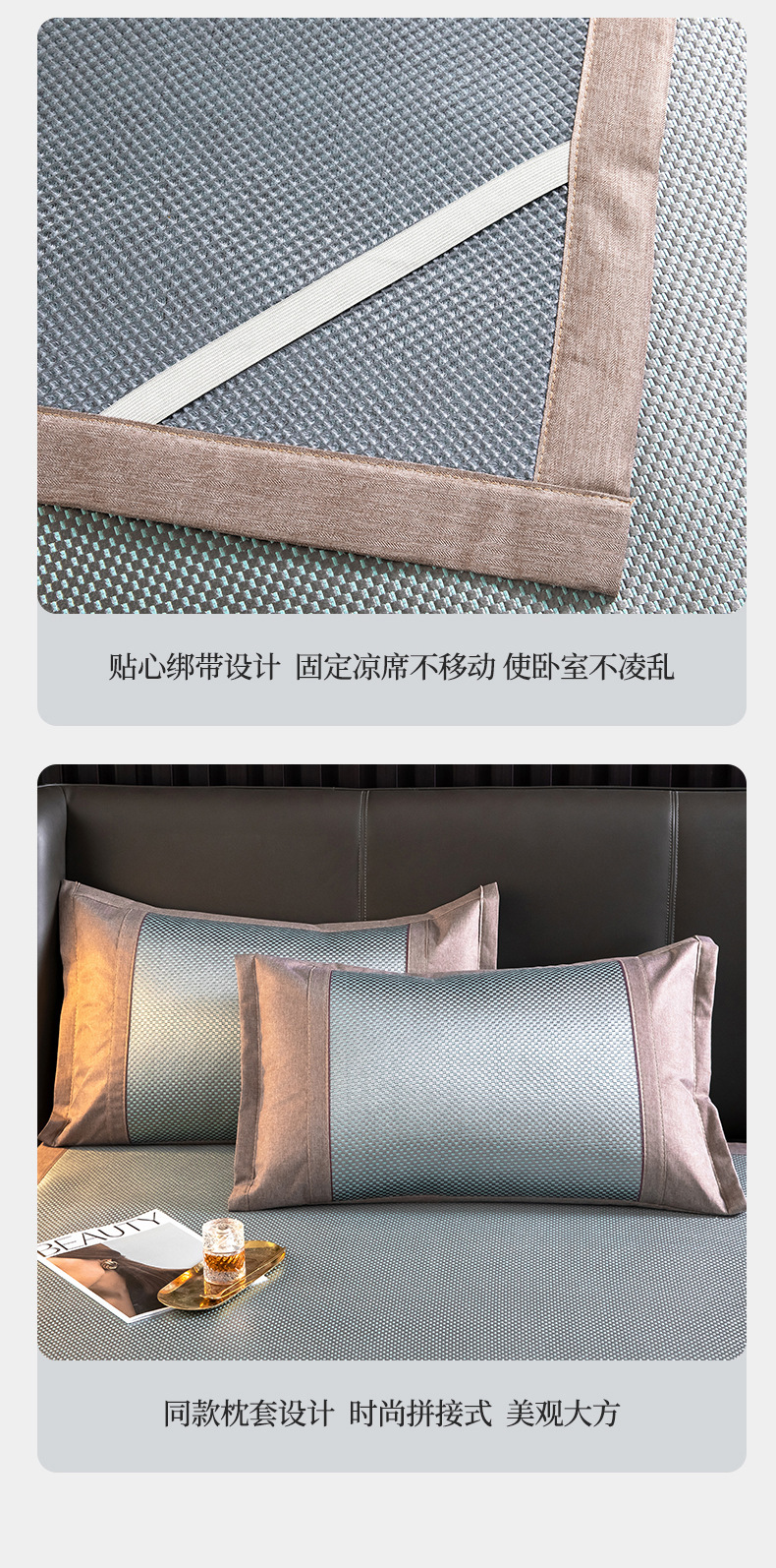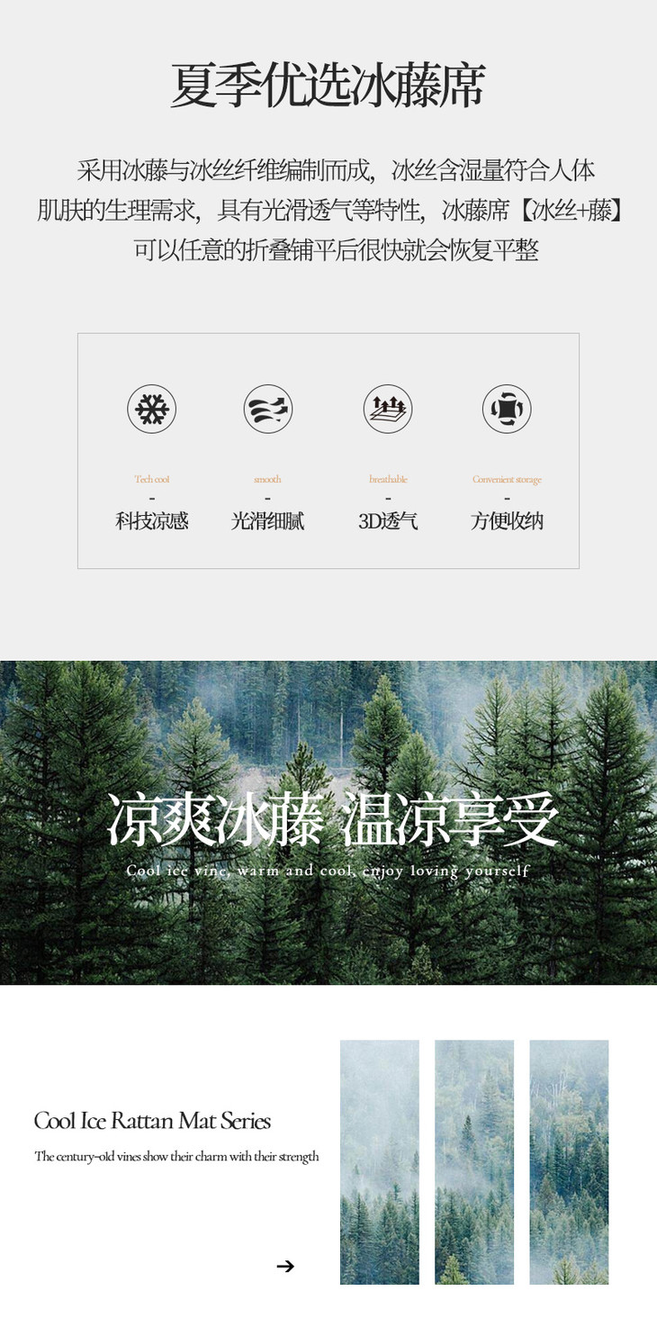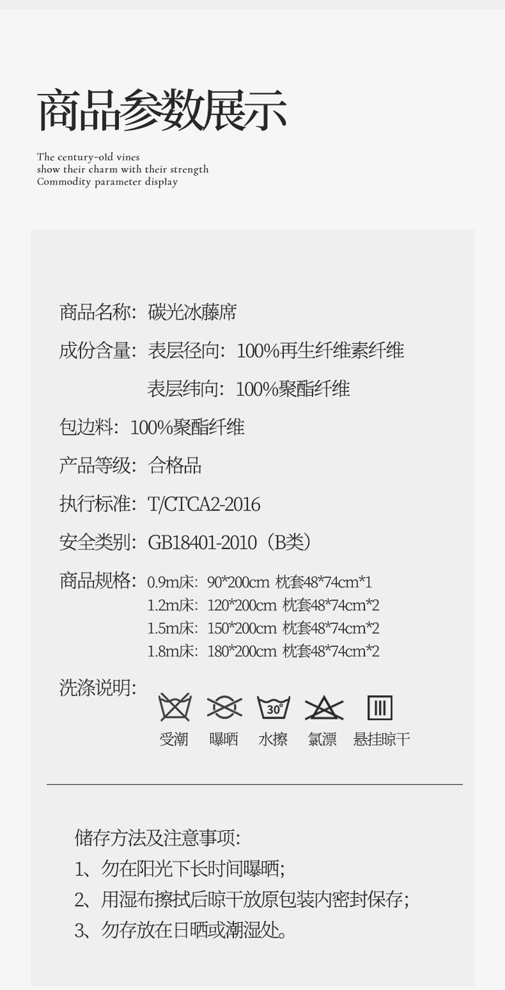 夏季冰丝席软凉席子 碳光藤席凉席三件套可折叠可机洗