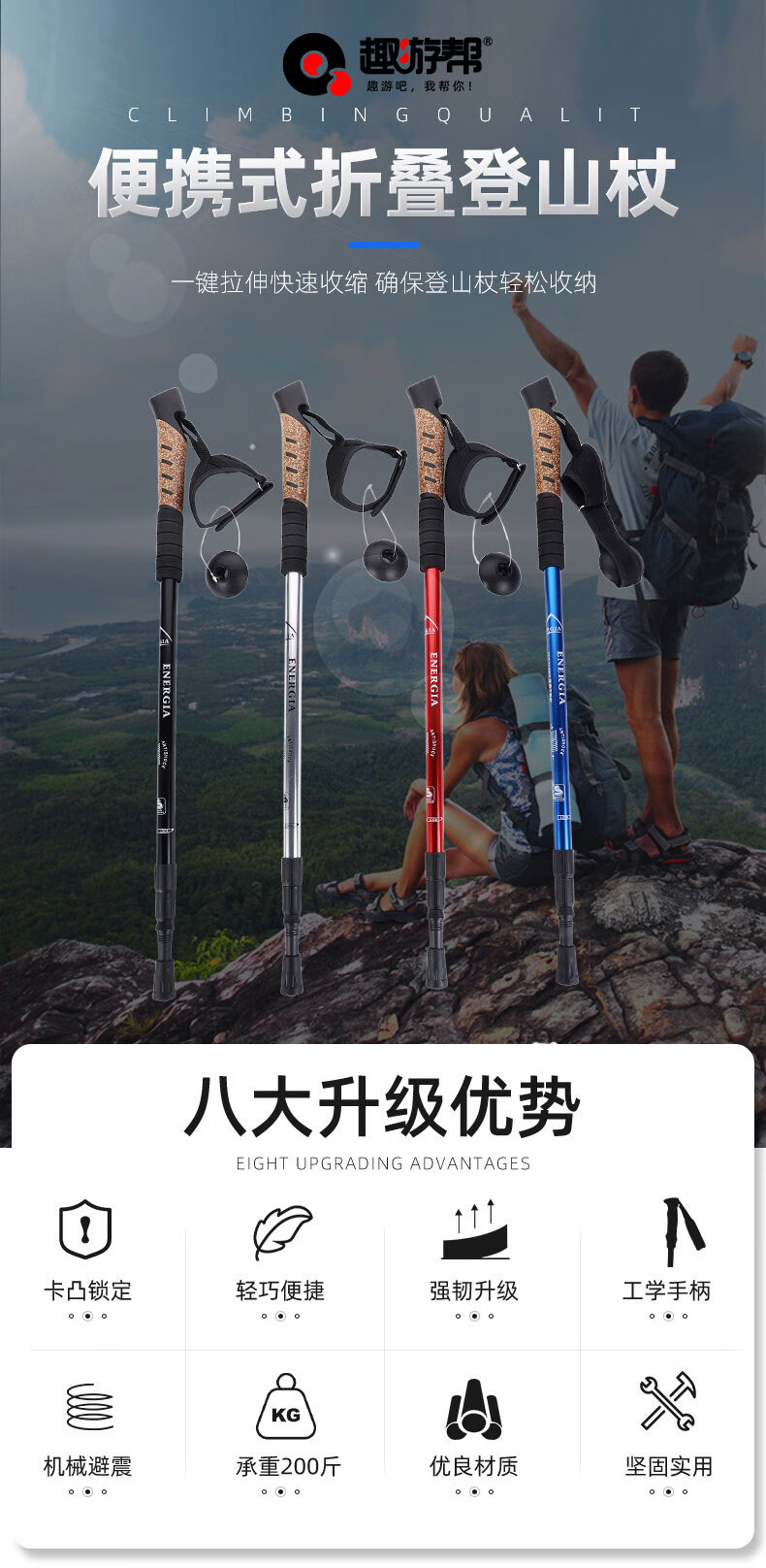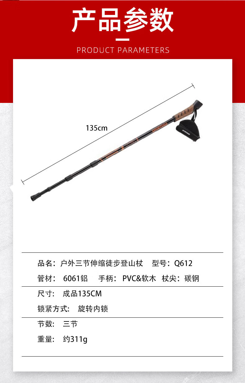 【小家电】趣游帮户外三节伸缩徒步登山杖 Q612 HF