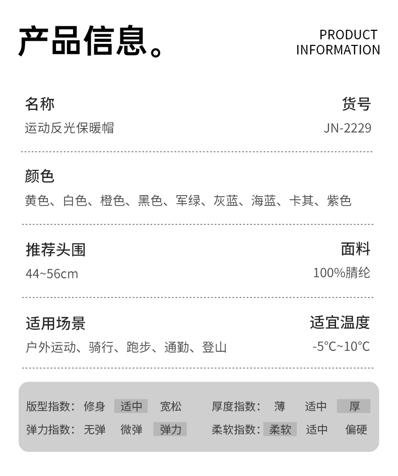 积能秋冬跑步运动防寒保暖帽男女士户外防风夜间反光