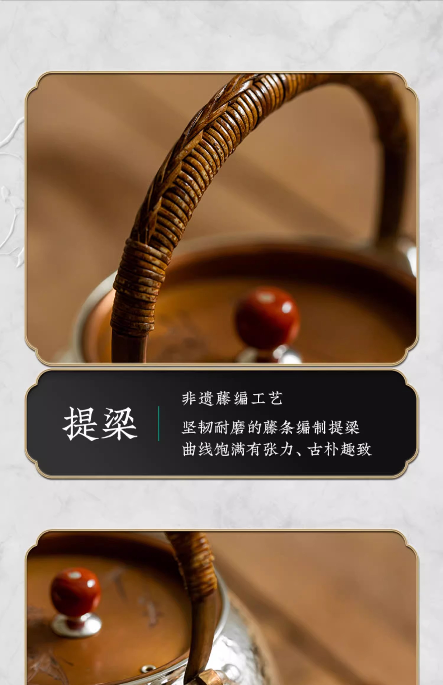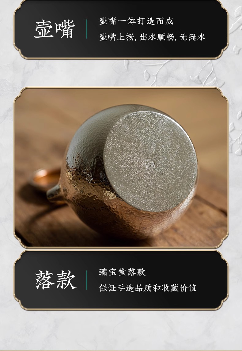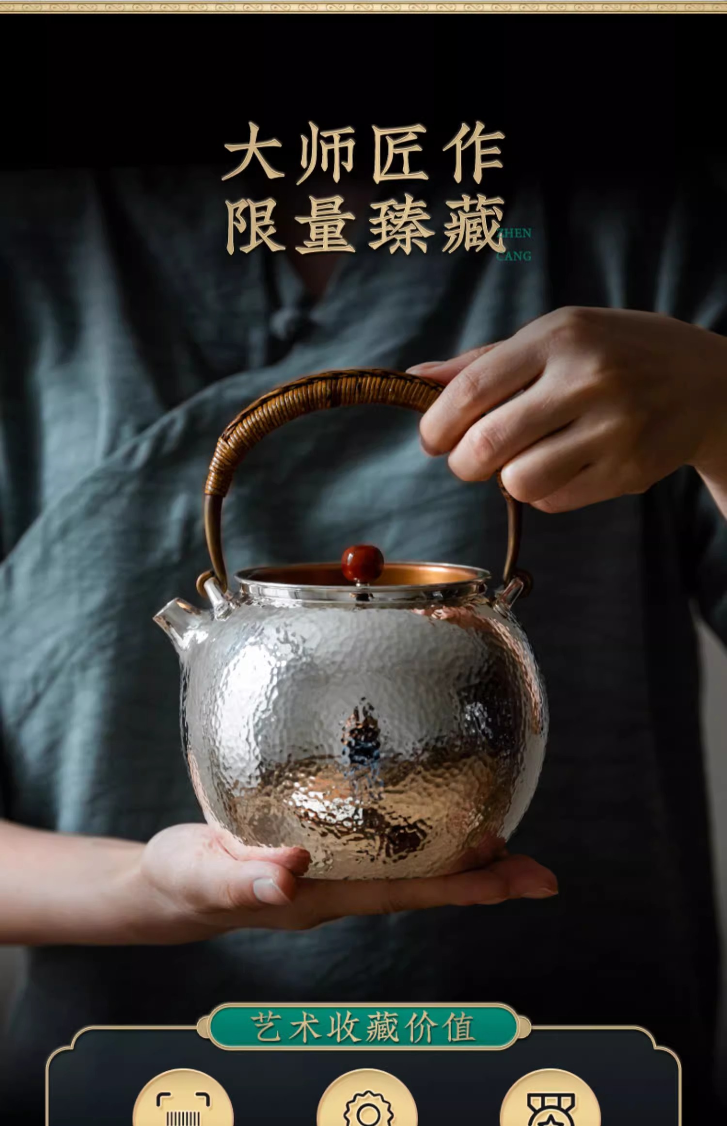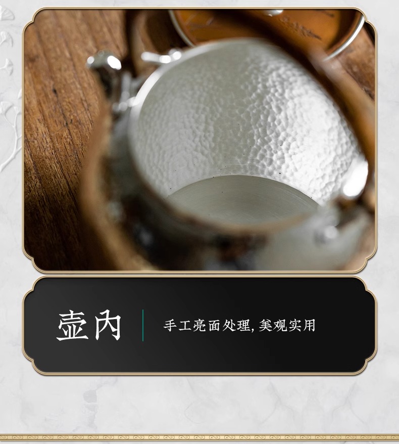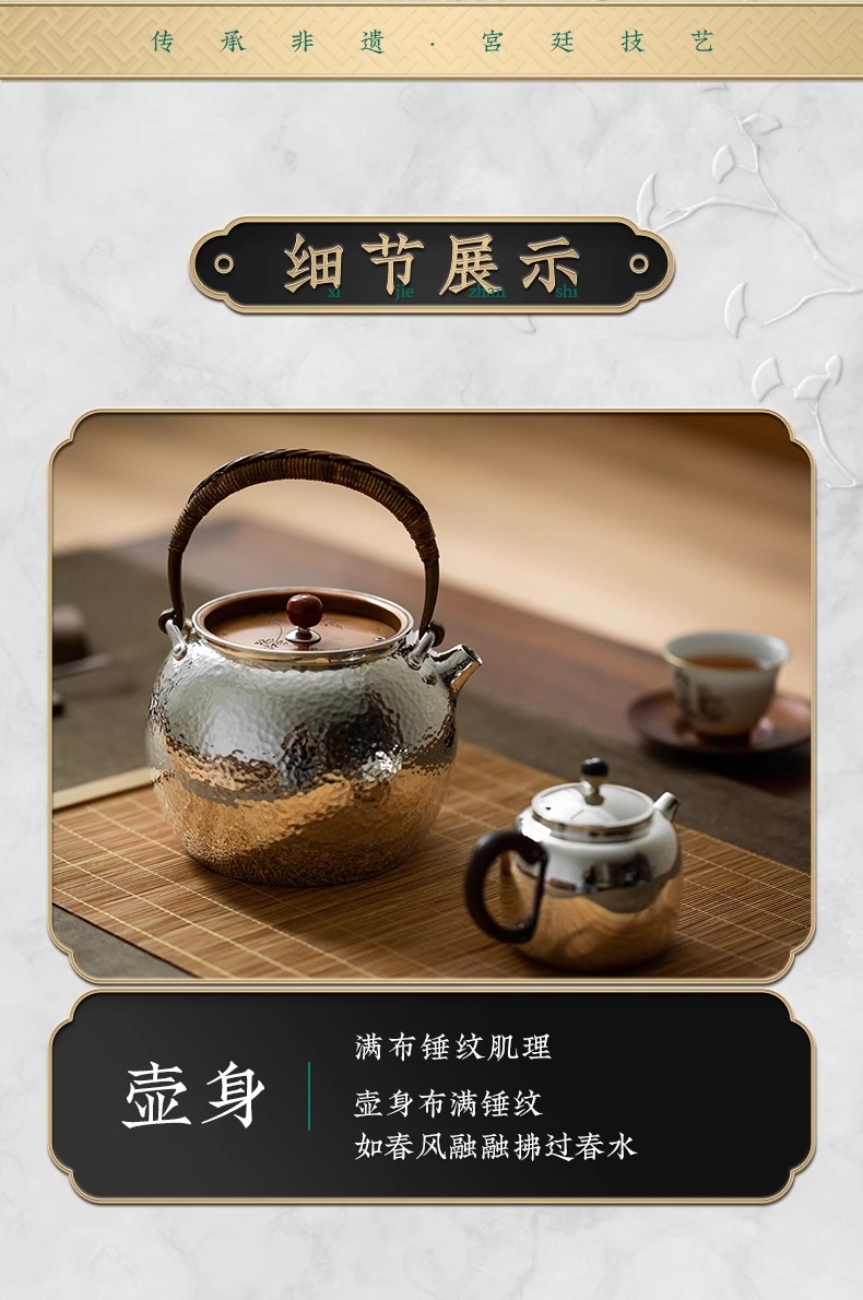 臻宝堂银壶 999纯银一张打烧水壶纯手工煮茶壶南红摘家用中式茶具南红摘圆融银壶900ml