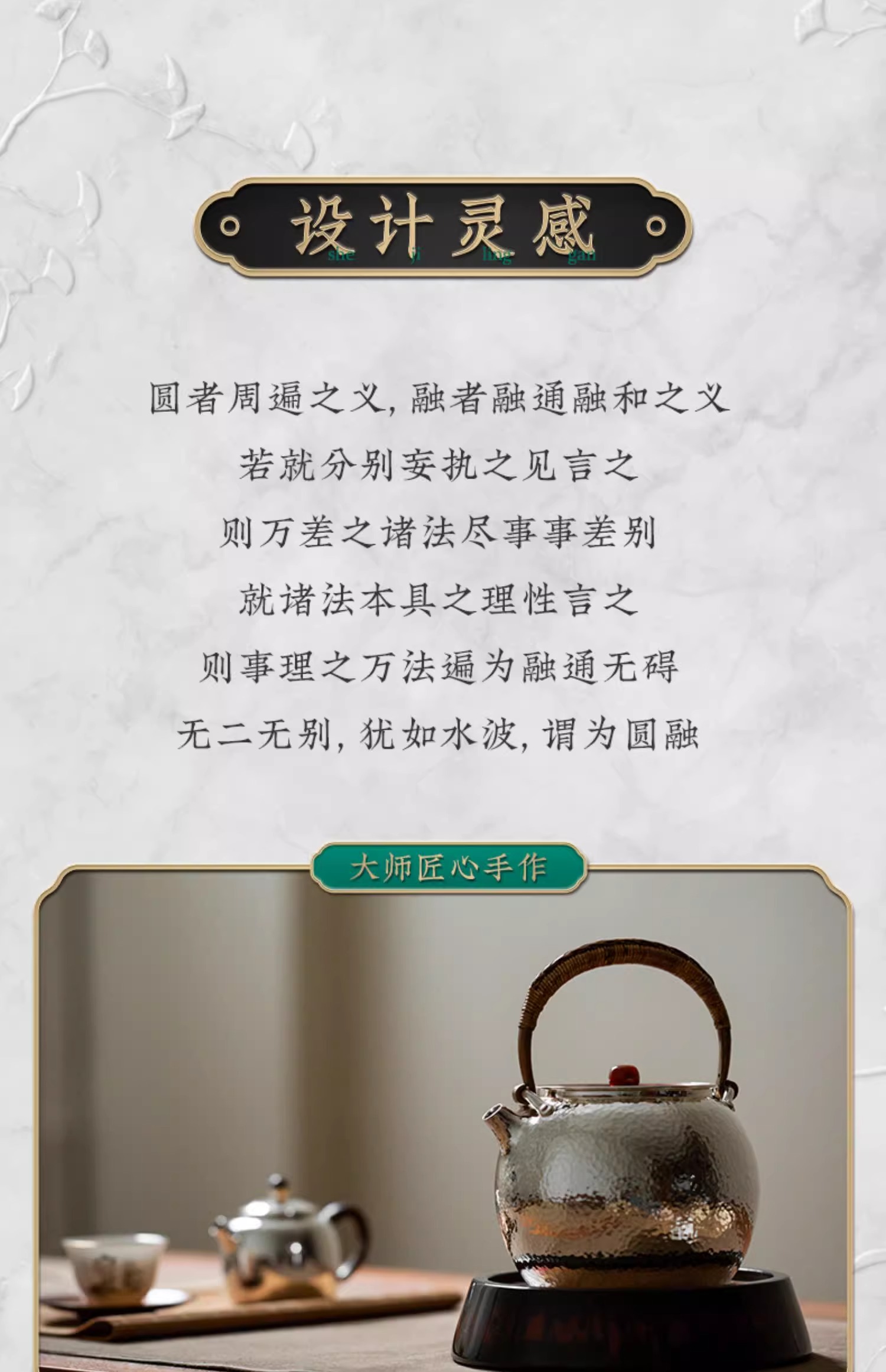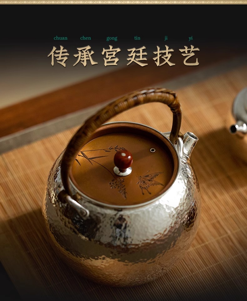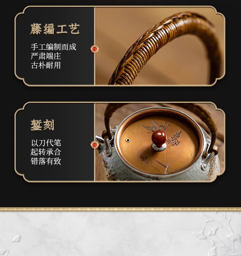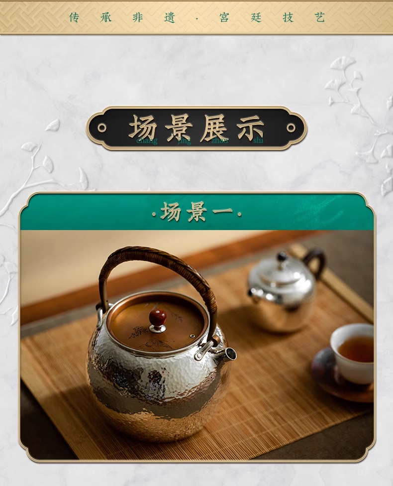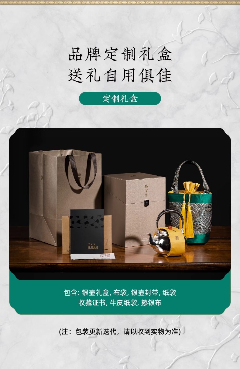 臻宝堂银壶 999纯银一张打烧水壶纯手工煮茶壶南红摘家用中式茶具南红摘圆融银壶900ml
