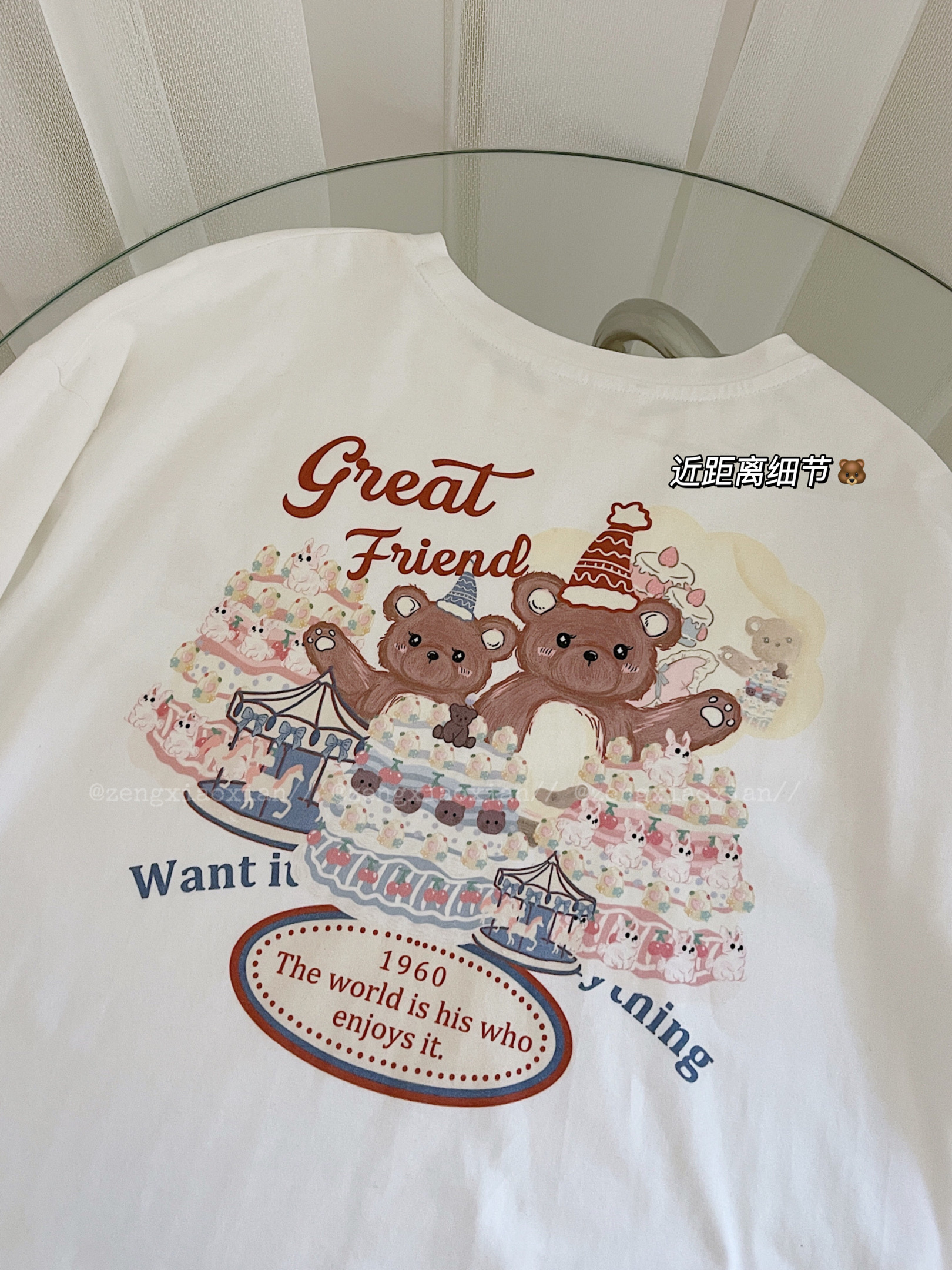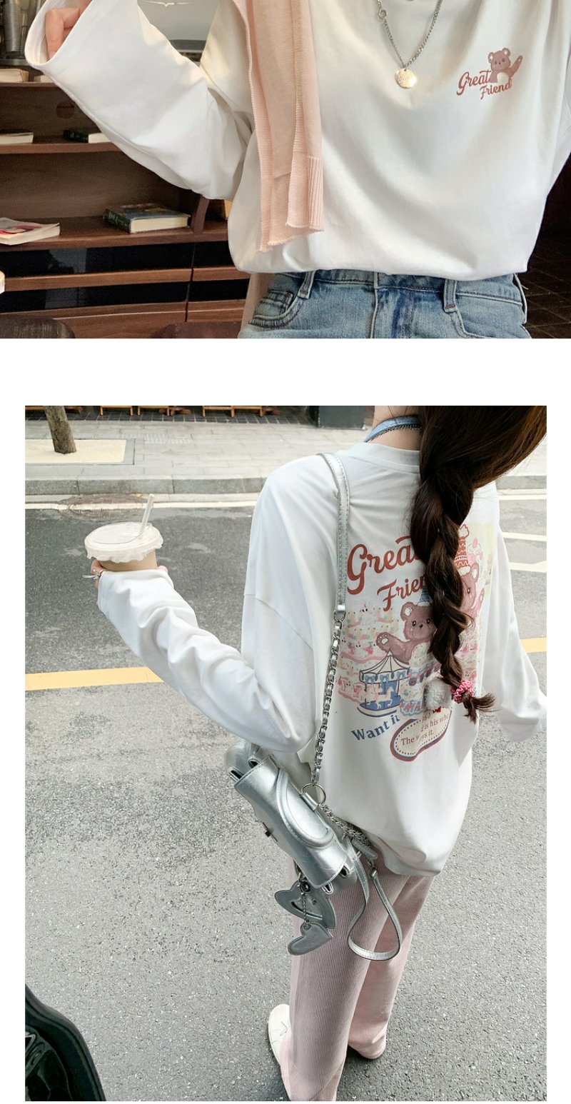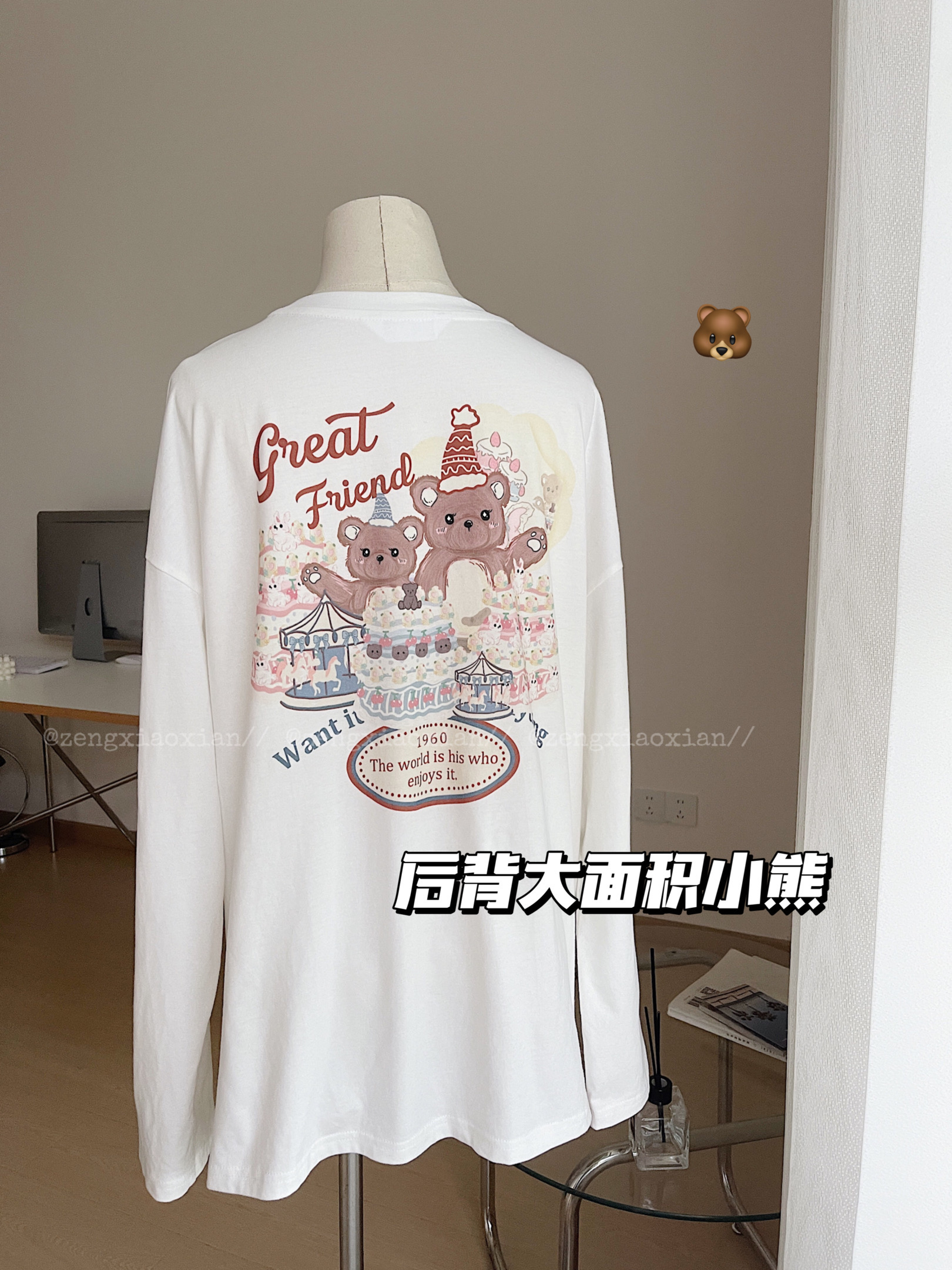 <曾小咸推荐> 后背小熊印花宽松长袖T恤
