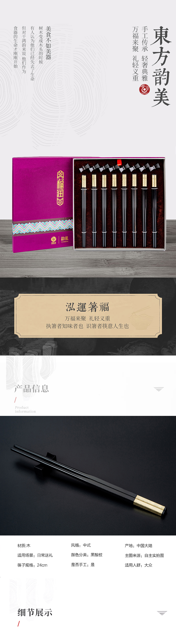 八双八架金浮雕福筷高端商务礼盒装234