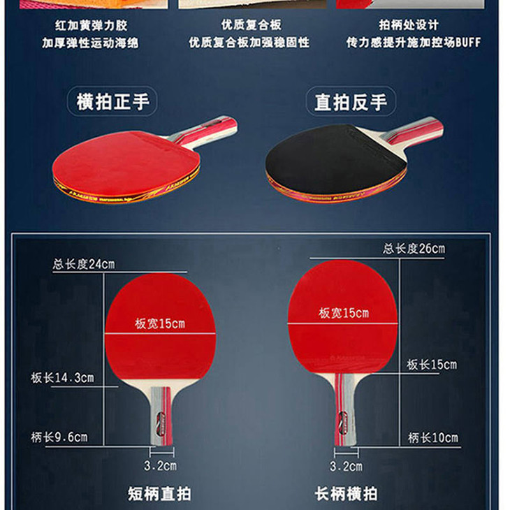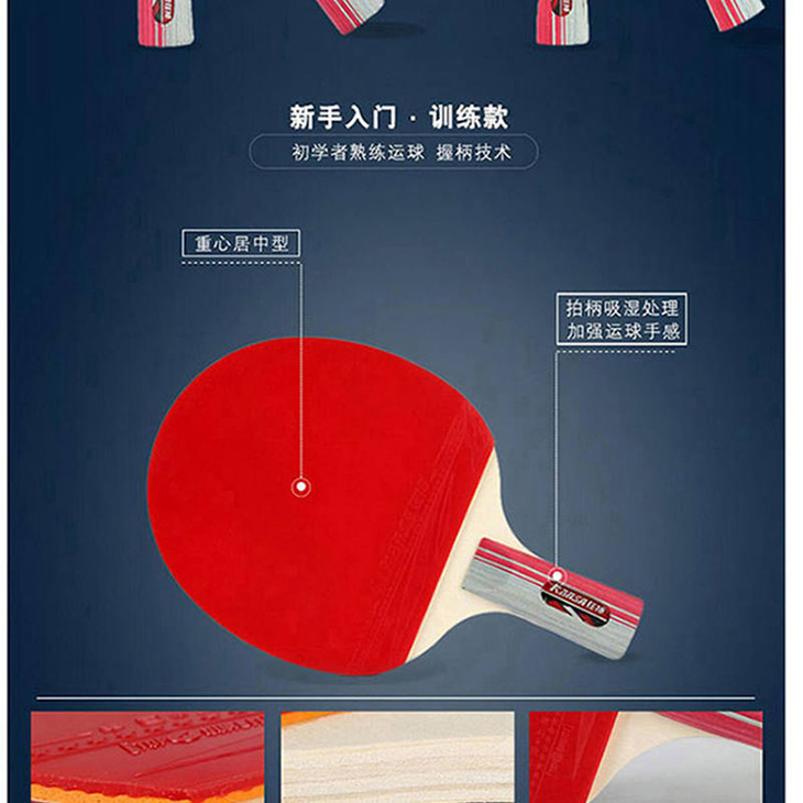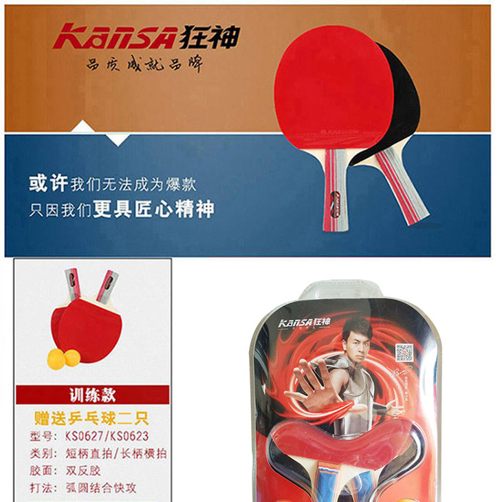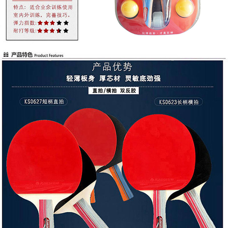 狂神乒乓球拍 双反胶乒乓球拍对装配2只球横拍ks0623