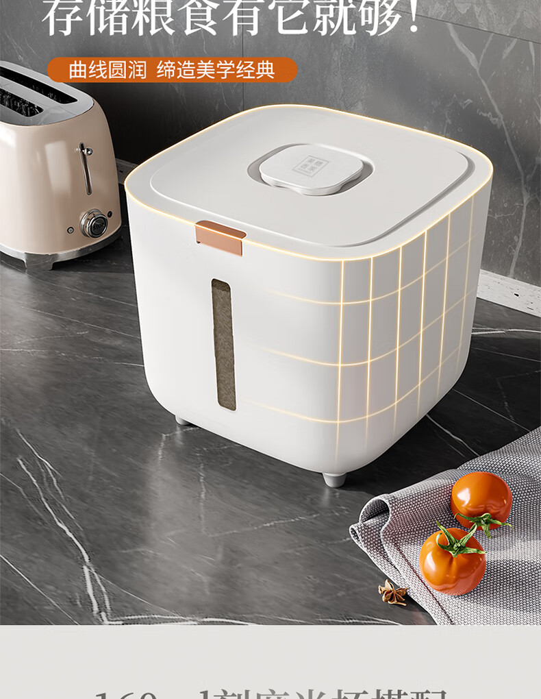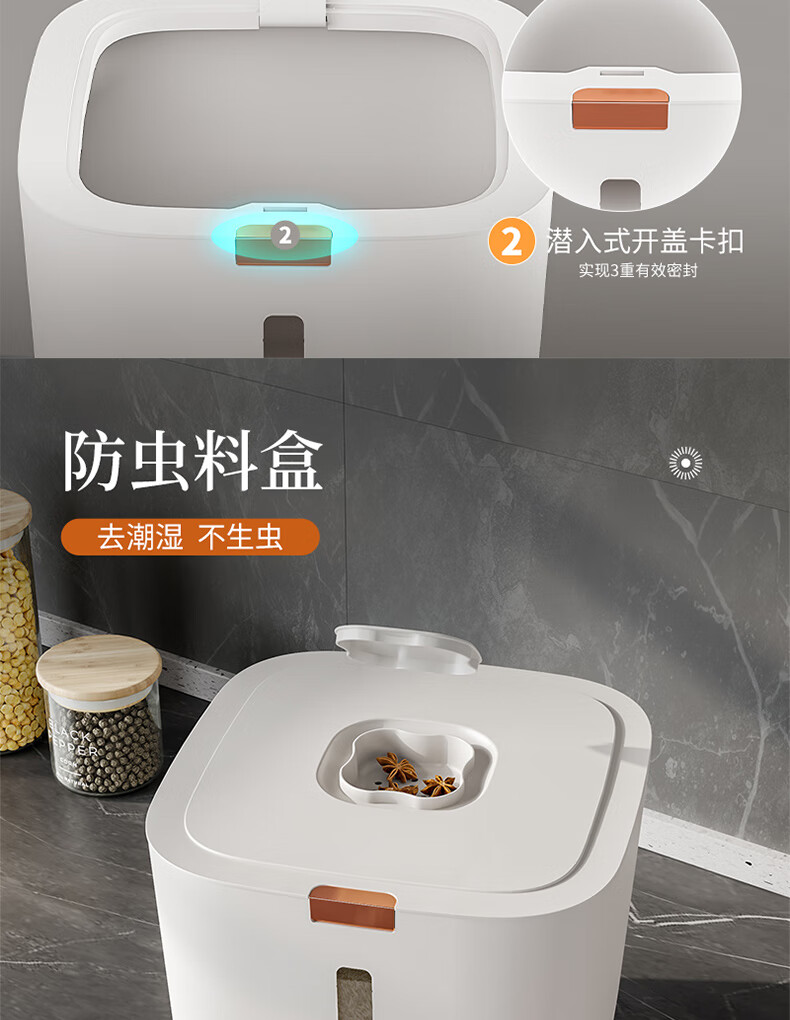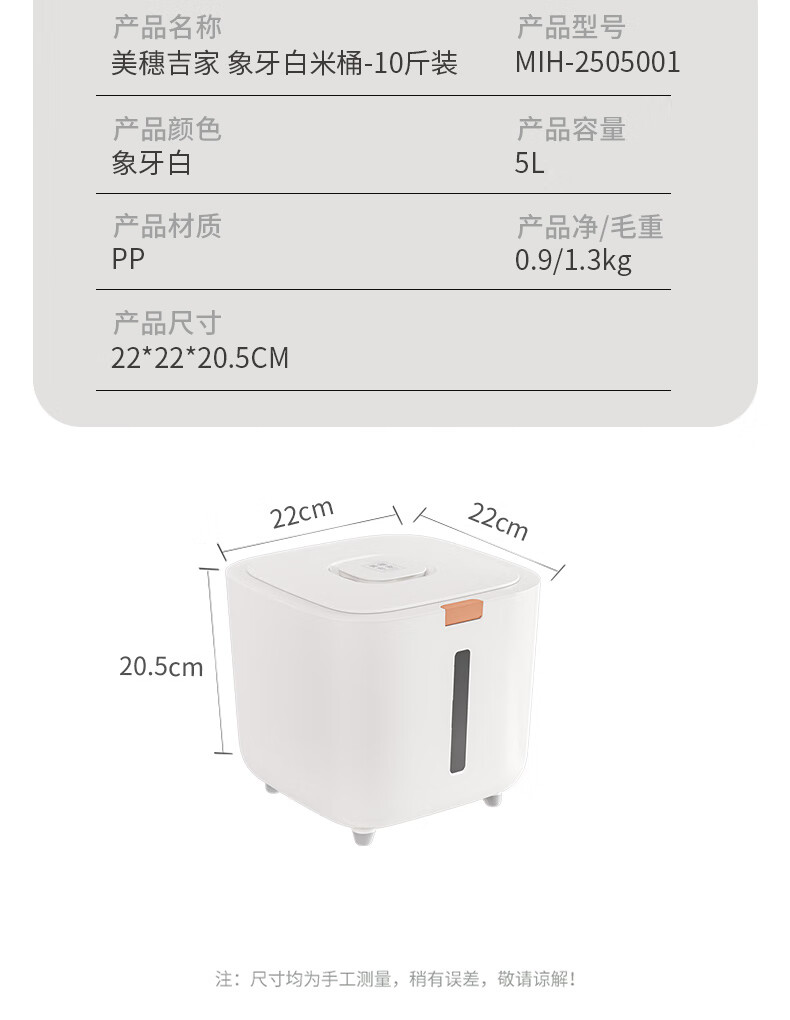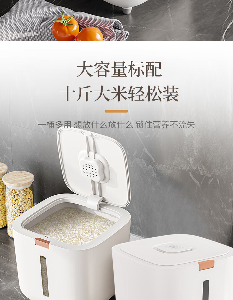 美穗吉家(mihooce)米桶10斤家用防虫防潮密封米缸米箱装大米收纳盒 象牙白 MIH-2505001