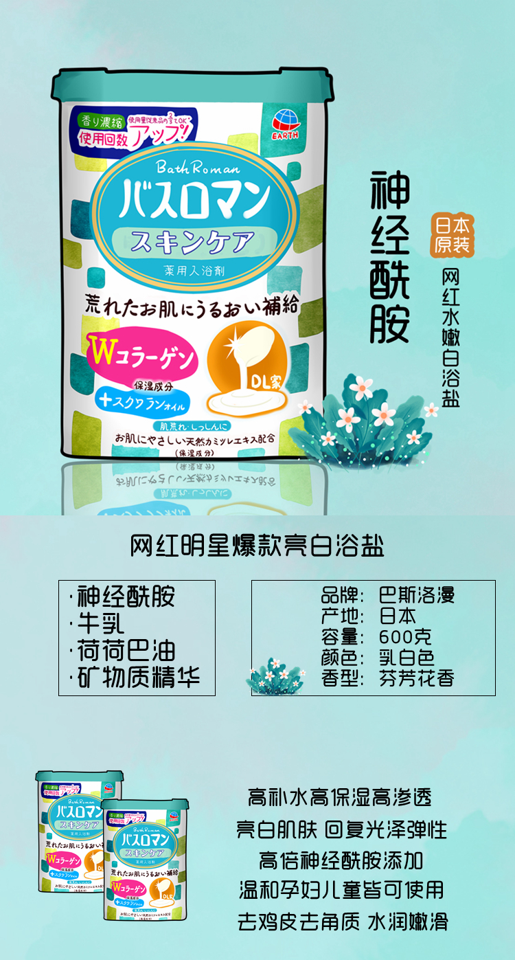 日本直邮 巴斯洛漫浴盐(神经酰胺)去鸡皮去角质600g/瓶