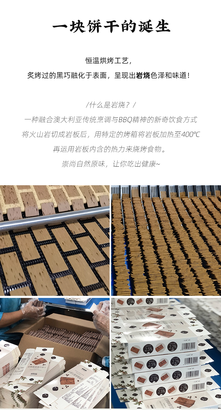 • 岩烧咖啡黑巧饼干,属于易碎产品,已经在包装上做了多次防撞措施,收到可能会有小碎情况,还请见谅。