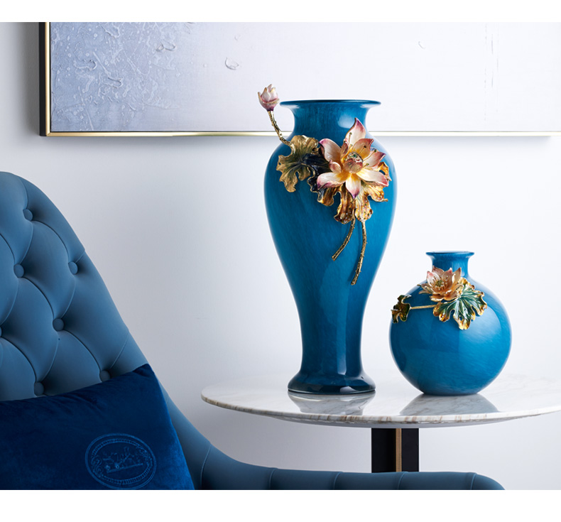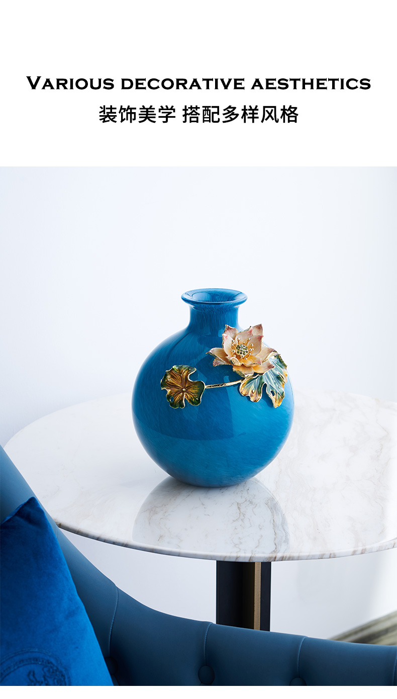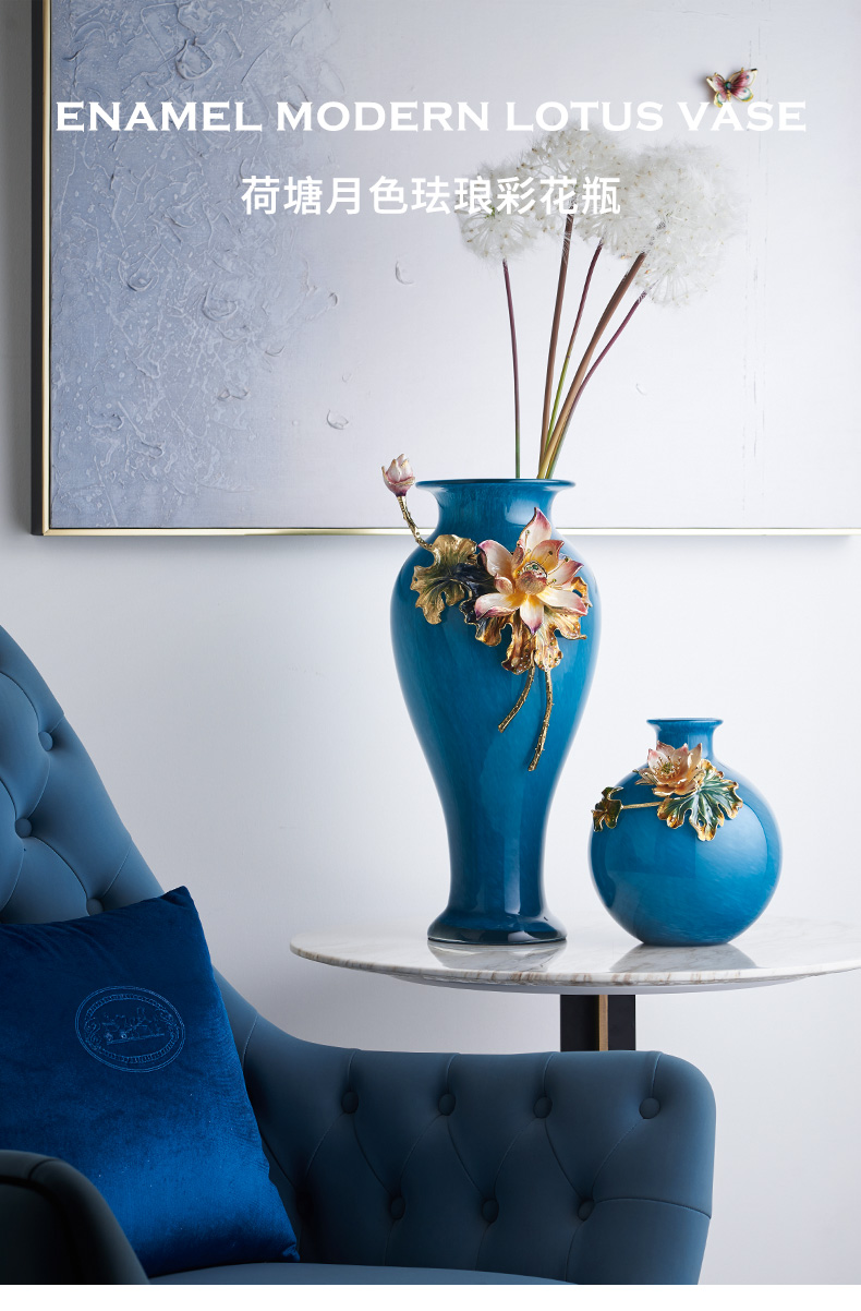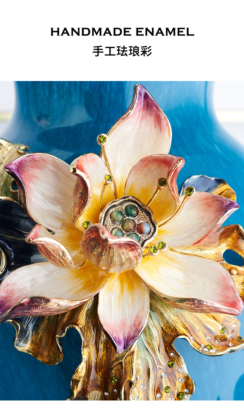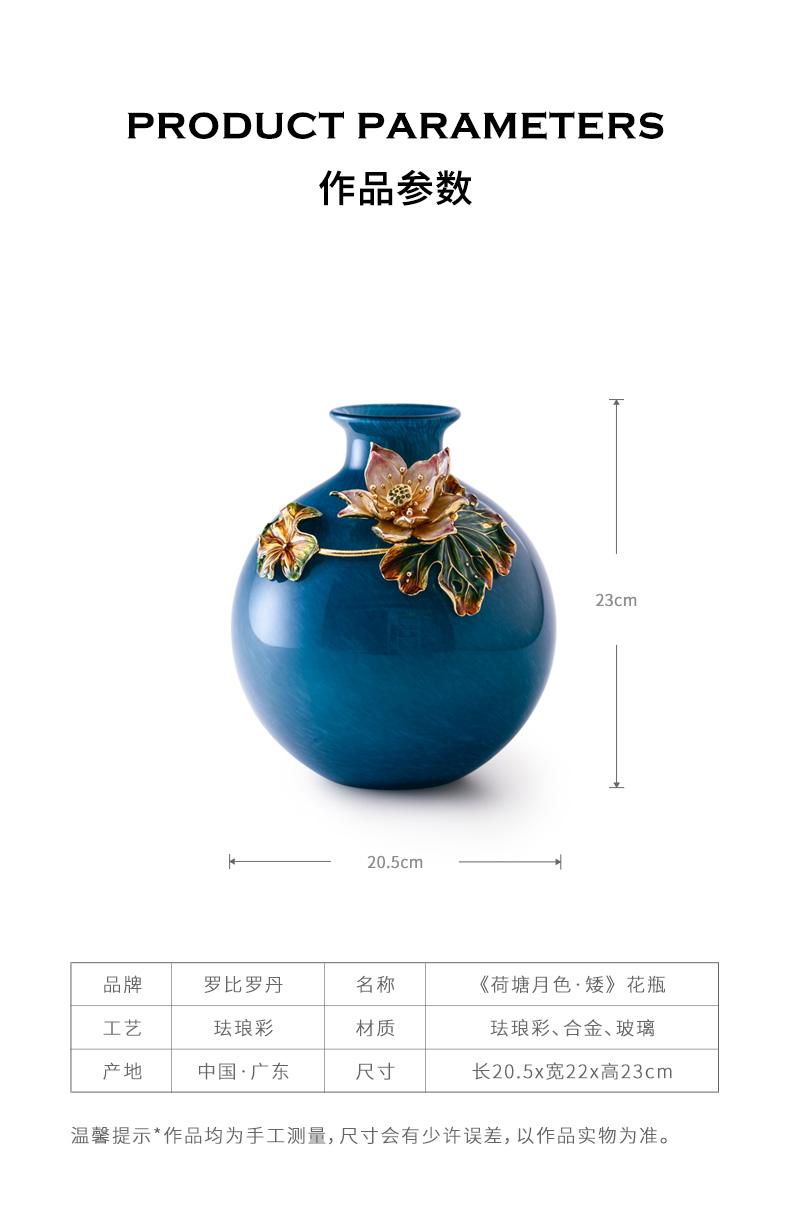 罗比罗丹荷塘月色珐琅彩花瓶创意客厅玄关家居摆件(仅 1件,无货退款