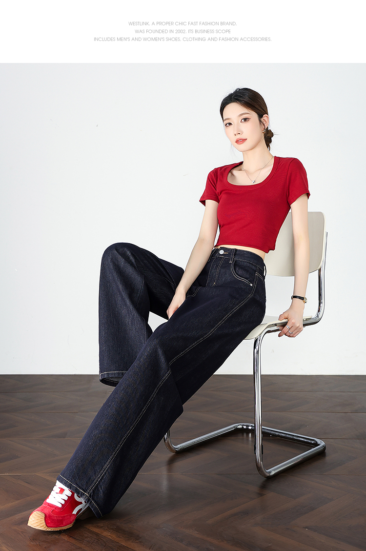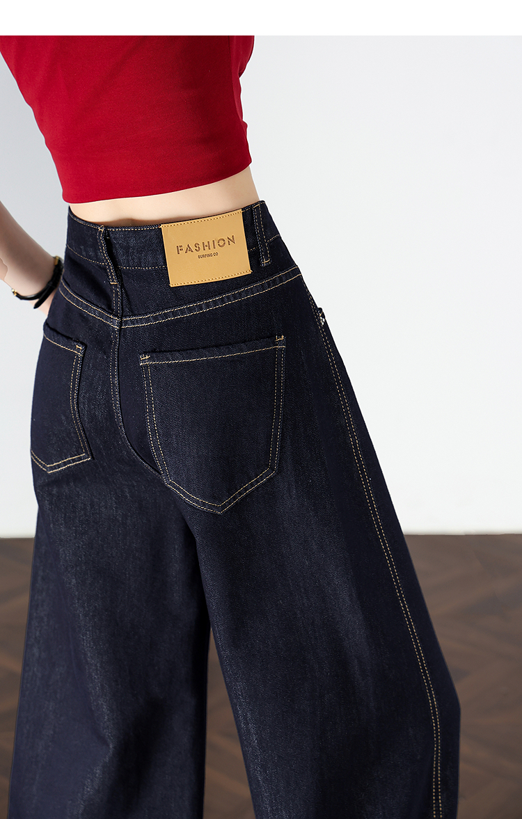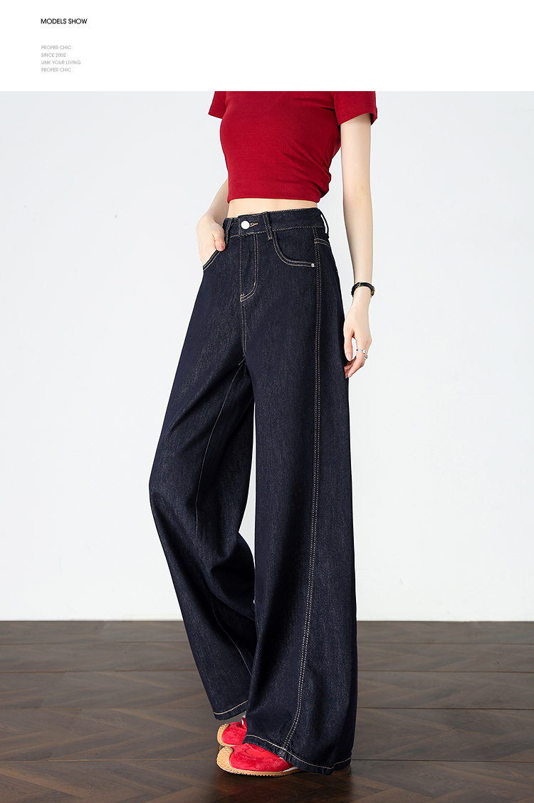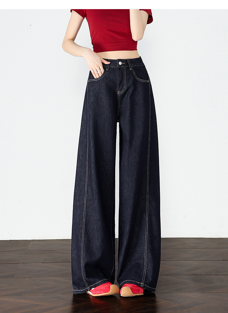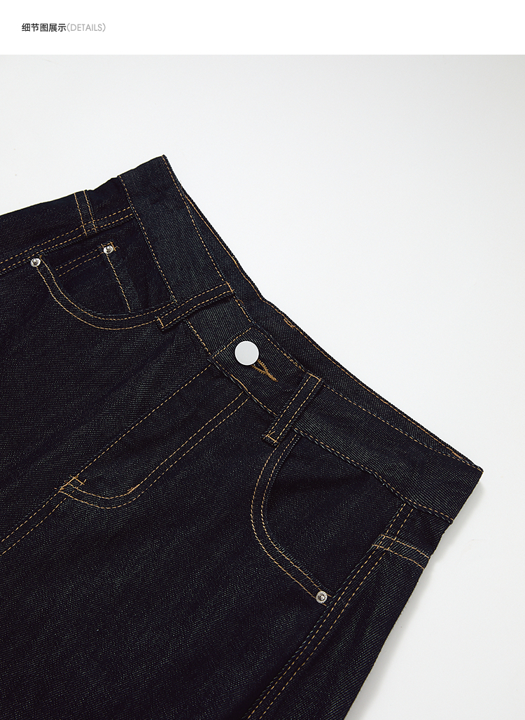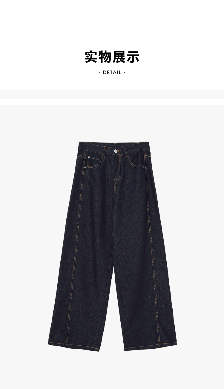 【限时秒杀】设计感车缝线复古深蓝牛仔裤女直筒裤V0050784