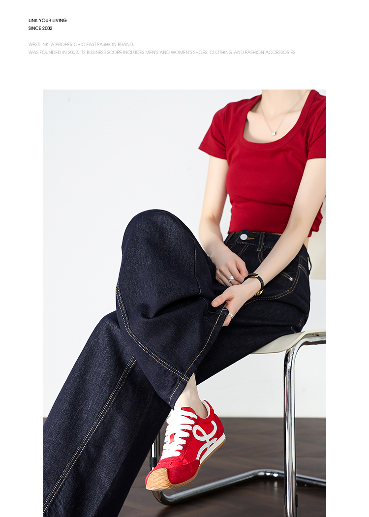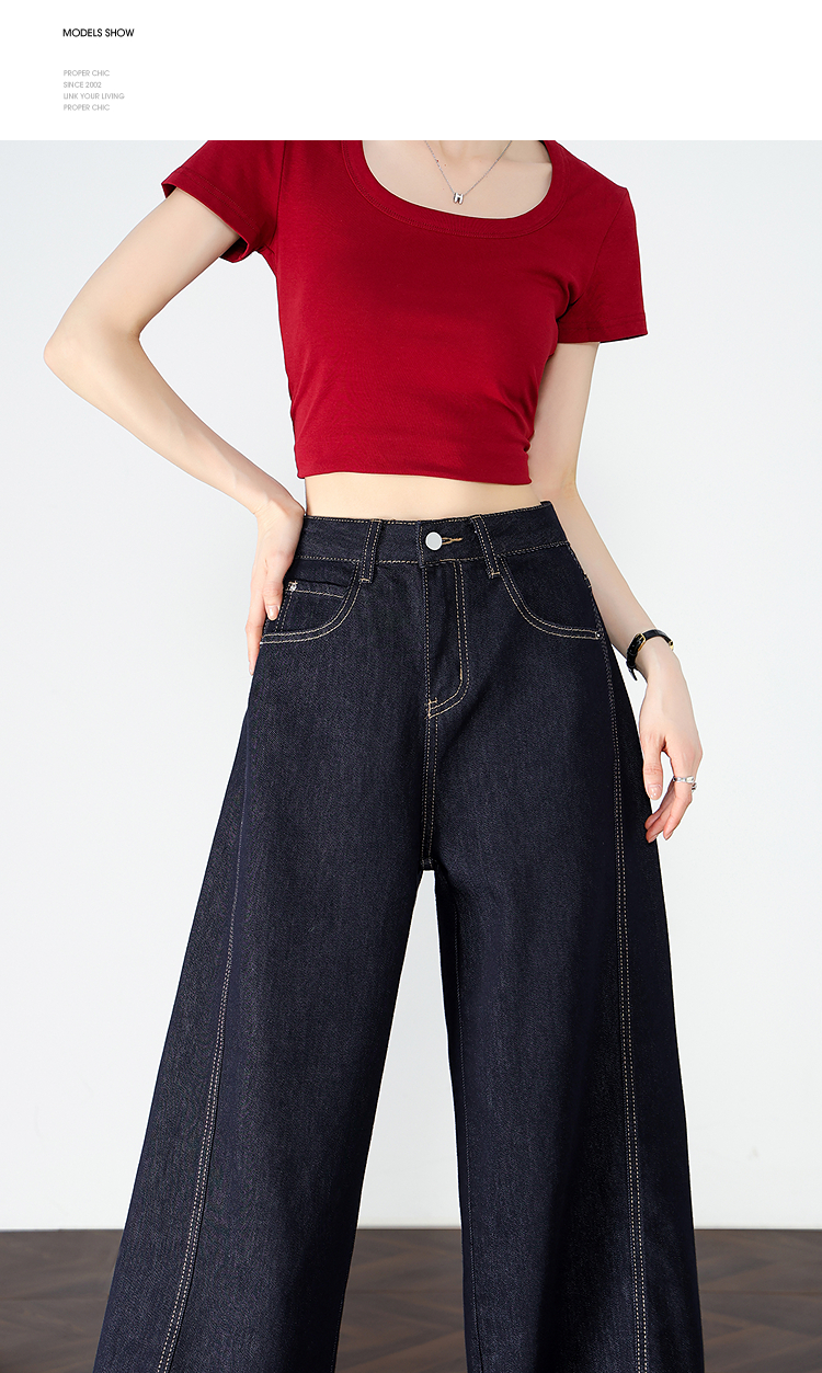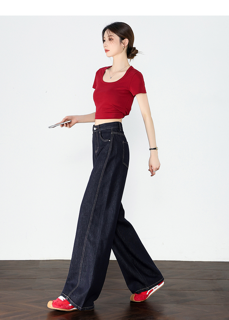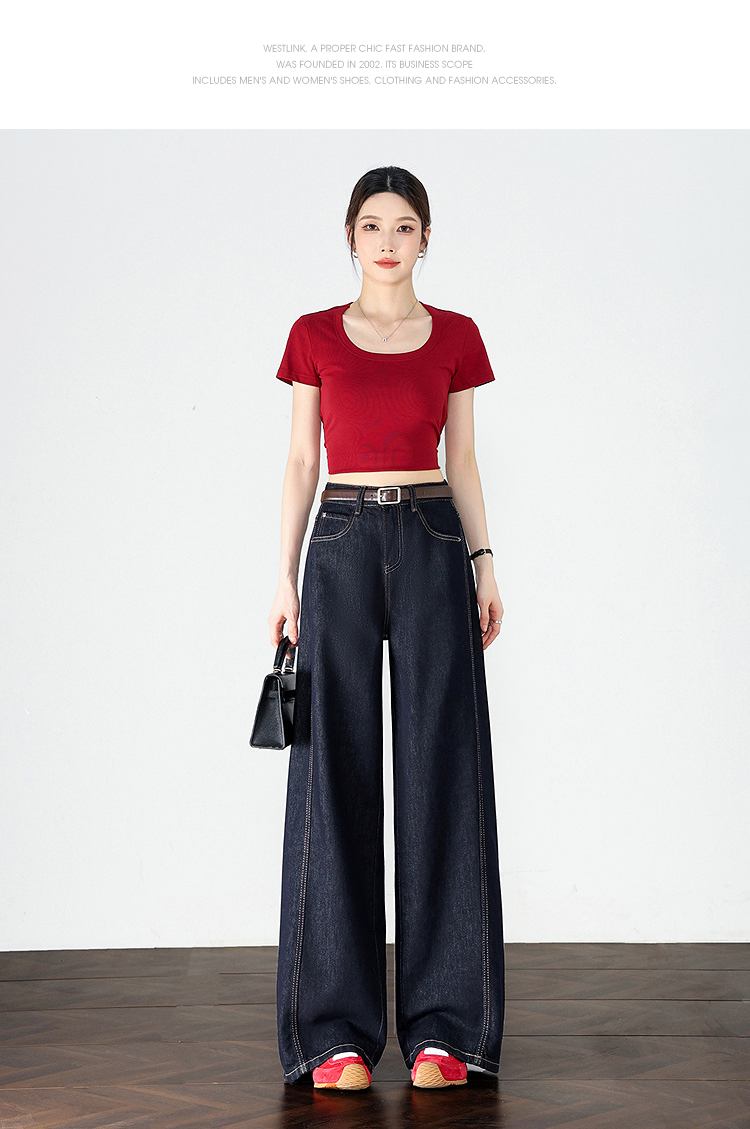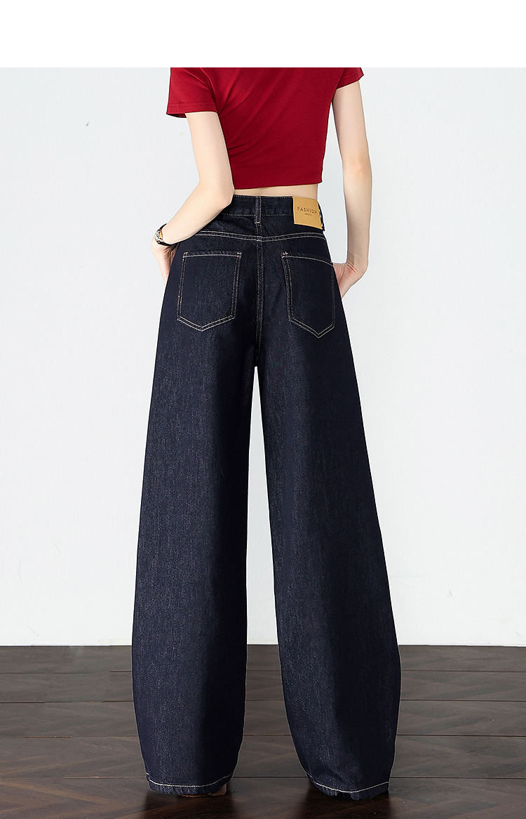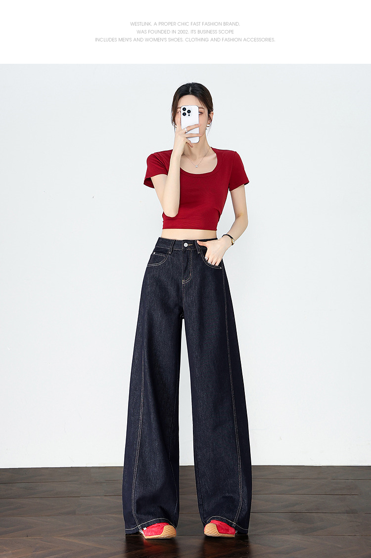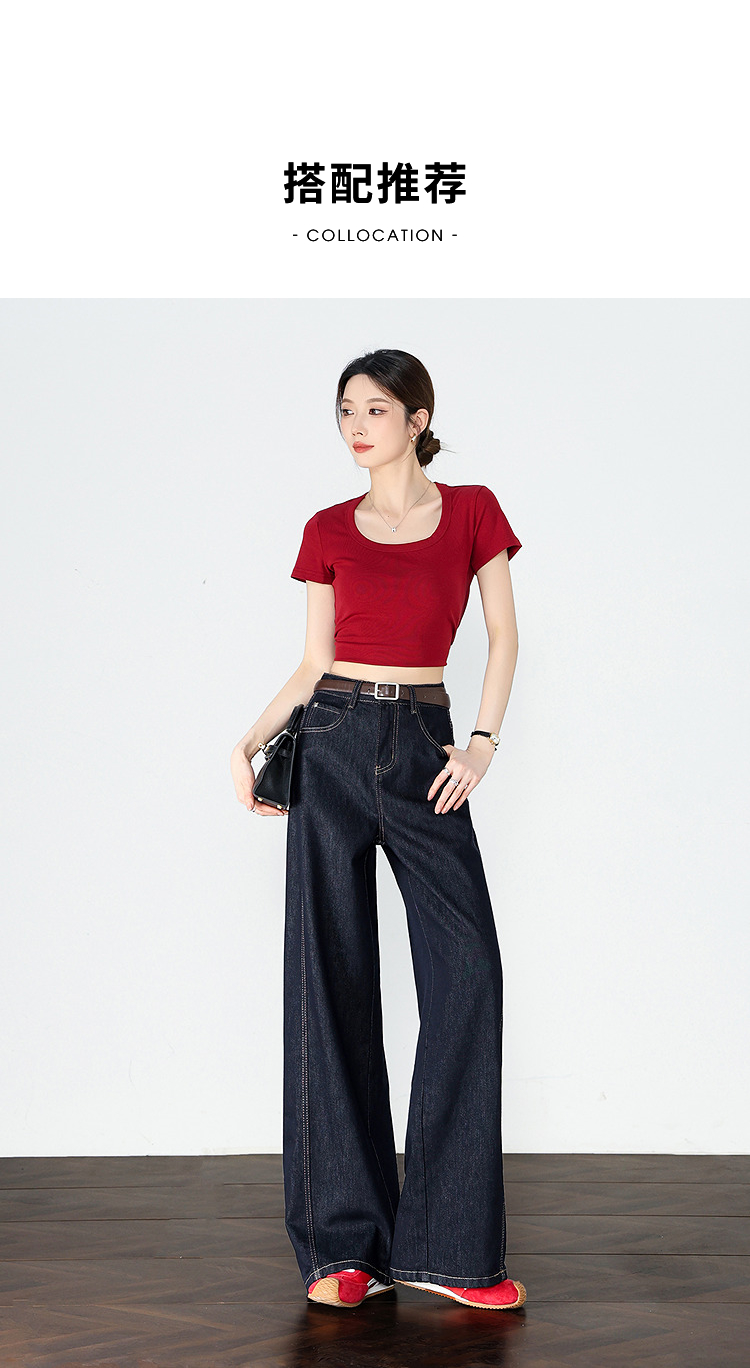 【限时秒杀】设计感车缝线复古深蓝牛仔裤女直筒裤V0050784