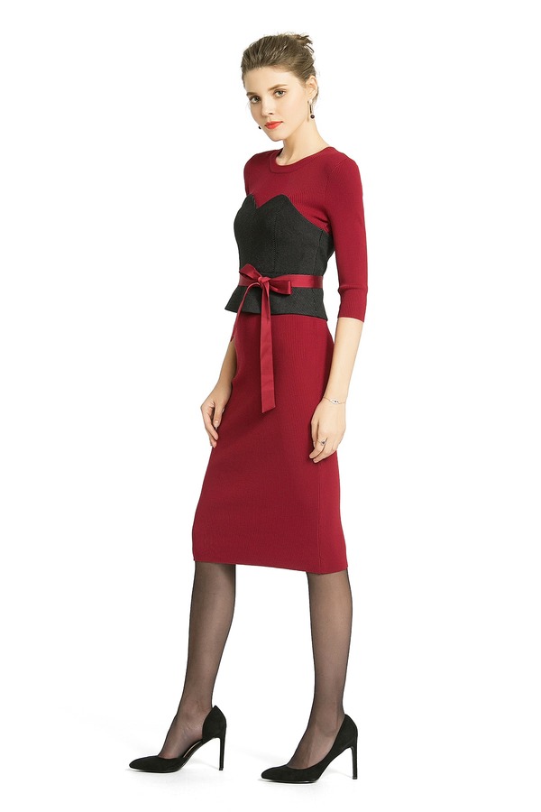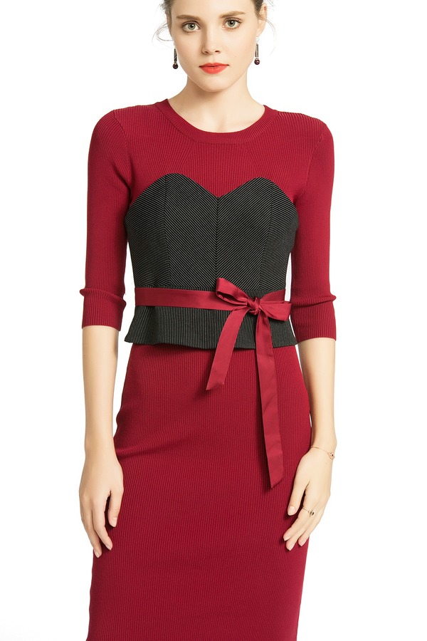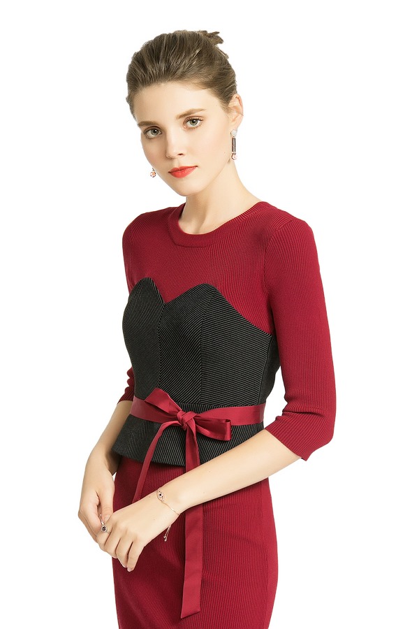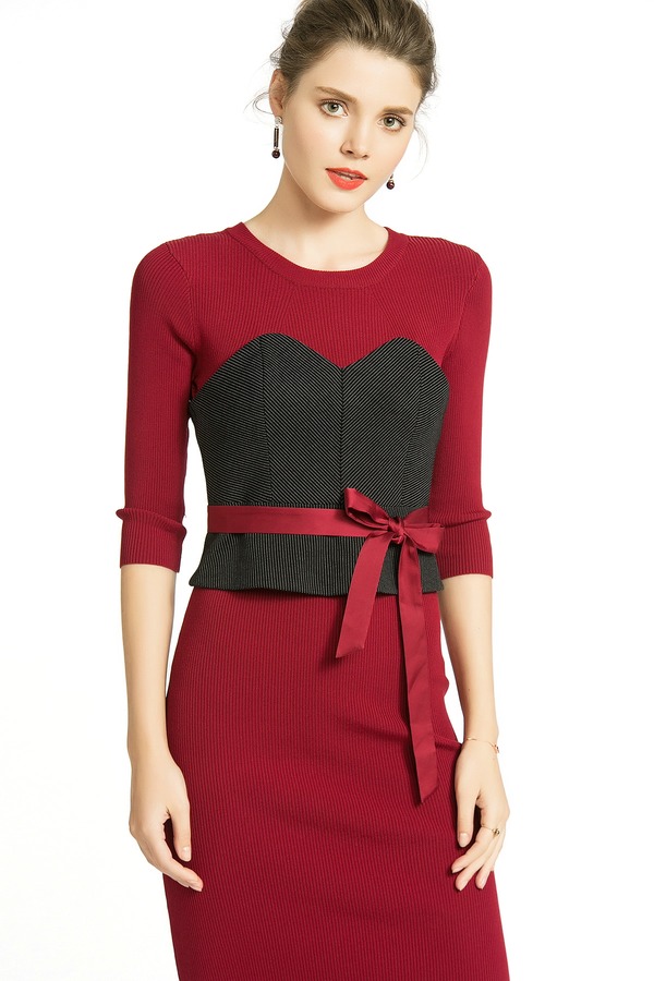 MAXRIENY玛克茜妮 假两件系带修身连衣裙 284