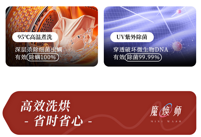 大宇内衣裤洗衣机迷你专用小型全自动家用洗烘一体清洗机DY-MW10H 商品图3