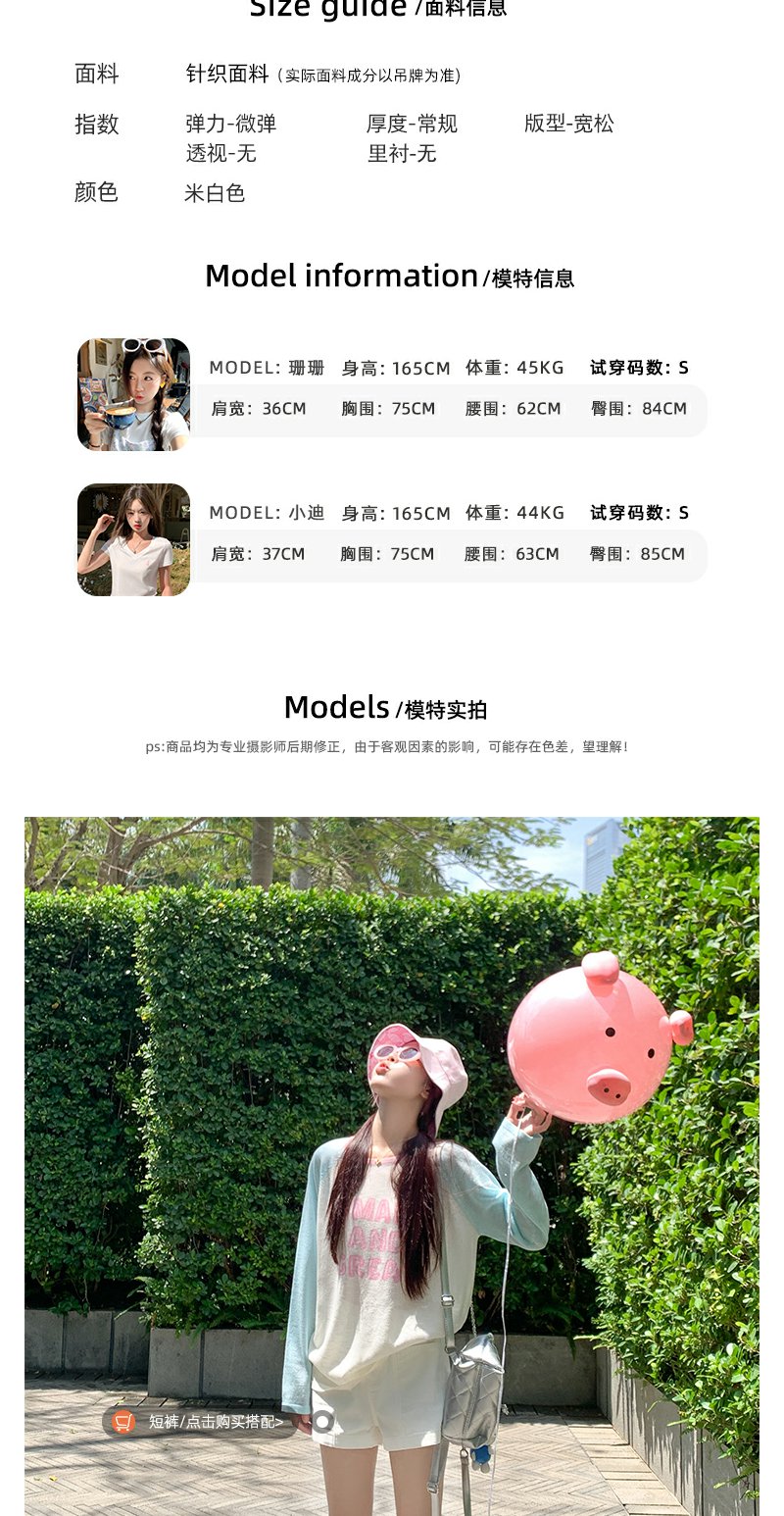 <曾小咸推荐>马卡龙配色少女防晒长袖针织T恤