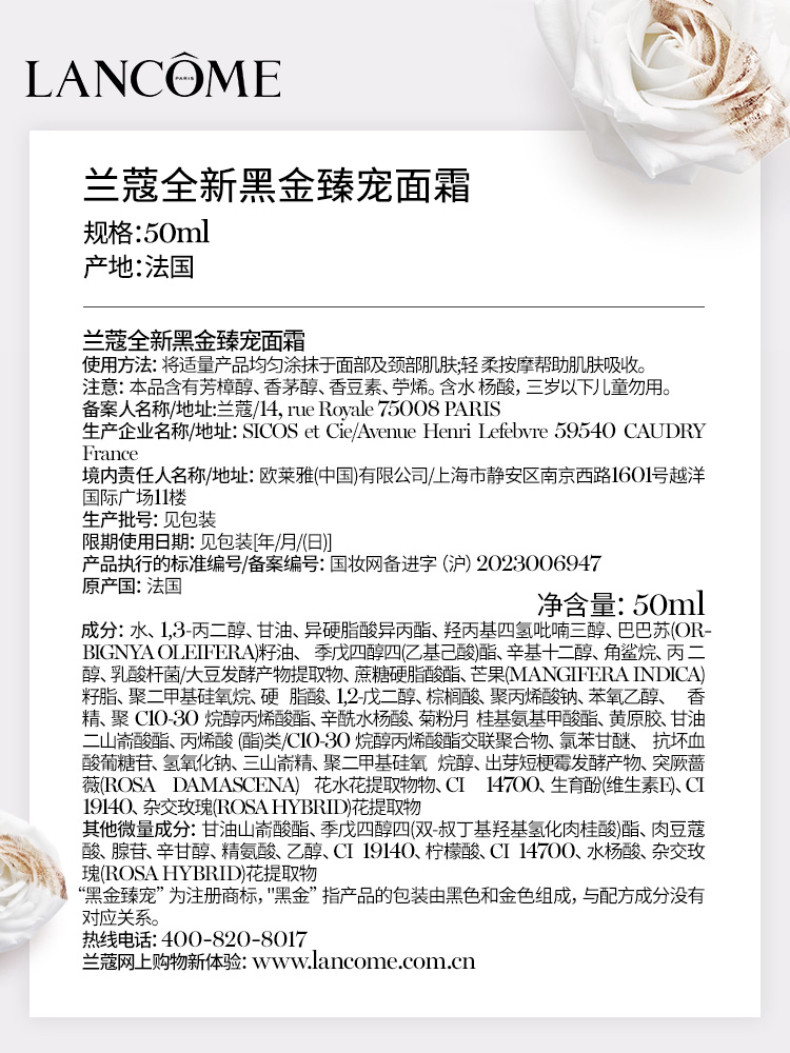 兰蔻全新黑金臻宠面霜50ML 紧致淡纹保湿滋润NAD