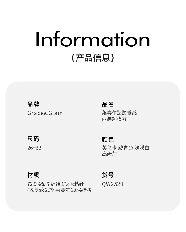 Grace&Glam 莱赛尔醋酸垂感西装超模裤