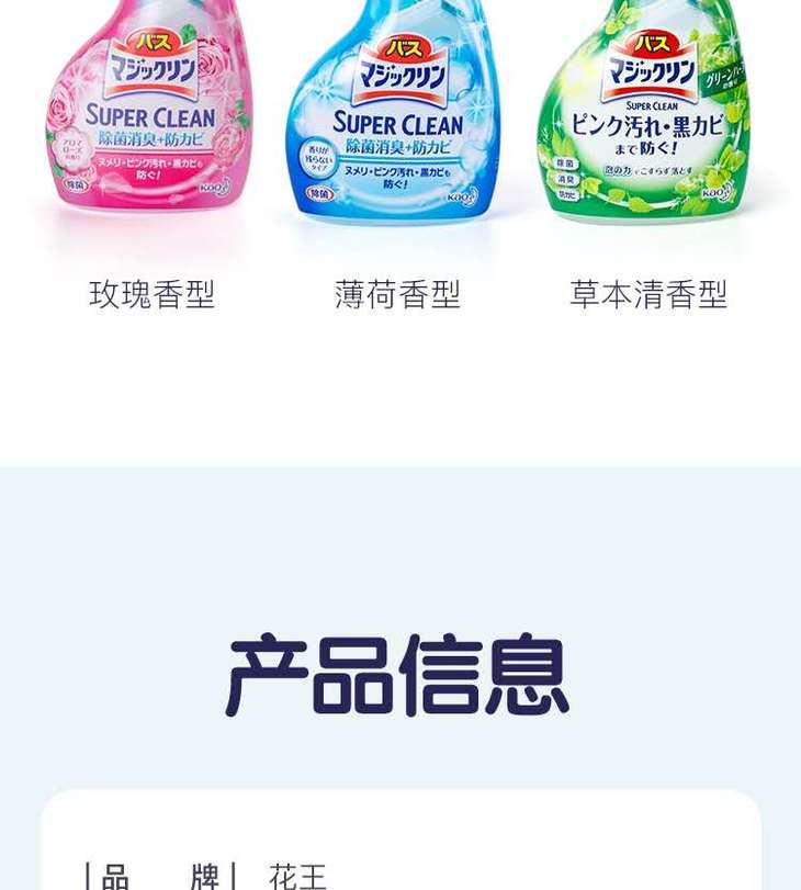 【3瓶】日本进口花王KAO浴室浴缸多用途清洁剂去水垢污垢除垢剂泡沫喷雾