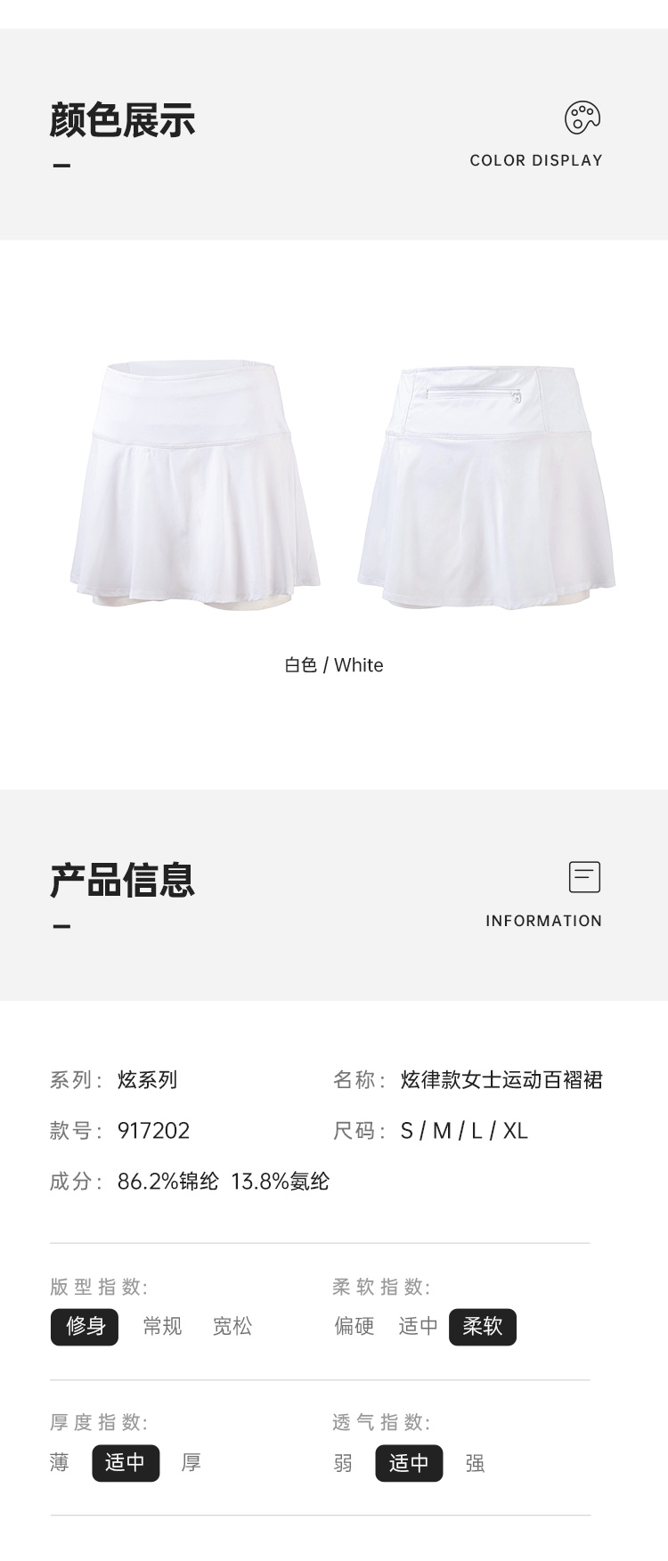 UTO悠途女士运动健身防走光夏季户外瑜伽半身裙运动裙百褶裙透气