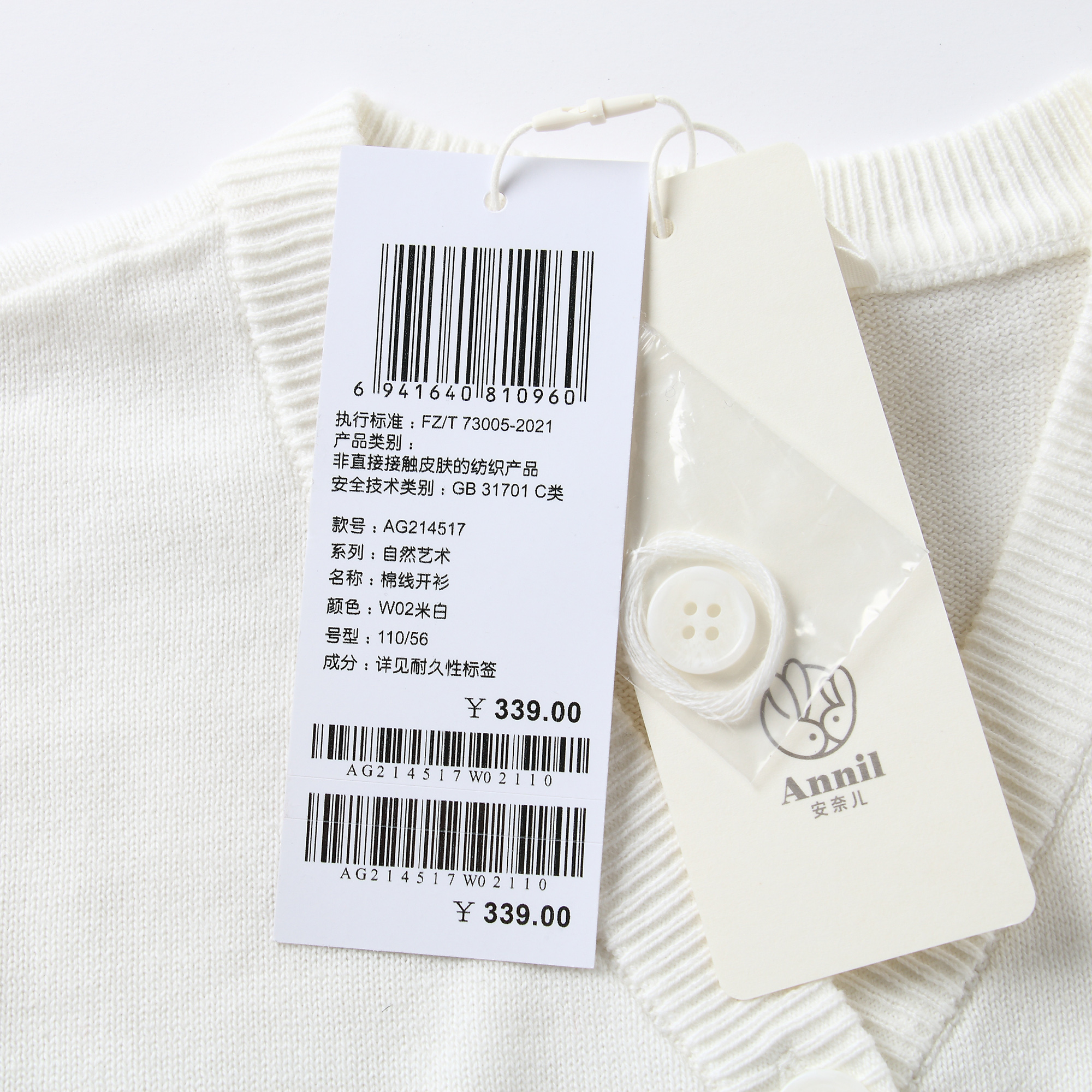 安奈儿女童棉线开衫ag214517
