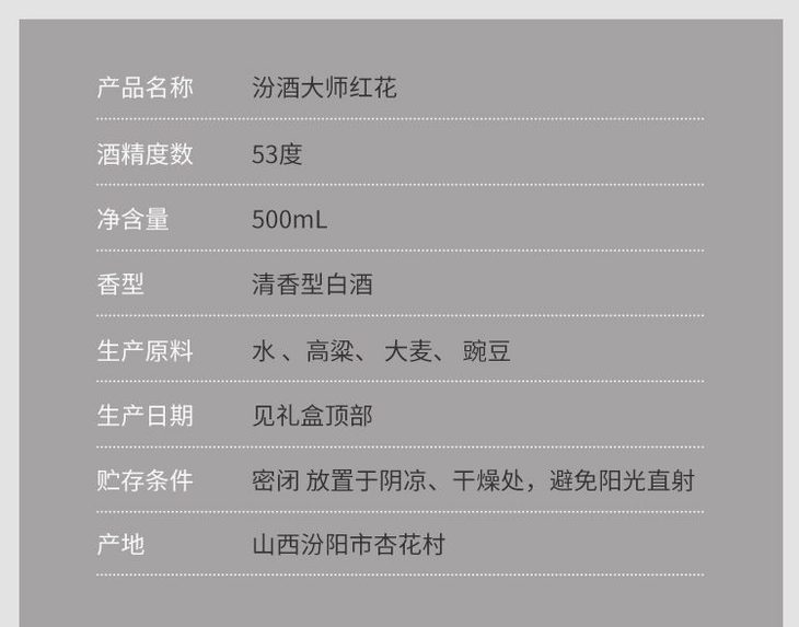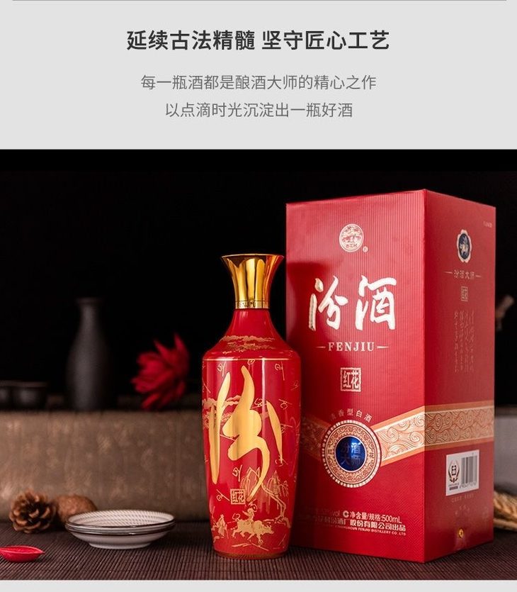 汾酒红花 53度清香型白酒 整箱500ml*6瓶包邮