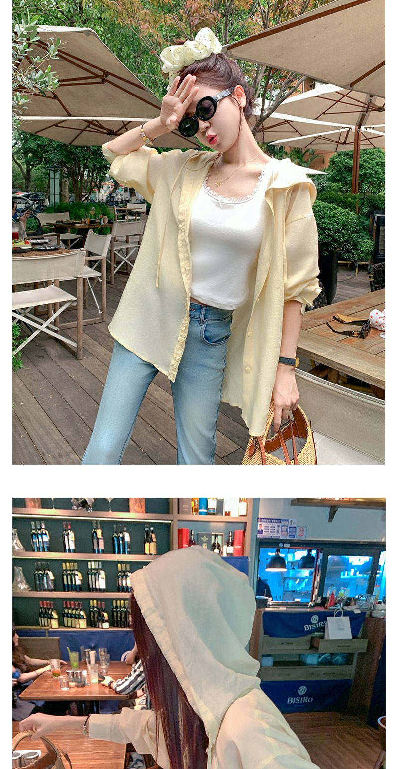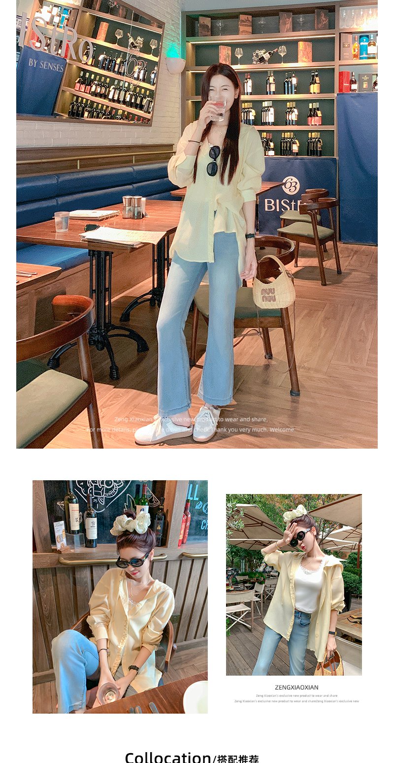 <曾小咸推荐>宽松慵懒黄色防晒连帽衬衫外套