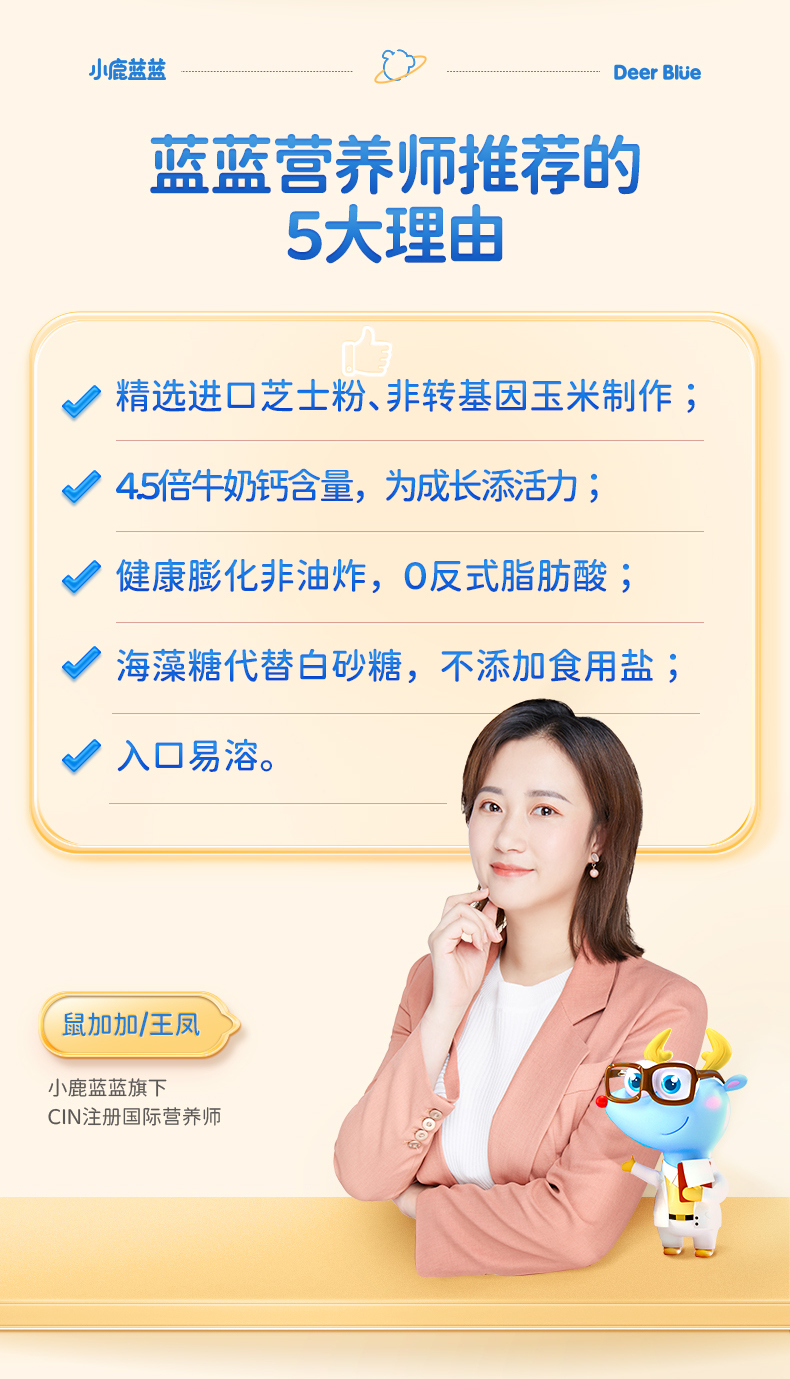 - 小鹿蓝蓝始终致力于为主人提供更优质、高性价比的产品、服务和体验,共同打造婴童零食生态圈,提升母婴行业的国货自信,守护和陪伴新一代儿童健康、快乐地成长。