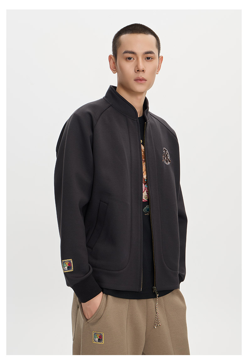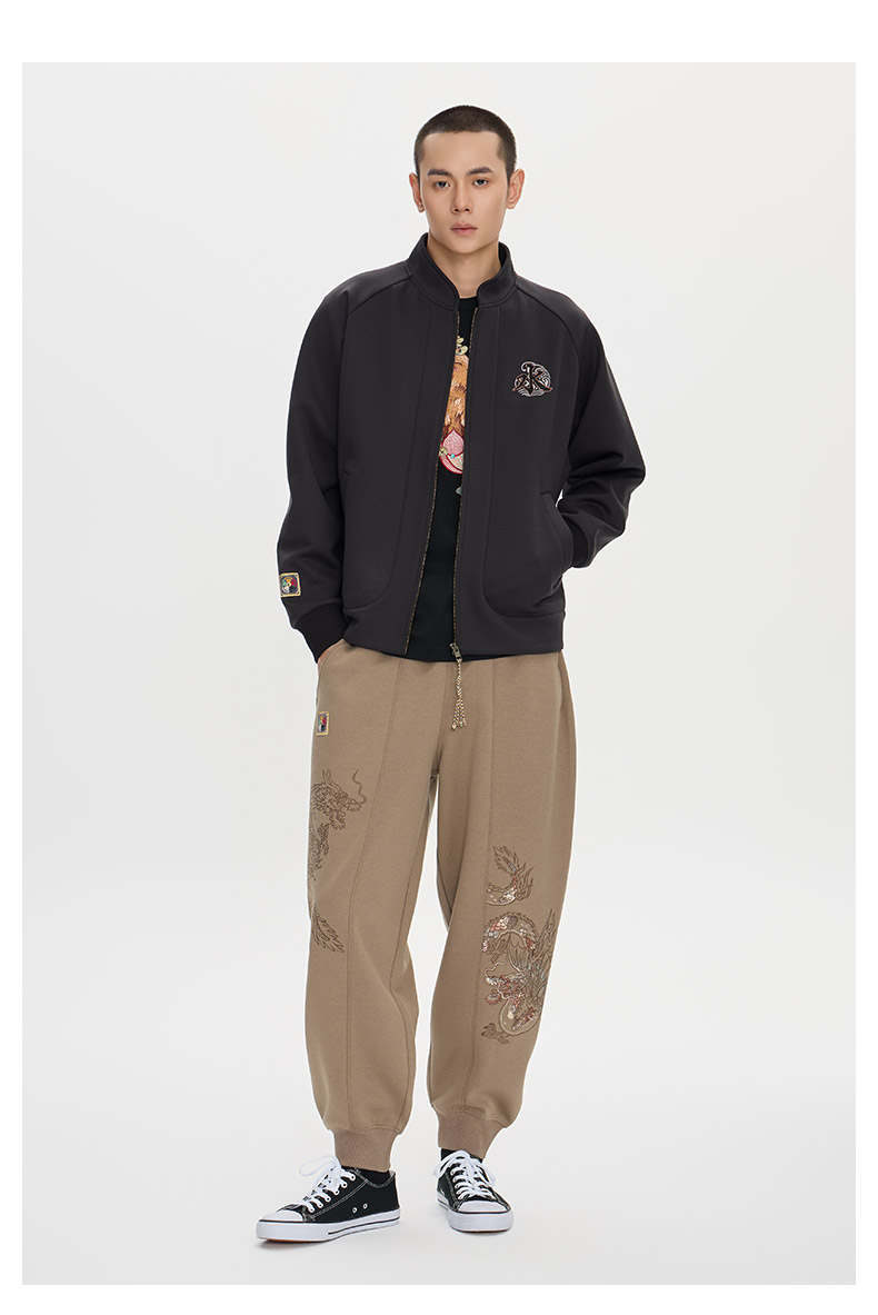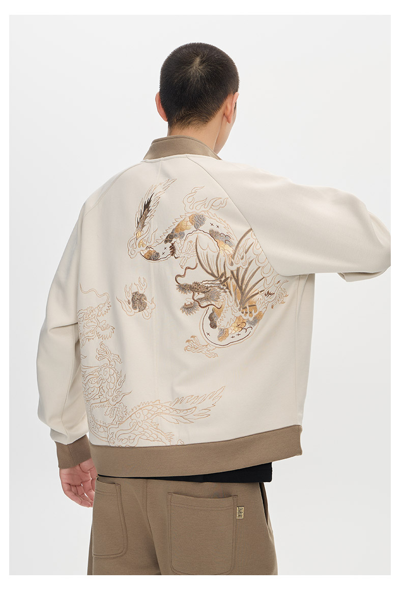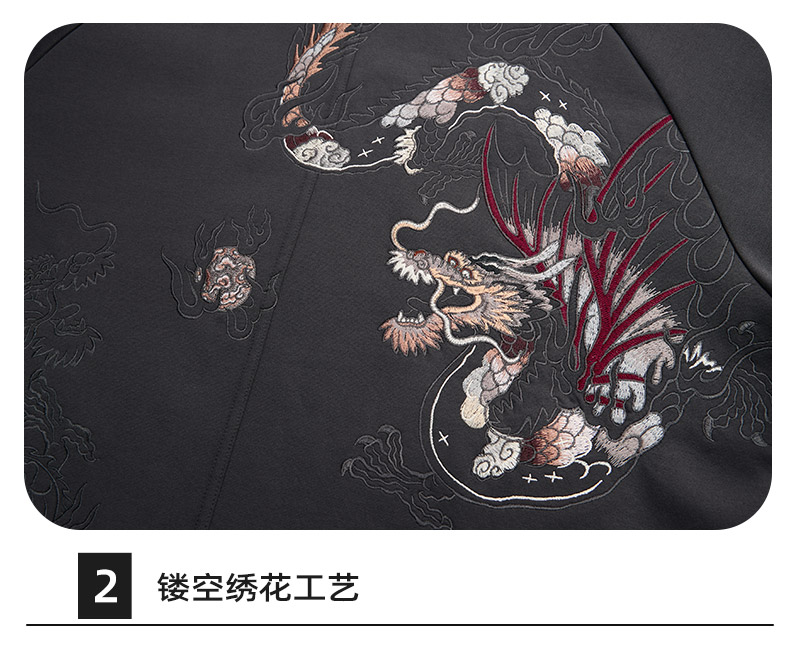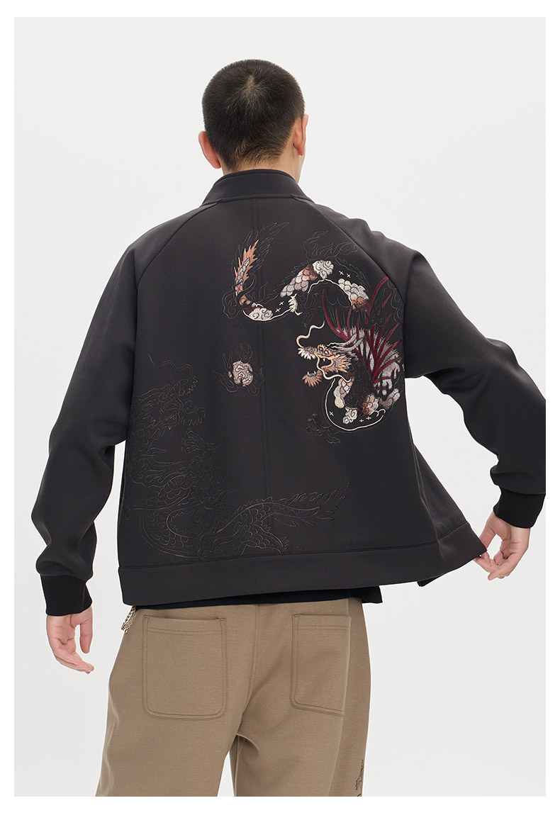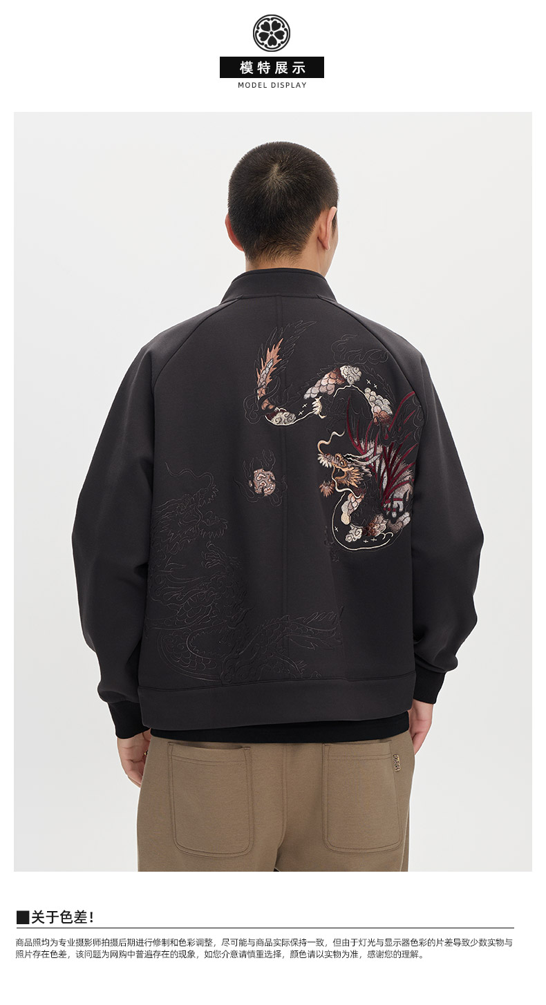 ONIARAI/鬼洗25秋冬泥棒蓝五运色玄龙刺绣开衫卫衣男式 N340233