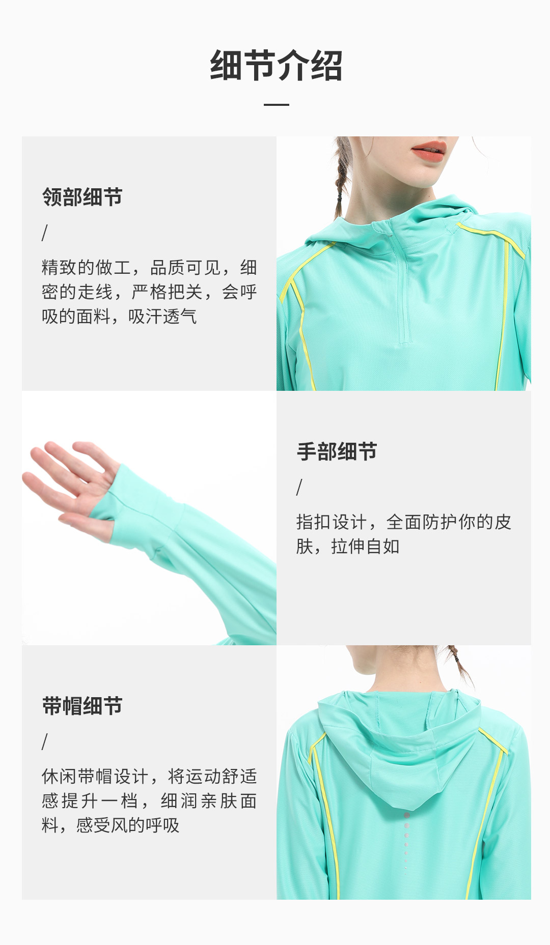2、细节展示:材质、工艺、做工等;